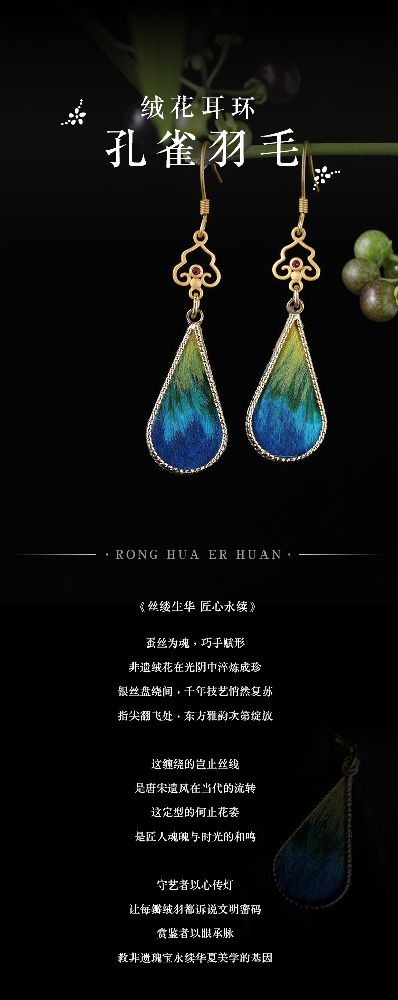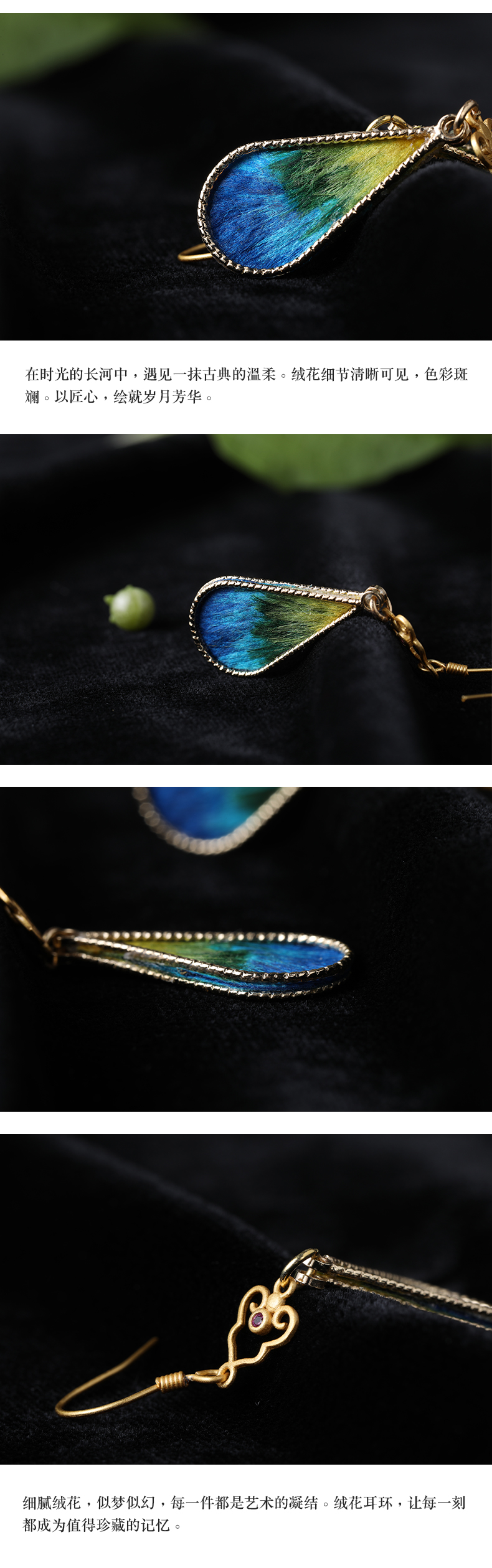【林栖设计小店】(耳钩990银)东阳孔雀色青绿渐变绒花耳环LX11025001(预售10天)