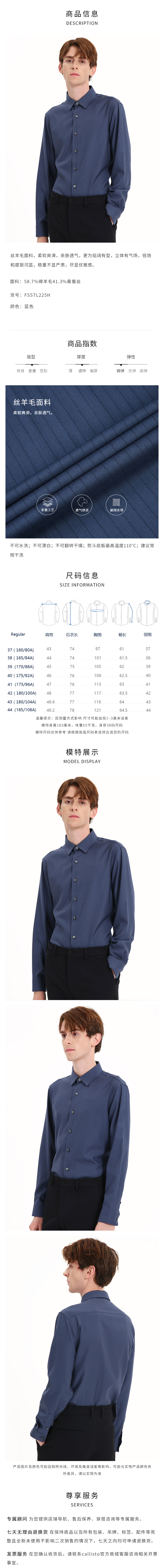 callisto银河蓝丝羊毛长袖衬衫 FSSTL225H