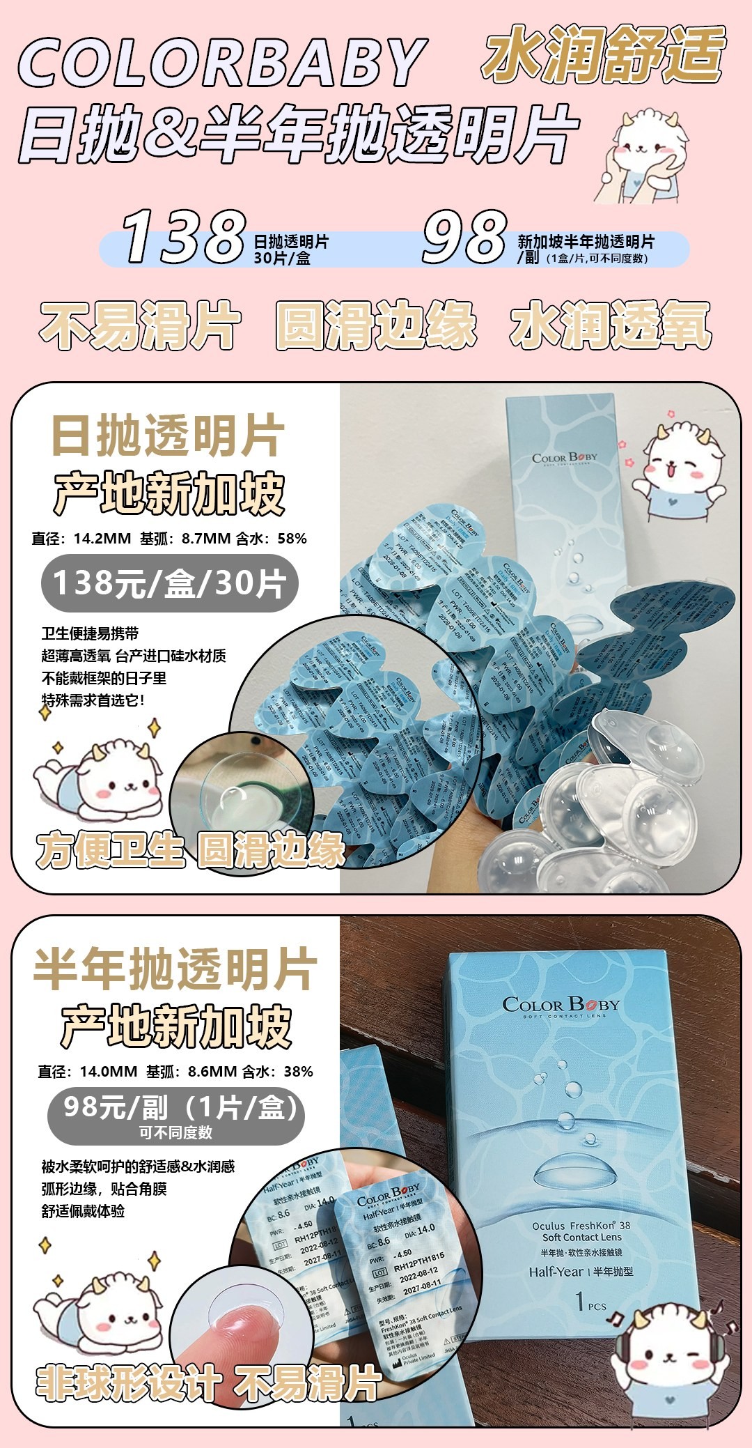 【日抛/半年抛】colorbaby 新加坡产日抛透明片30片装 100-1000度