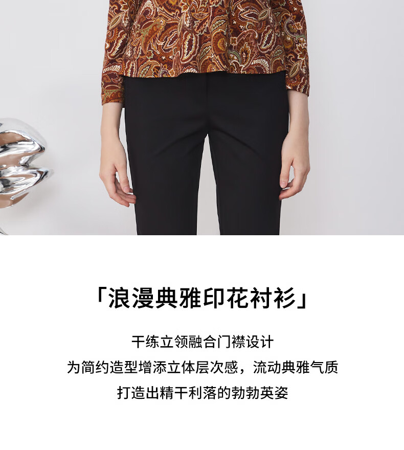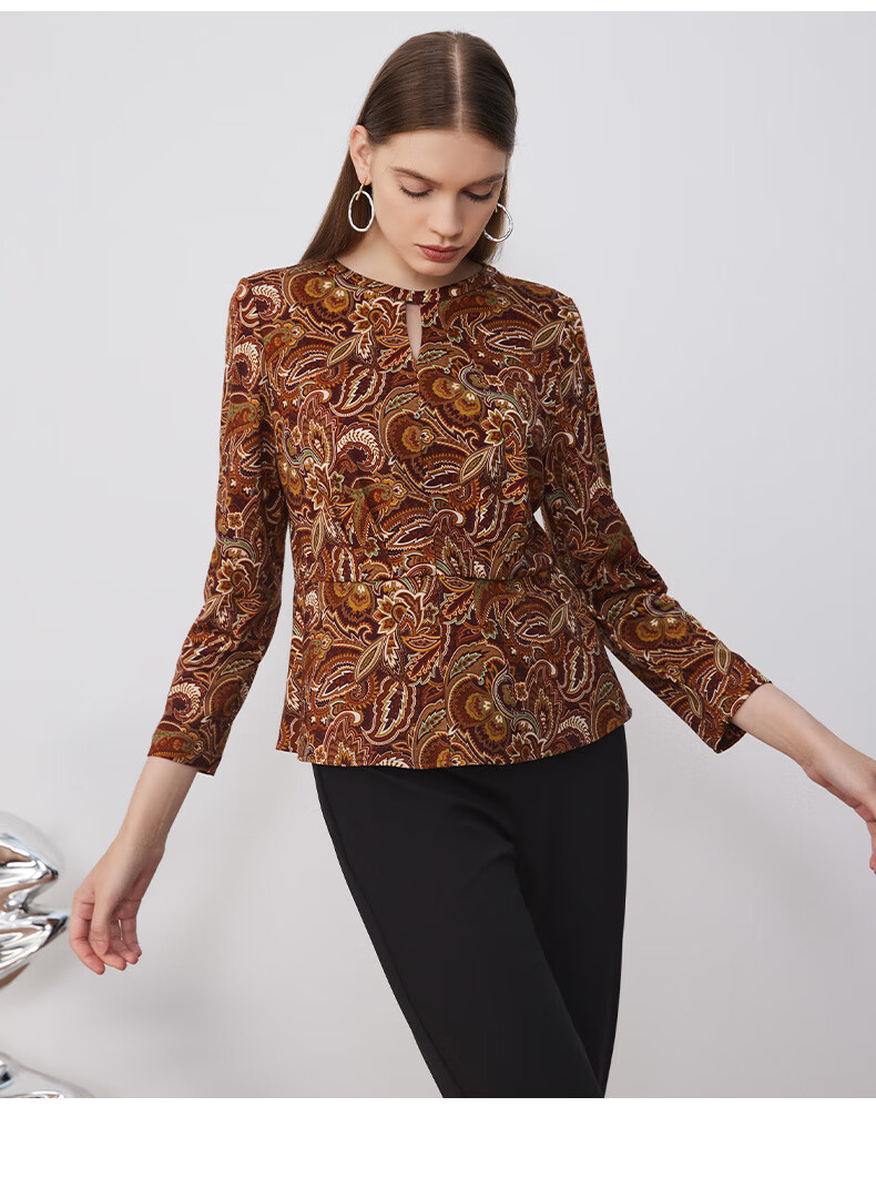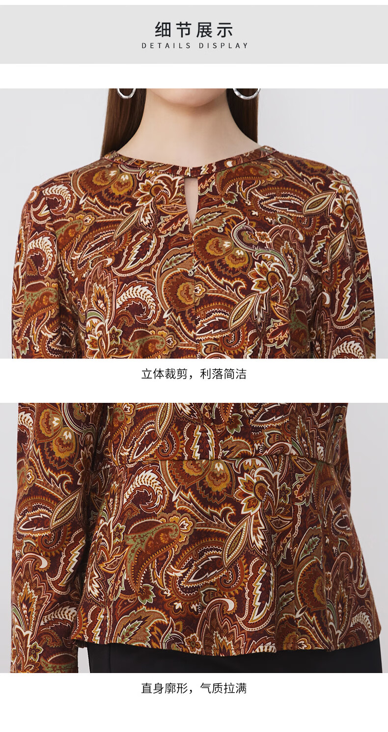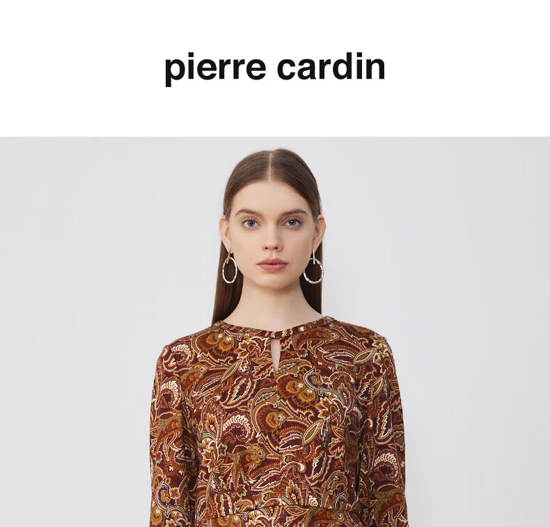 皮尔卡丹女装衬衫长袖复古印花羊毛打底通勤套头衫P3428B3980K3