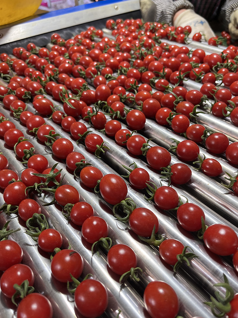 果农们每天凌晨采摘小番茄,并快马加鞭在一天时间内挑拣和打包,保证大家收到的小番茄色泽鲜艳透亮,果蒂青翠挺括