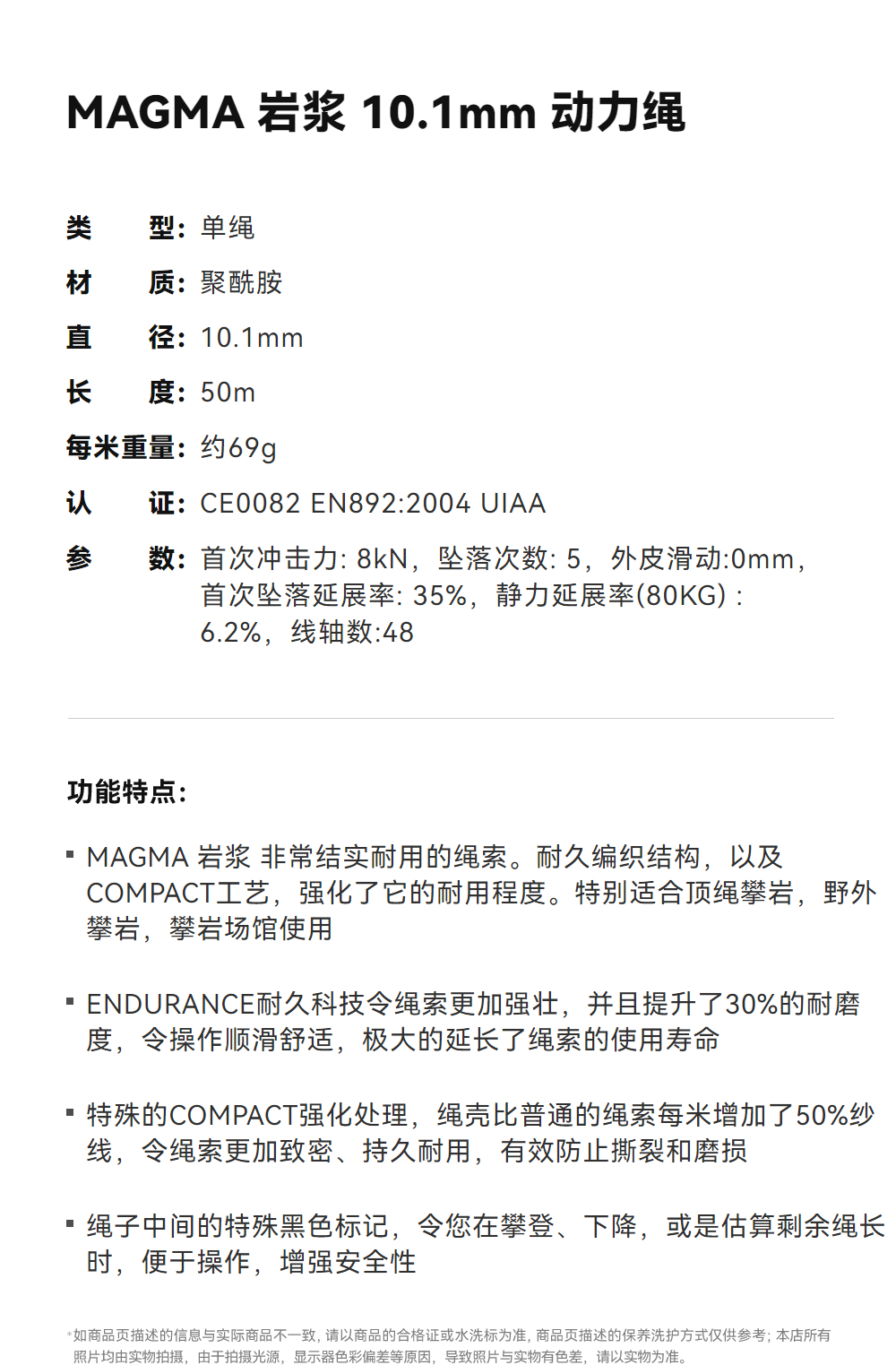 KAILAS凯乐石 户外运动 MAGMA 岩浆 10.2mm 动力绳 ER108A【Z】