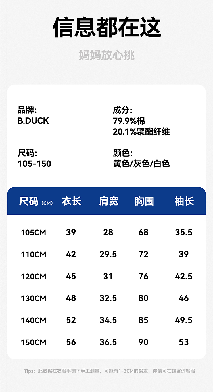 B.Duck小黄鸭童装圆领卫衣春春秋男童时尚休闲童装潮105-150 BF3508955