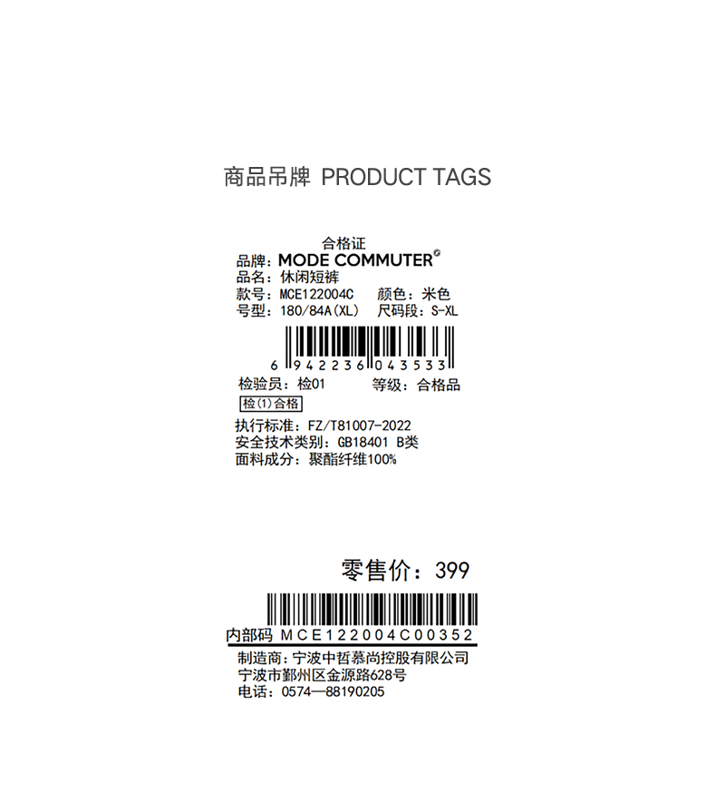 MODE COMMUTER | MC秋季简约极简休闲短裤阔版男MCE122004C