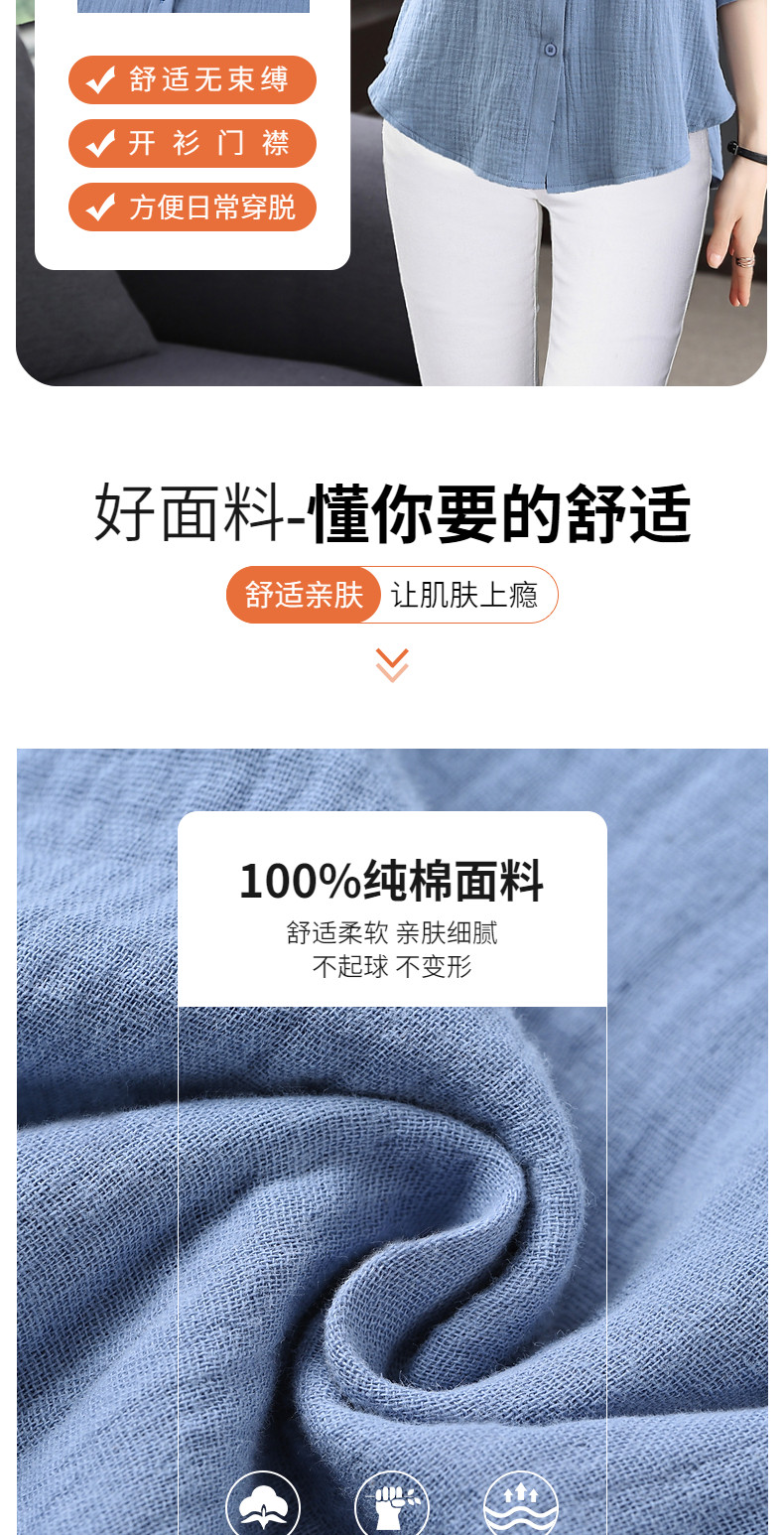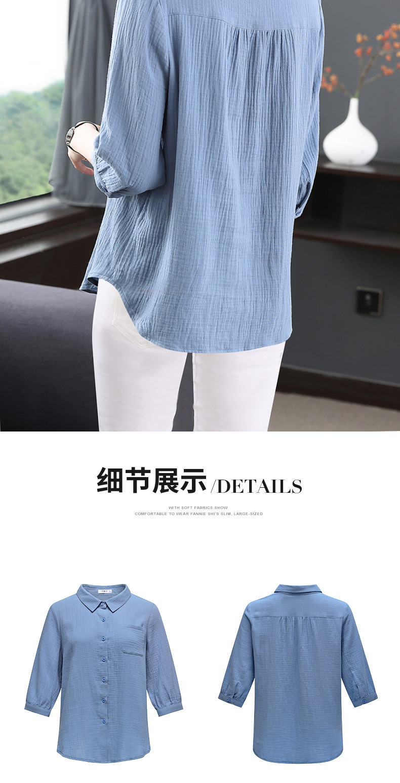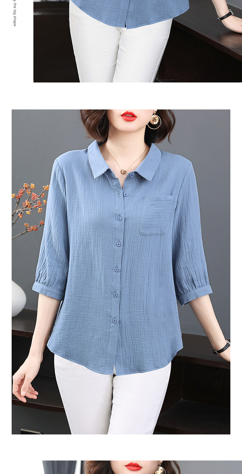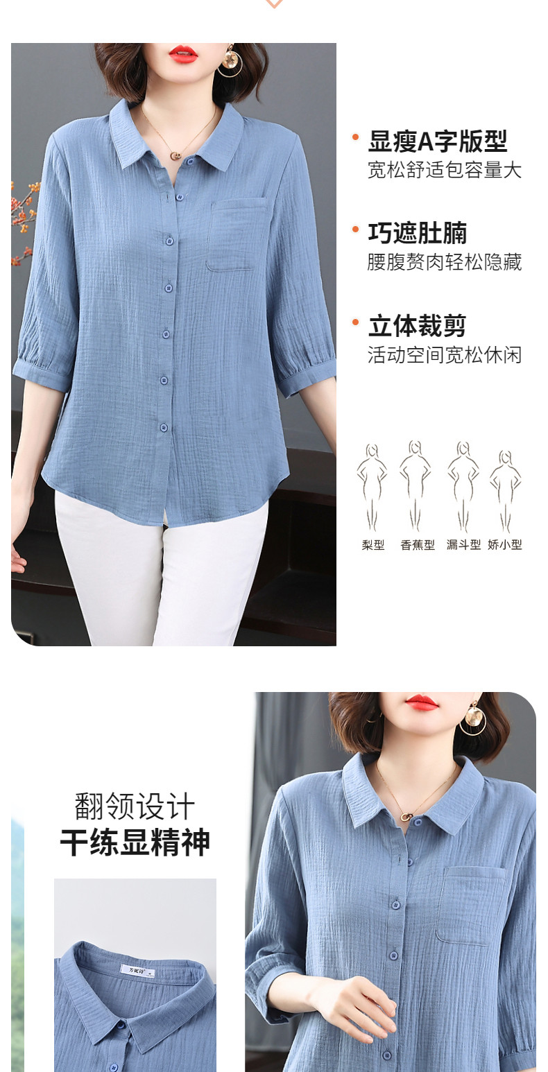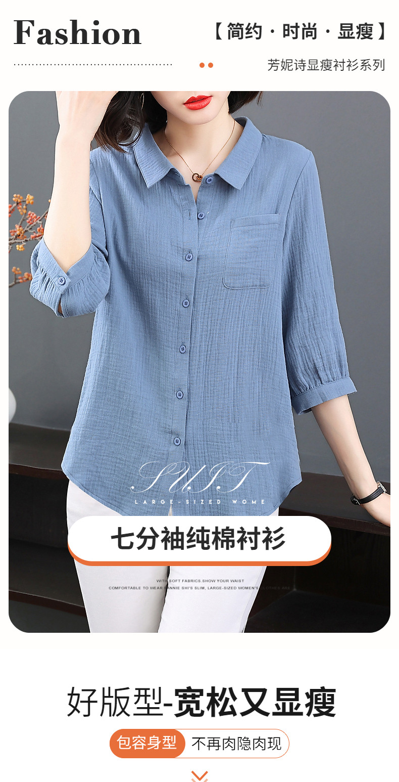 纯棉女士衬衫春夏季2026新款女装洋气大码中袖衬衣七分袖棉麻上衣