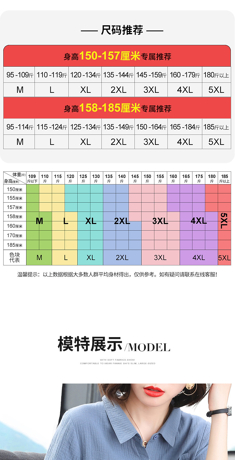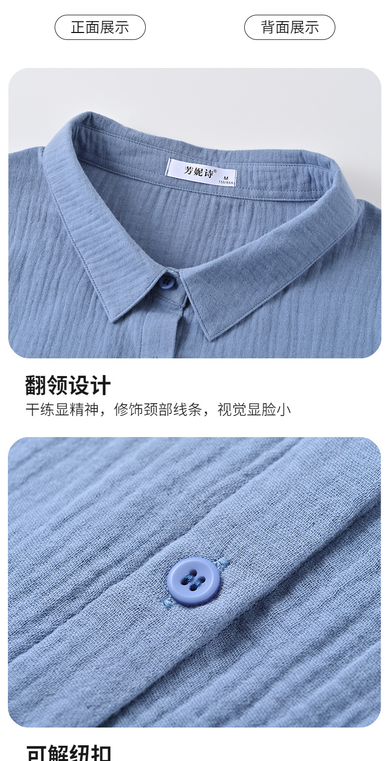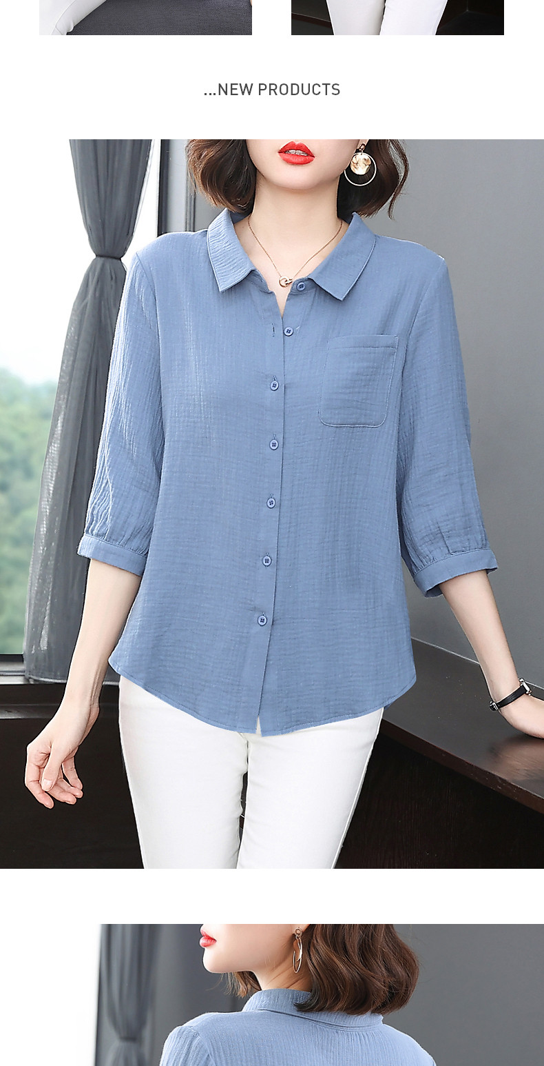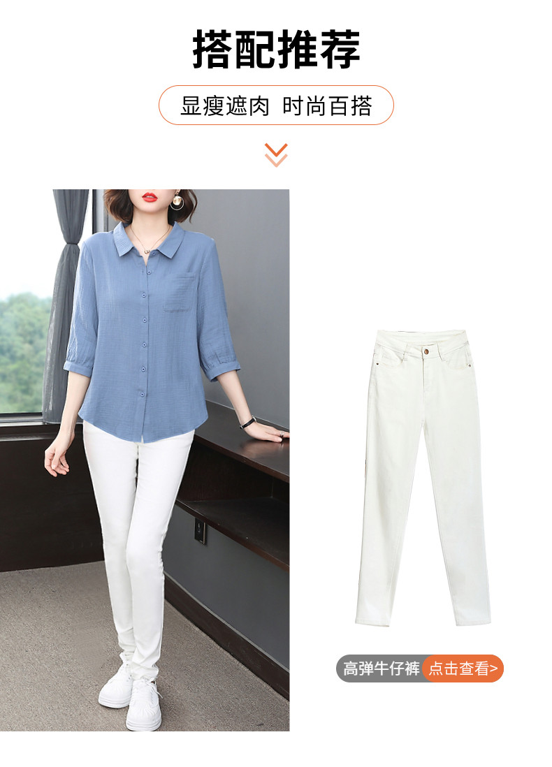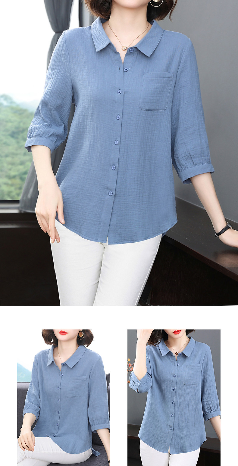 纯棉女士衬衫春夏季2026新款女装洋气大码中袖衬衣七分袖棉麻上衣