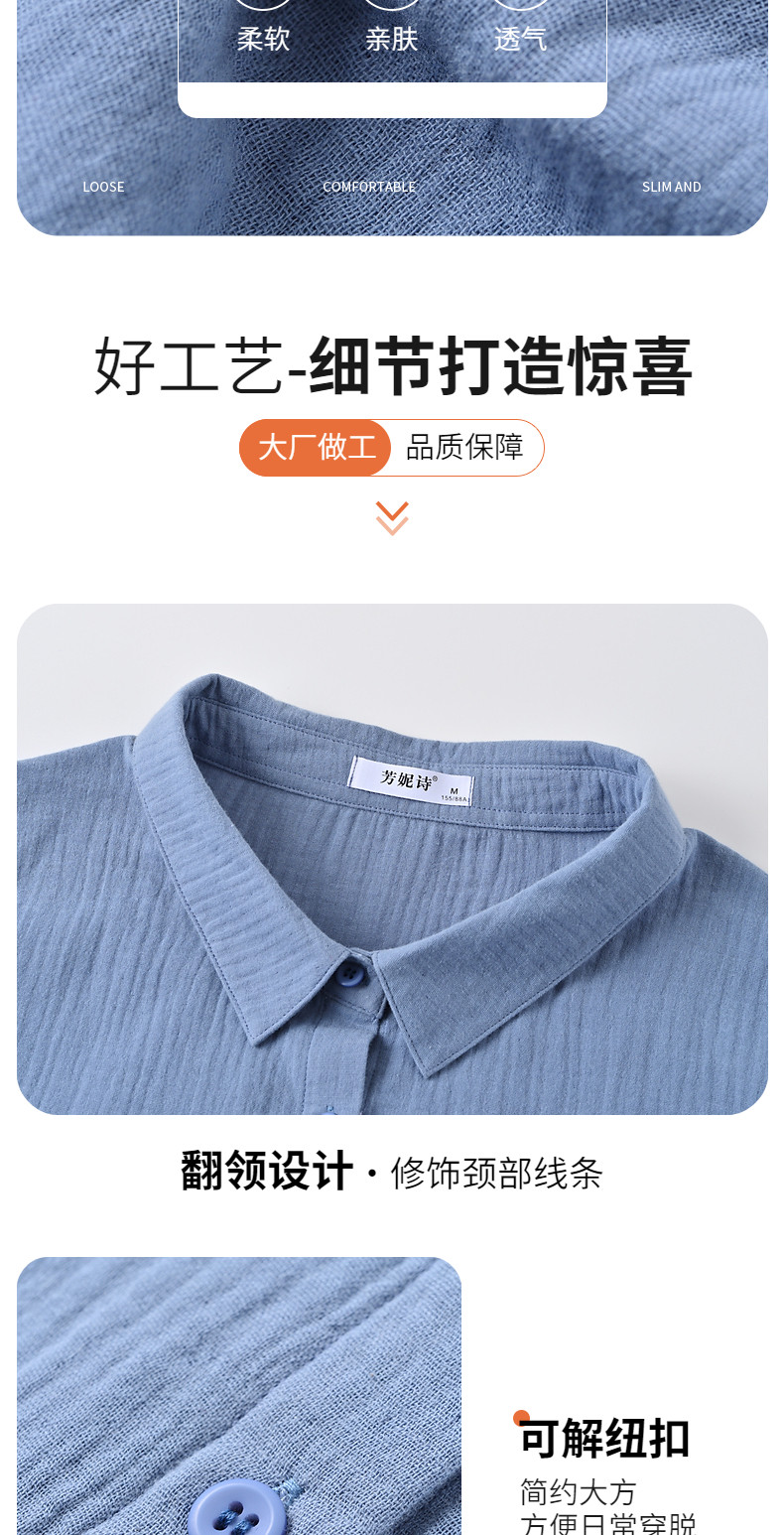 中袖七分袖上衣女纯棉衬衫春秋2026新款女装宽松休闲女士衬衣薄款