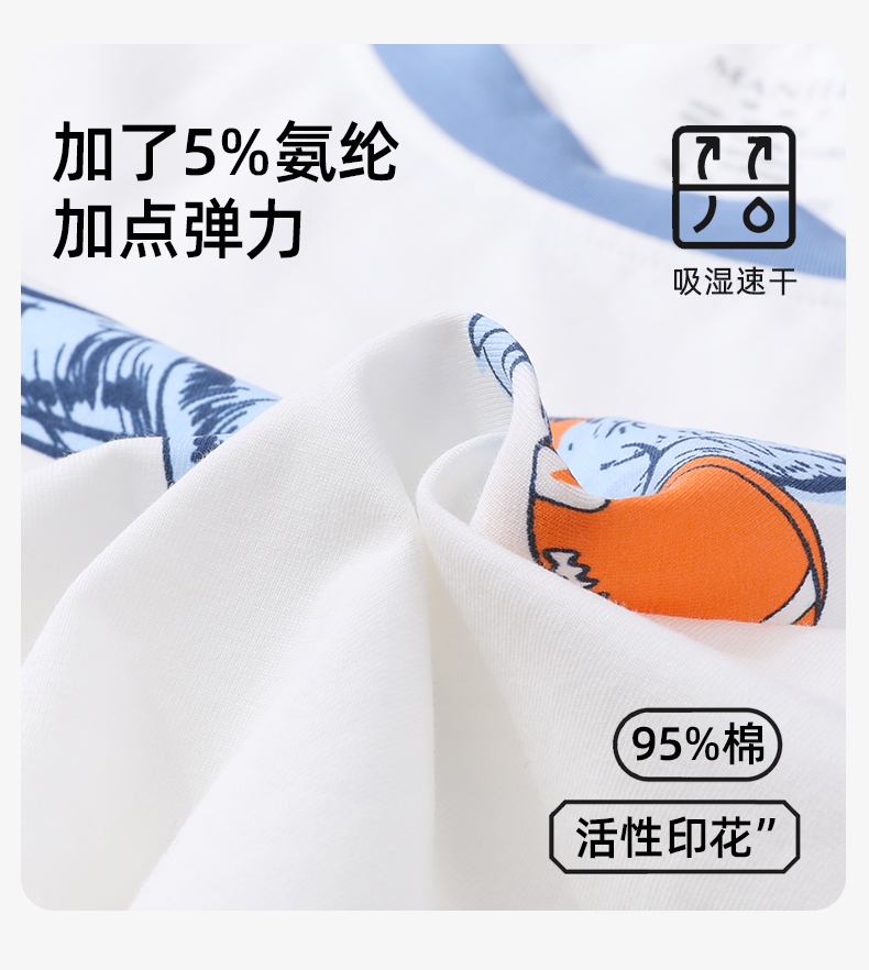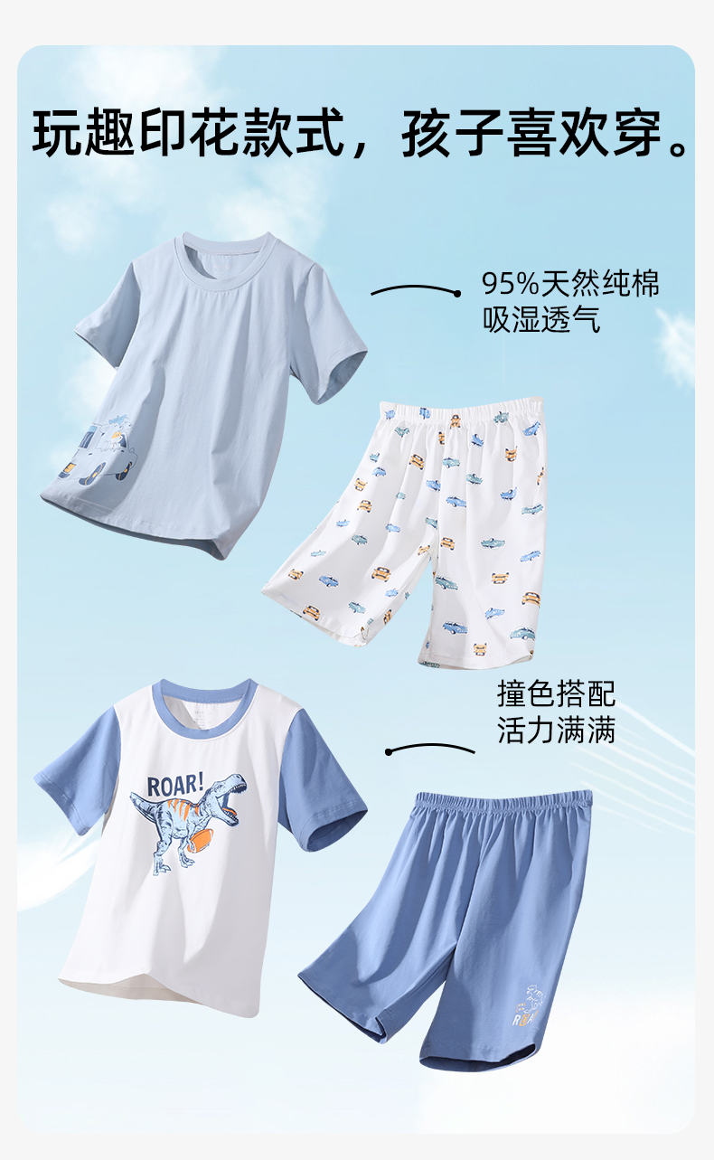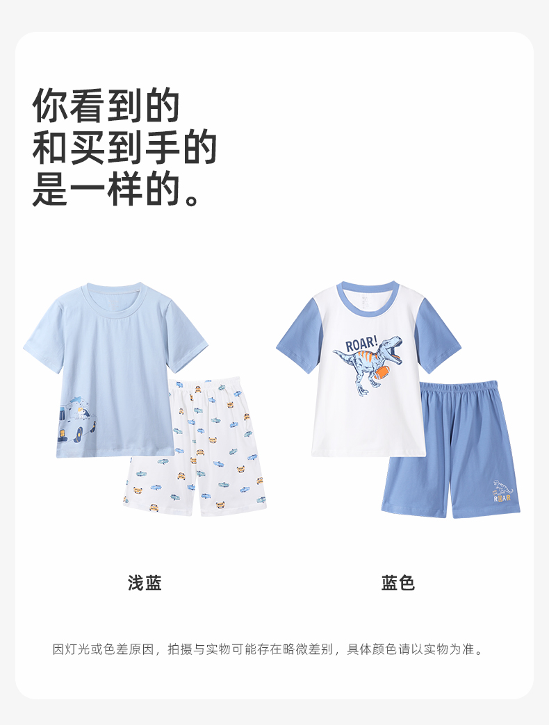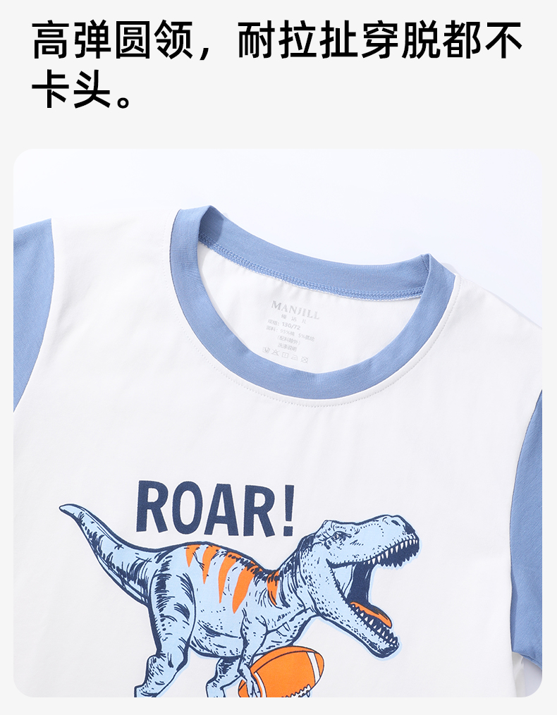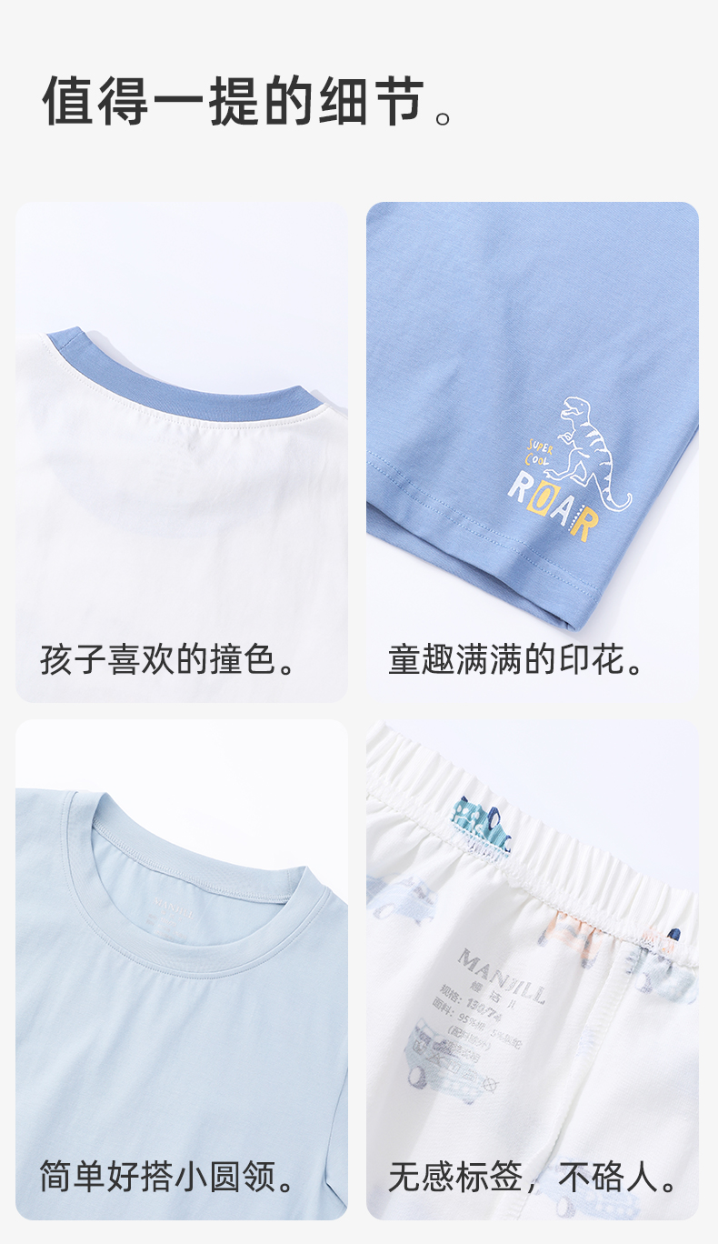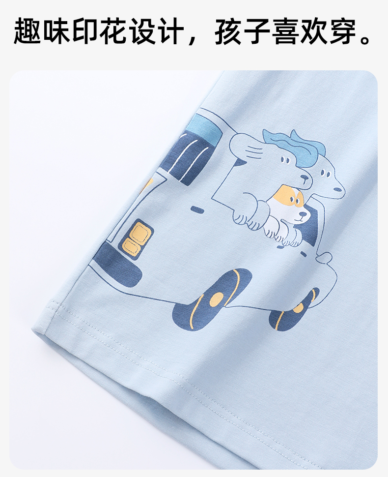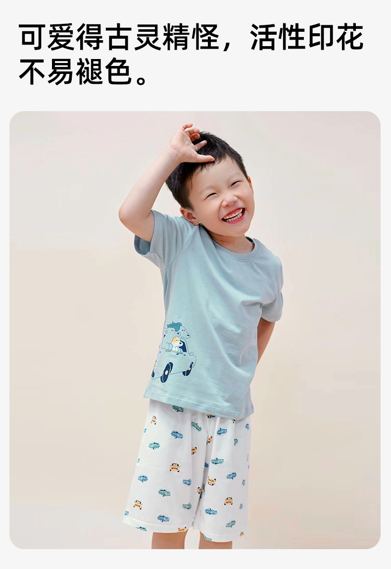 【商场同款】熳洁儿 夏季家居服男童印花棉套装撞色卡通短袖短裤可外穿23203665