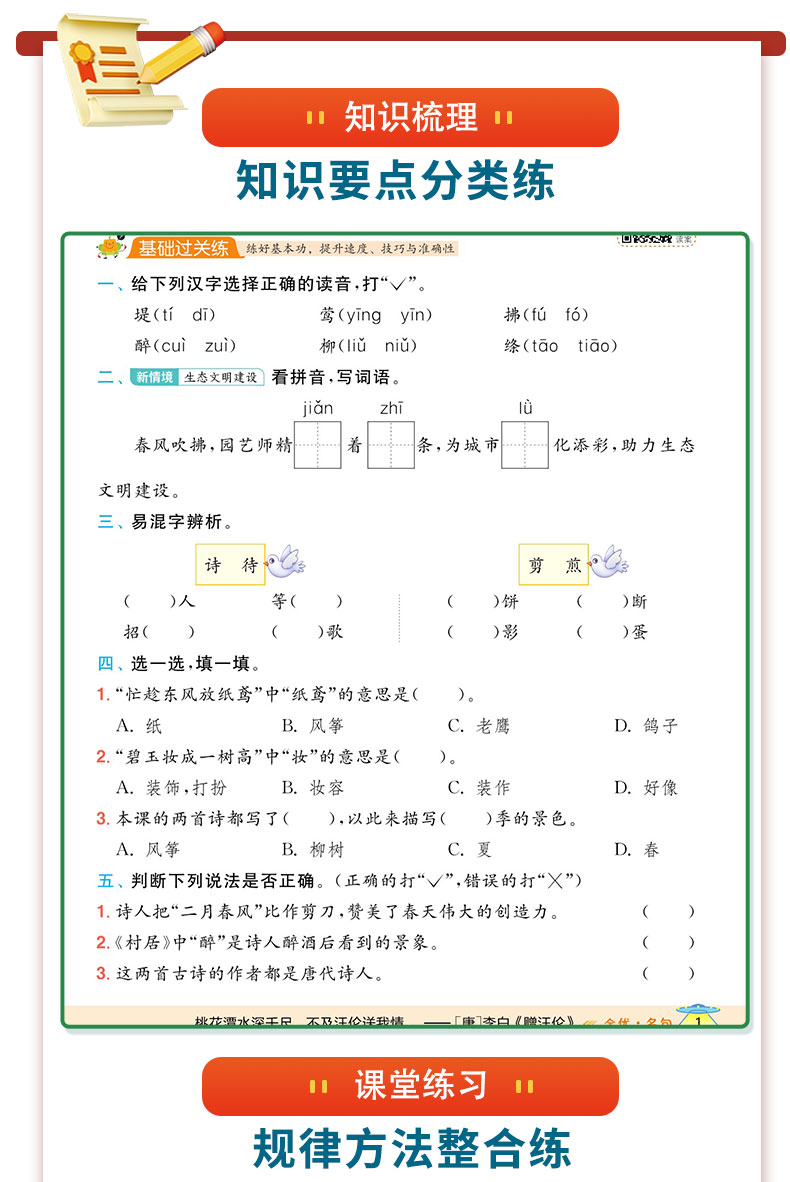 2025年春 小学语文人教版 二年级下册 1课3练