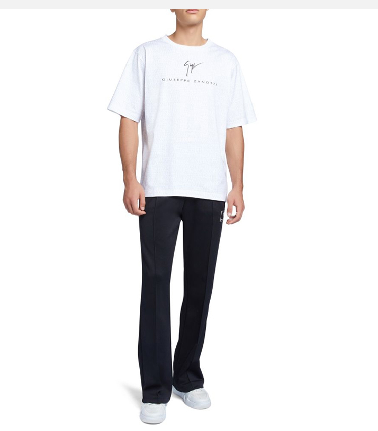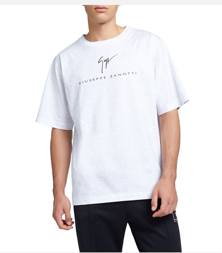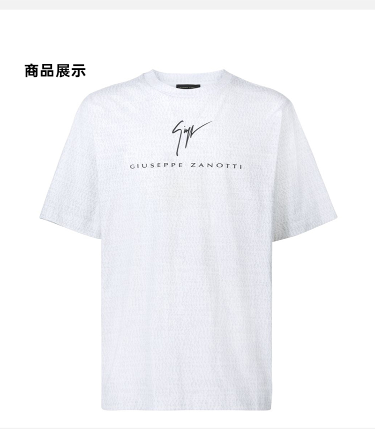 Giuseppe Zanotti 男士签名徽标刺绣棉质圆领短袖T恤 白色 ERU4001001