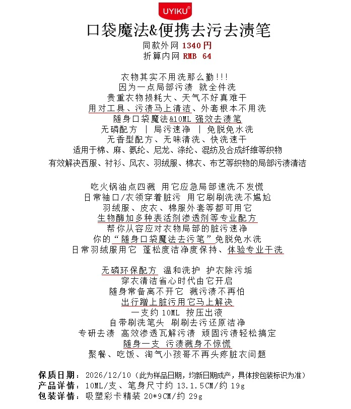 「海外同款!便携去渍笔」UYIKU衣物脏污便携去渍笔 应急去渍衣物涂改液无磷无香配方去渍笔居家日用 商品缩略图0 「海外同款!便携去渍笔」UYIKU衣物脏污便携去渍笔 应急去渍衣物涂改液无磷无香配方去渍笔居家日用 商品缩略图1 「海外同款!便携去渍笔」UYIKU衣物脏污便携去渍笔 应急去渍衣物涂改液无磷无香配方去渍笔居家日用 商品缩略图2 「海外同款!便携去渍笔」UYIKU衣物脏污便携去渍笔 应急去渍衣物涂改液无磷无香配方去渍笔居家日用 商品缩略图3 「海外同款!便携去渍笔」UYIKU衣物脏污便携去渍笔 应急去渍衣物涂改液无磷无香配方去渍笔居家日用 商品缩略图4