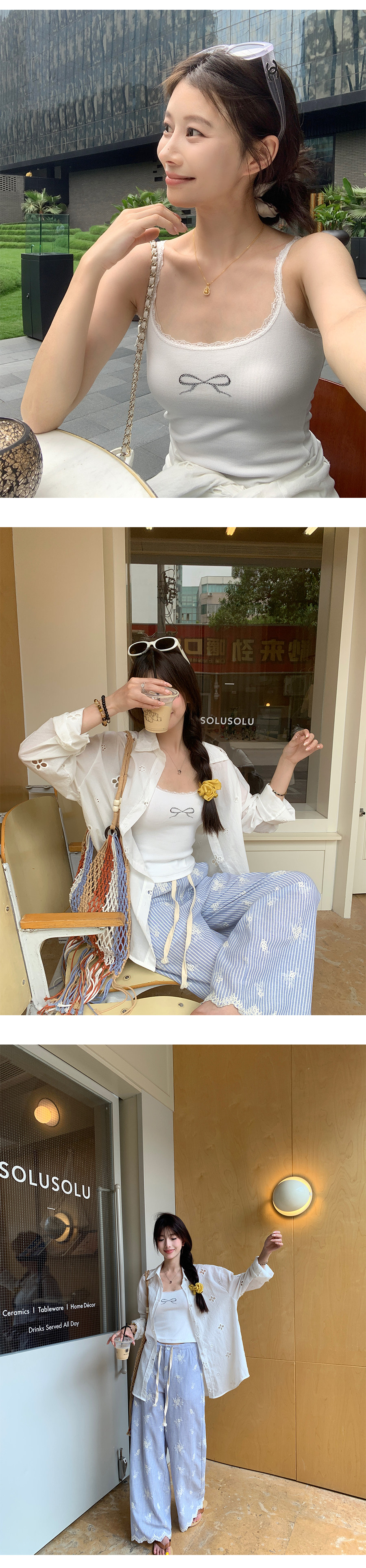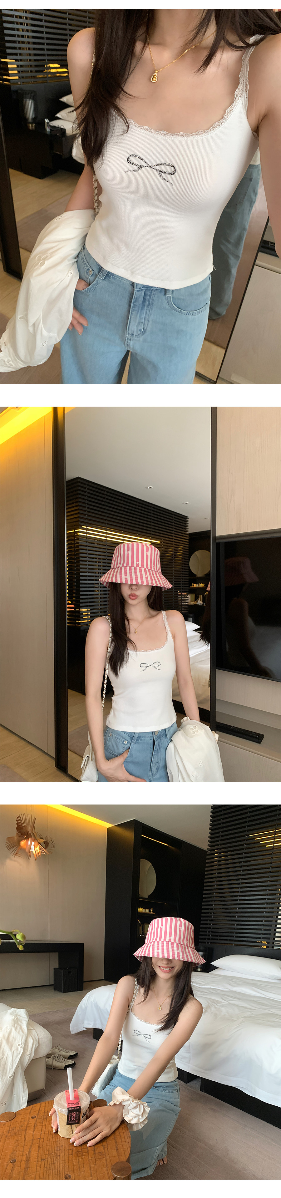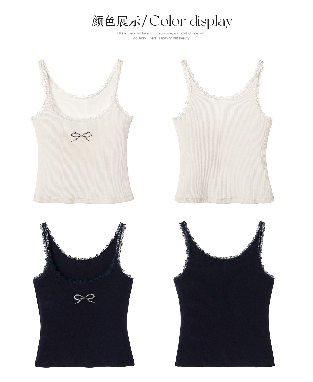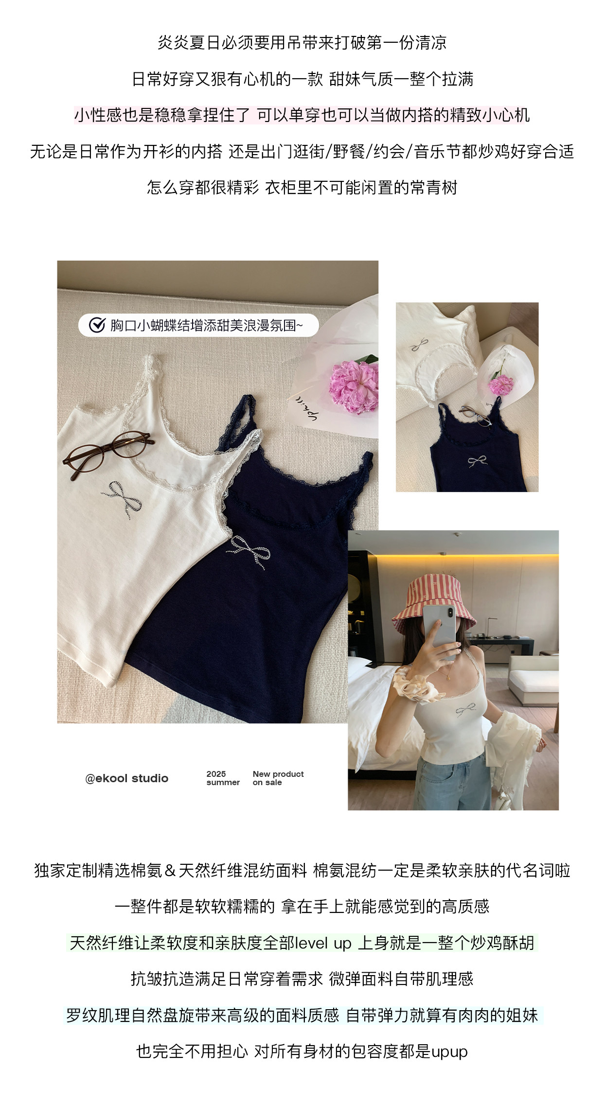 EKOOL衣库 烫钻蝴蝶结蕾丝花边吊带背心女夏季修身百搭显瘦上衣