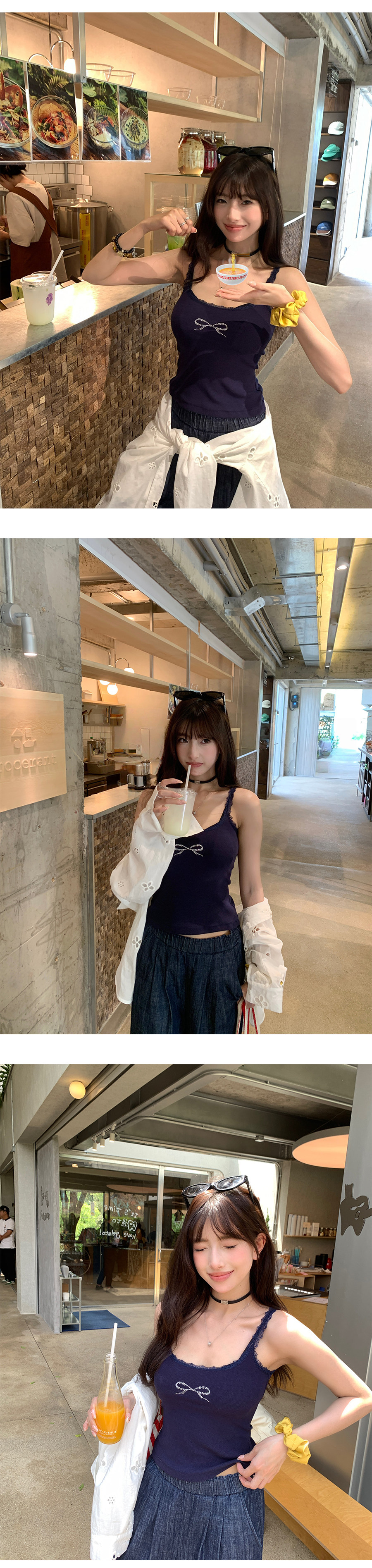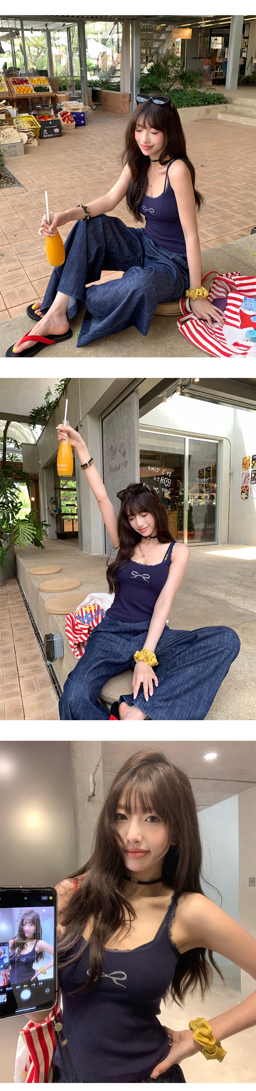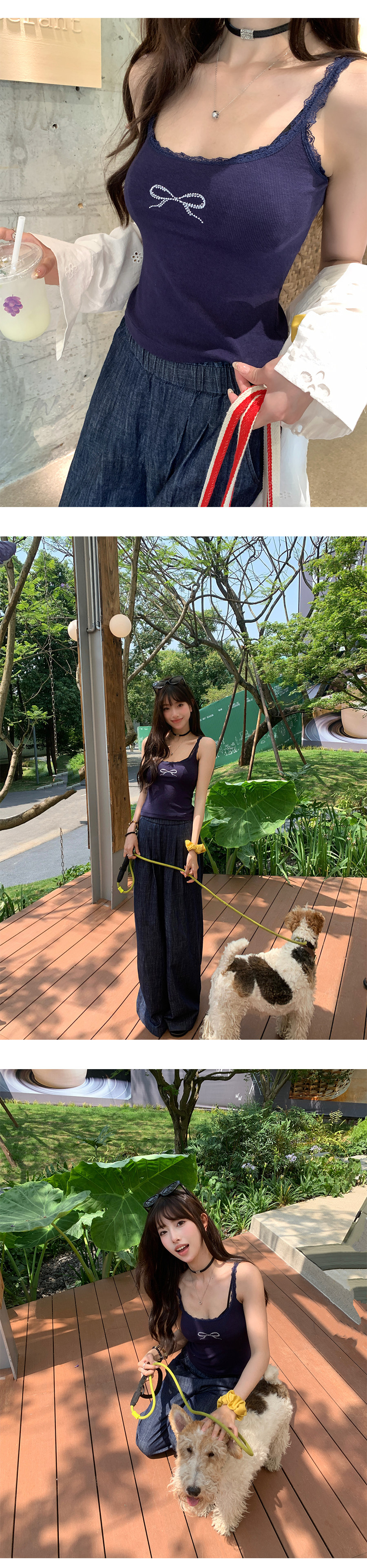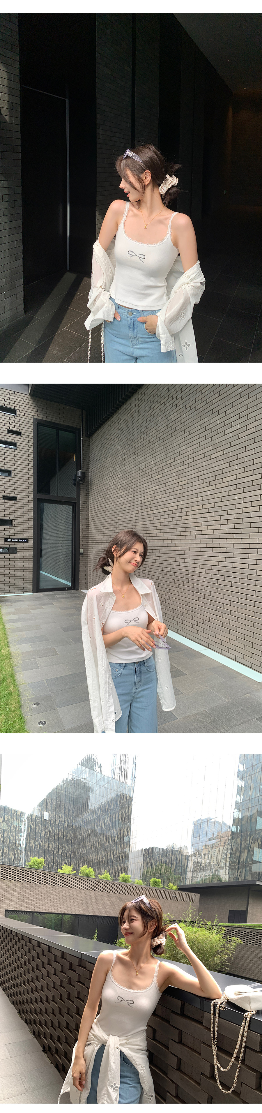 EKOOL衣库 烫钻蝴蝶结蕾丝花边吊带背心女夏季修身百搭显瘦上衣