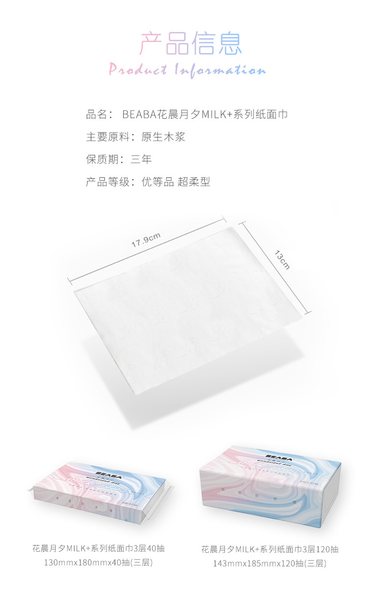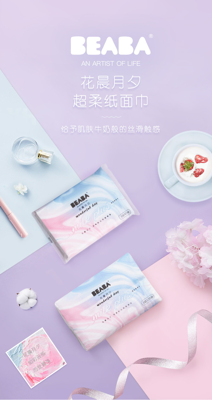 (超值)BEABA碧芭宝贝 花晨月夕柔纸巾婴儿宝宝面巾抽纸干湿两用40抽*100包