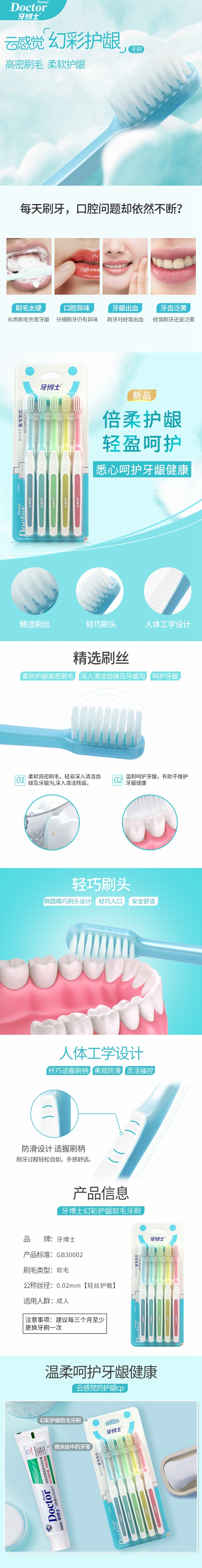 牙博士幻彩护龈软毛牙刷5支