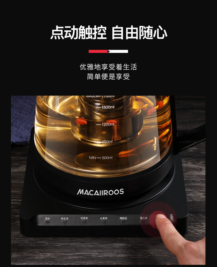 Macaiiroos/迈卡罗玻璃养生壶家用多功能熬中药煲煎药壶全自动