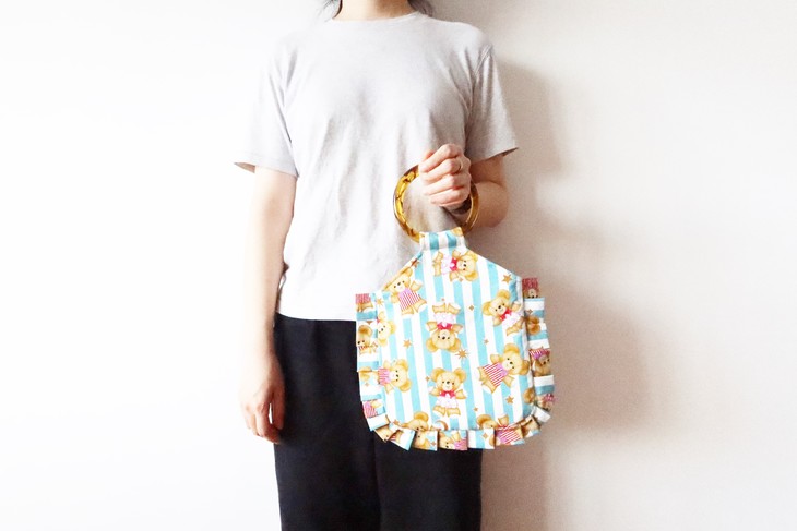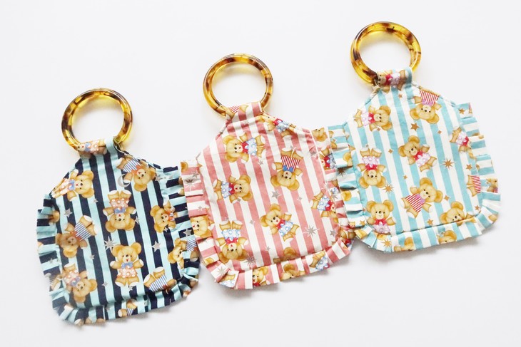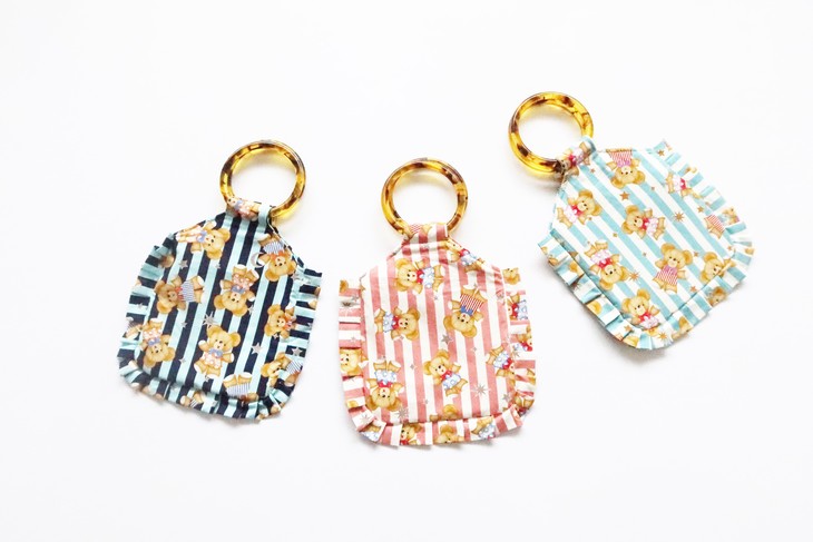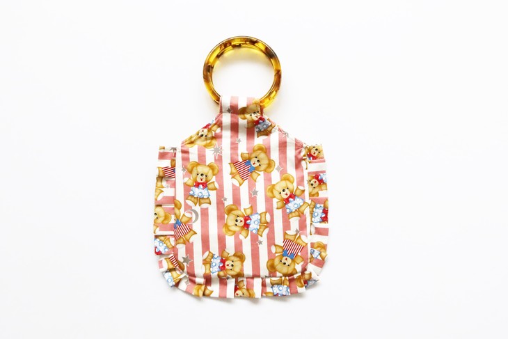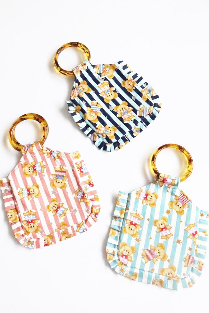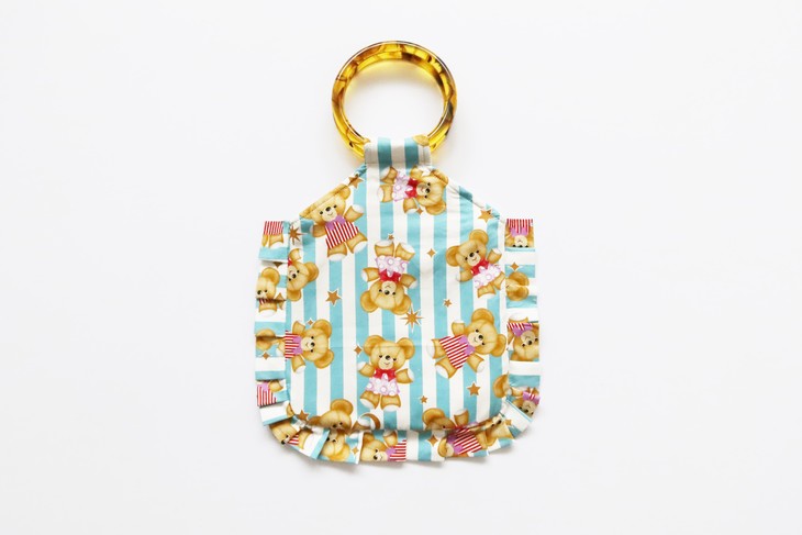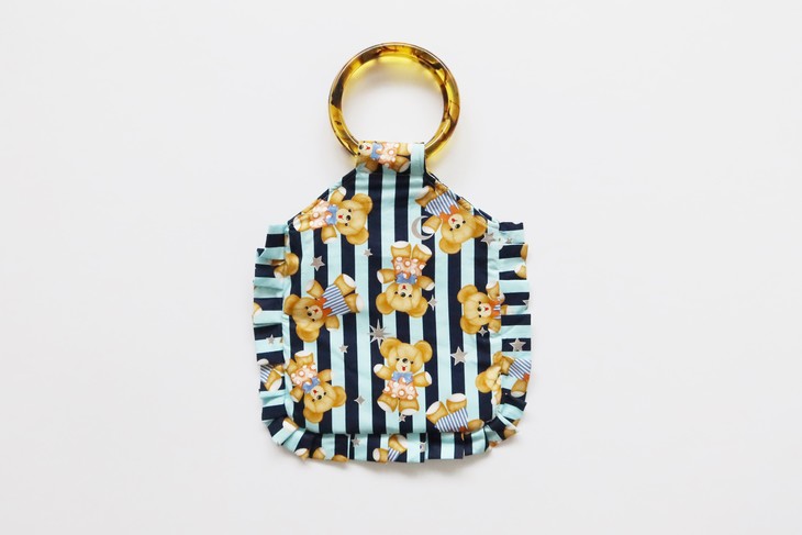 HUJI祤集荷叶边圆环柄手提包插画条纹布偶熊