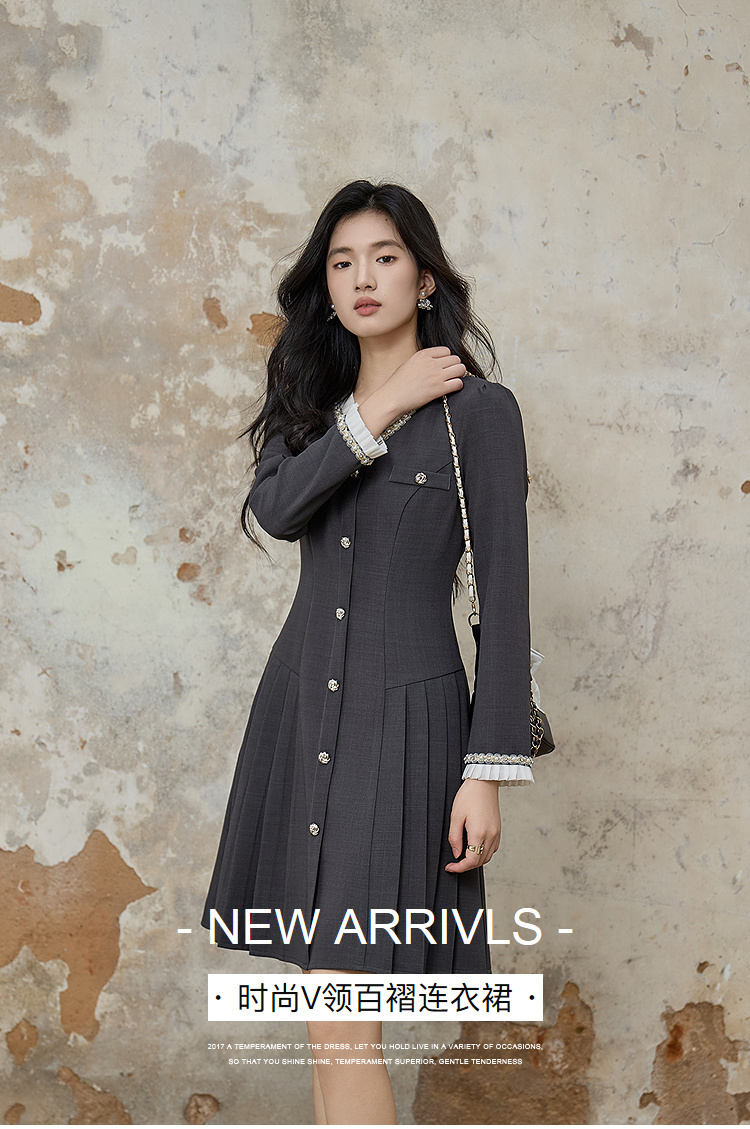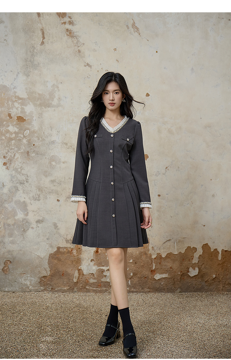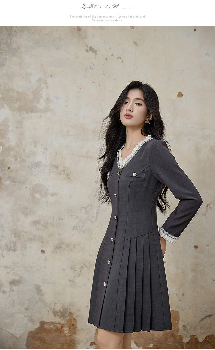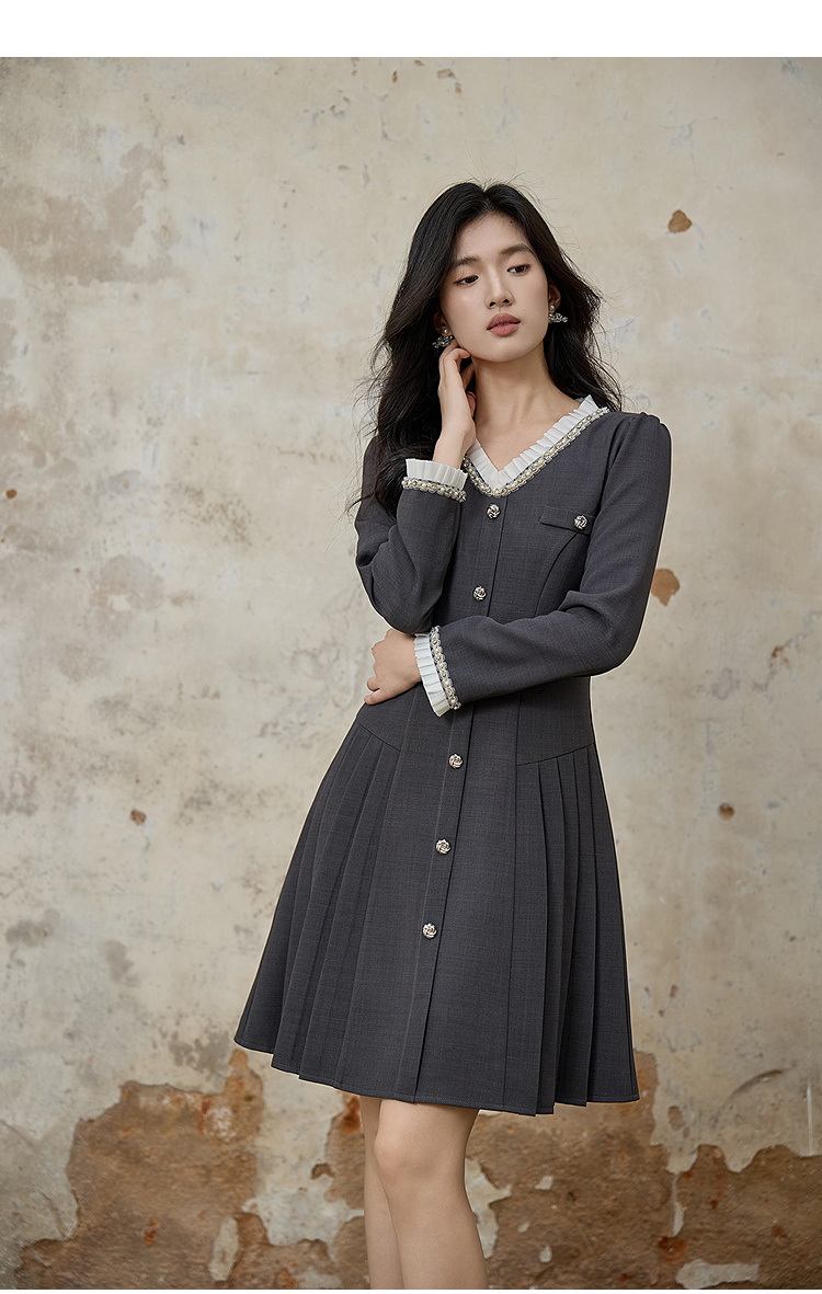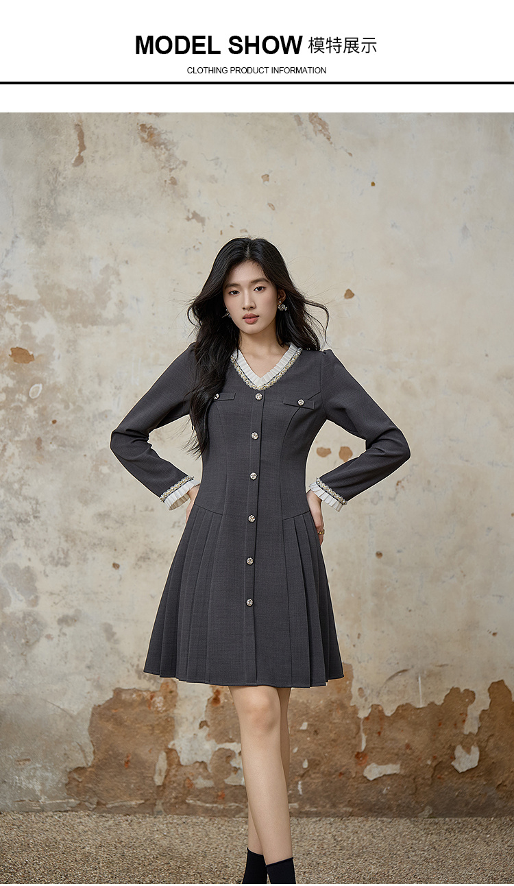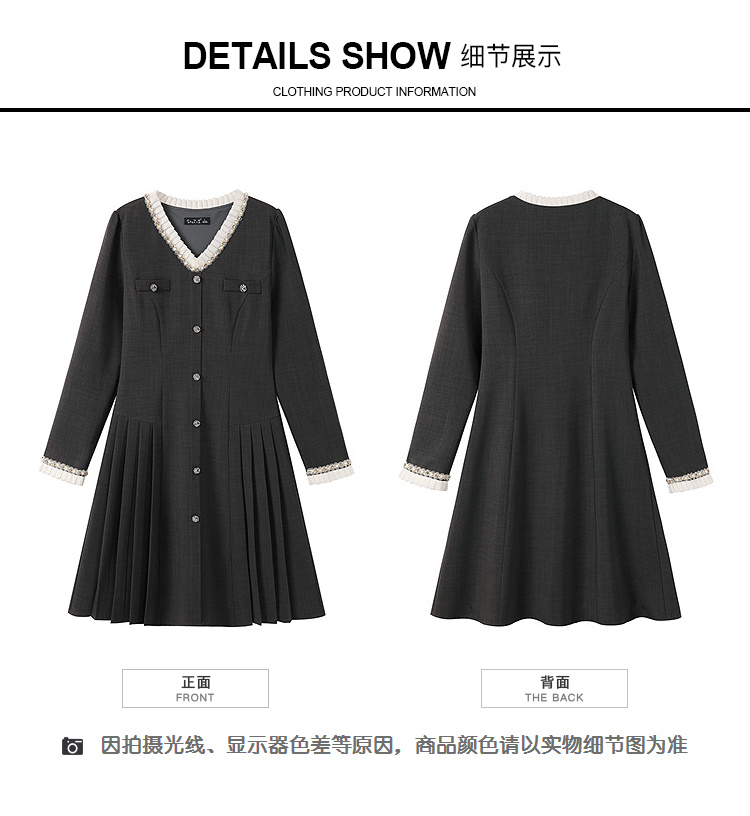 奢姿大码女装2025秋季胖妹妹时尚减龄珍珠花边装饰百褶设计连衣裙9953853610