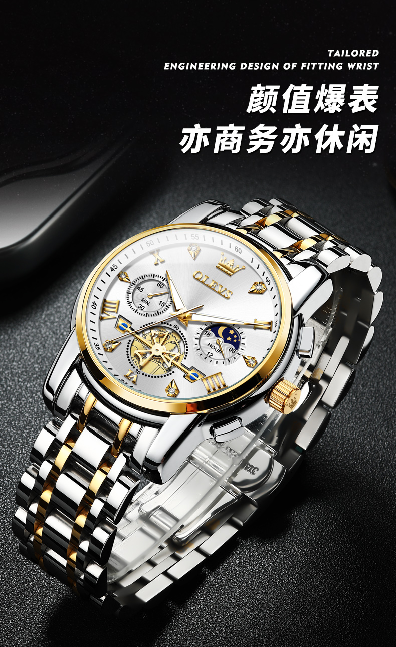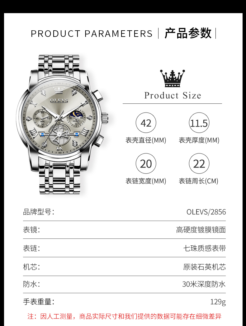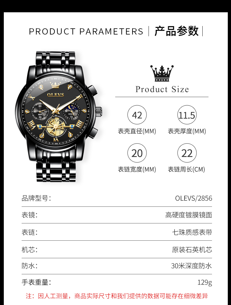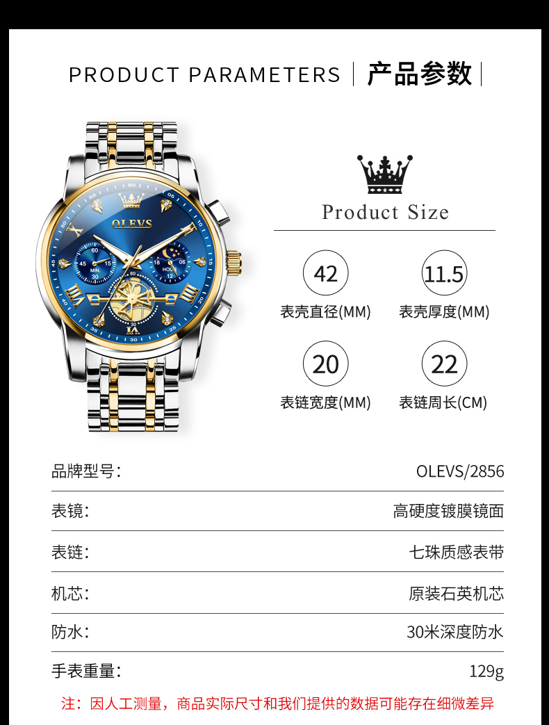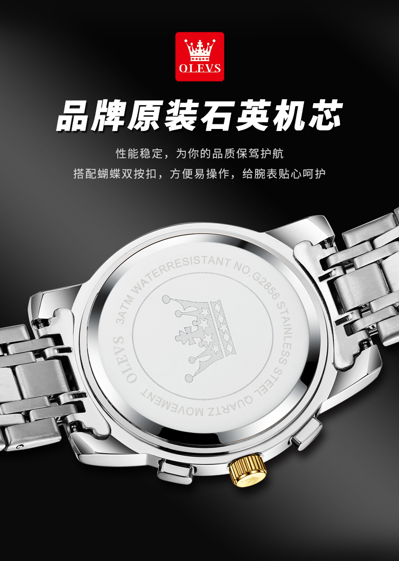 欧利时OLEVS 石英表 2856 瑞士认证品牌手表商务多功能全自动男士手表夜光防水石英腕表