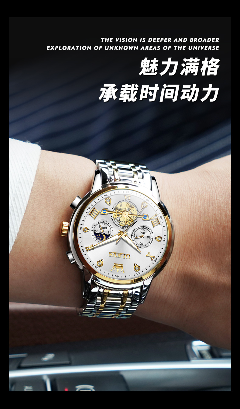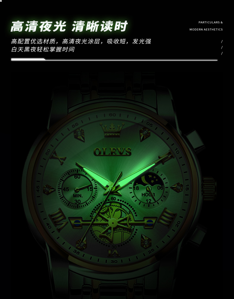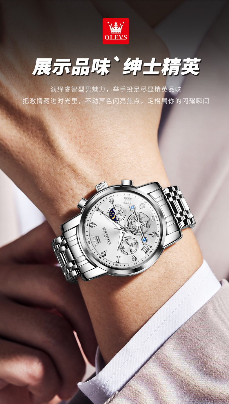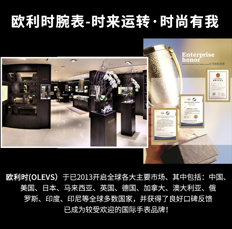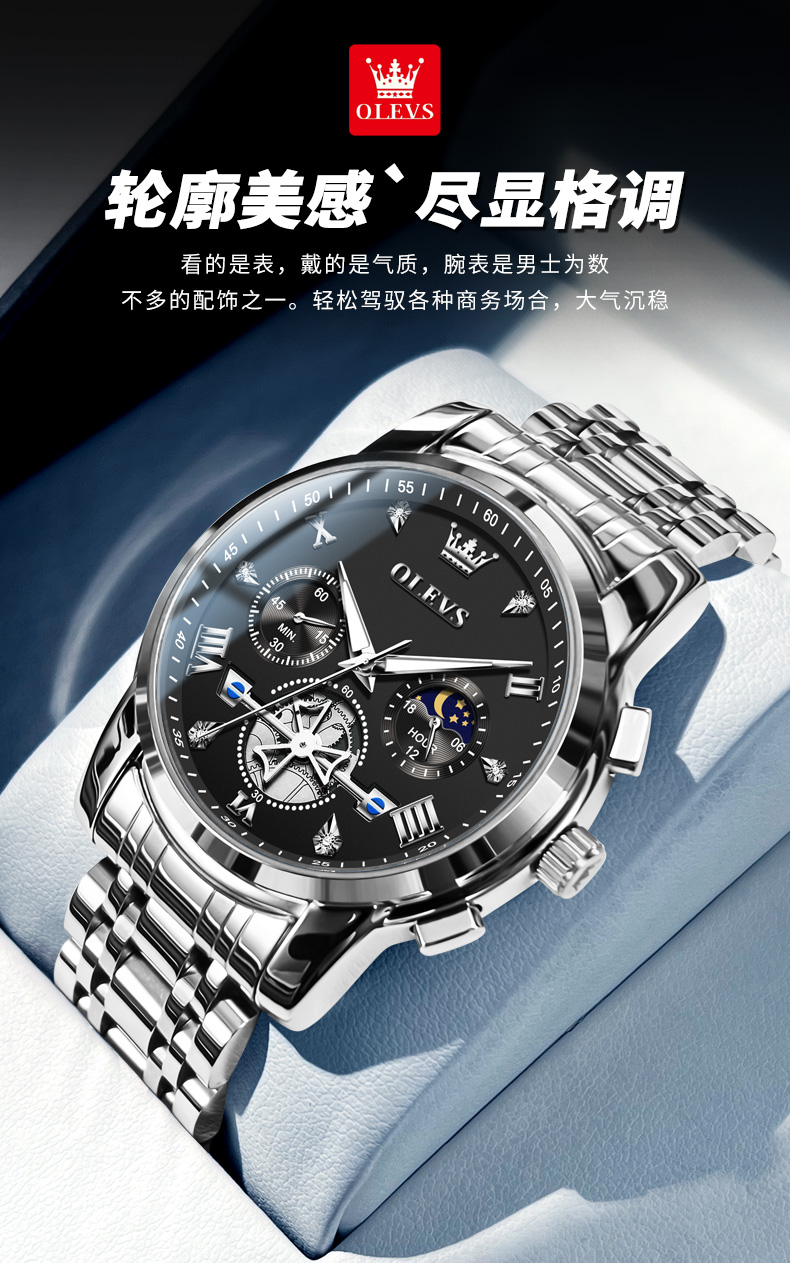 欧利时OLEVS 石英表 2856 瑞士认证品牌手表商务多功能全自动男士手表夜光防水石英腕表
