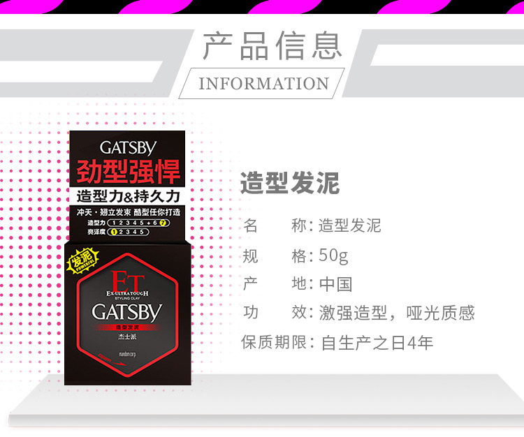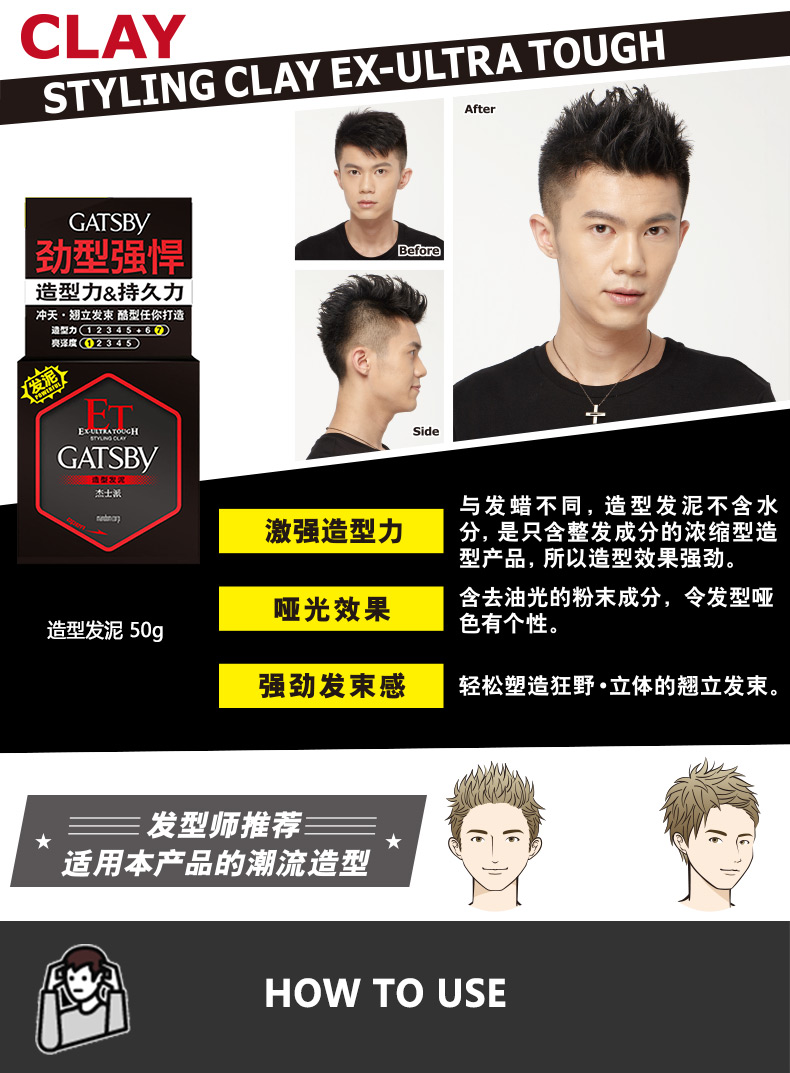 杰士派造型发泥50g 男士强定型蓬松持久哑光发蜡可搭配定型喷雾