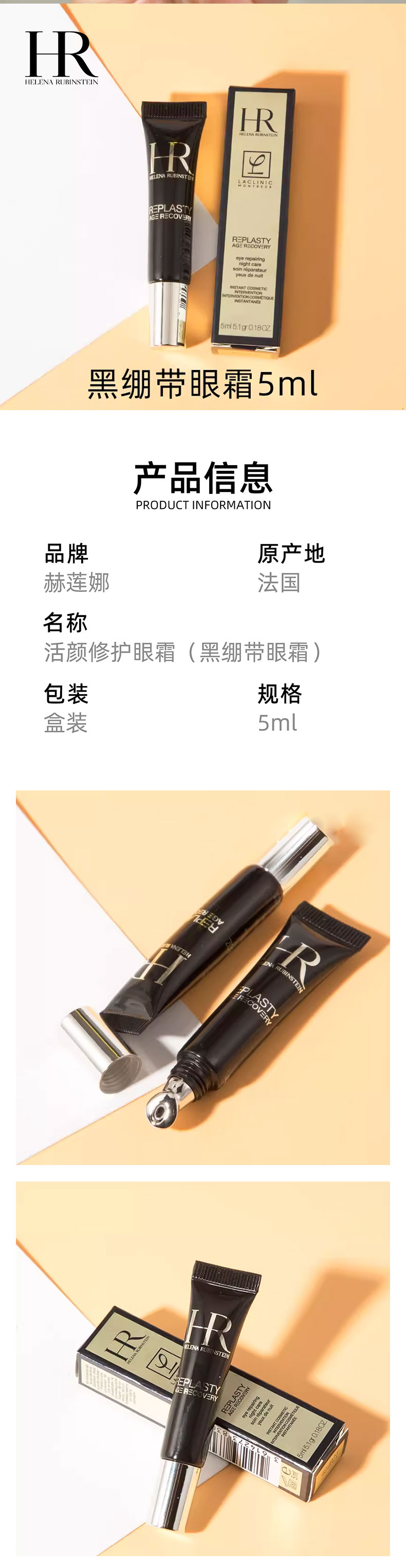 HR/赫莲娜旅行装四件套 黑绷带晚霜5mI+小露珠30ml+黑绷带眼霜5ml+洁面20ml