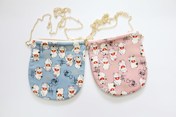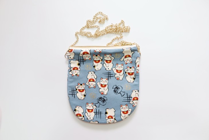 HUJI祤集竖版链条斜挎包风の花招财猫猫