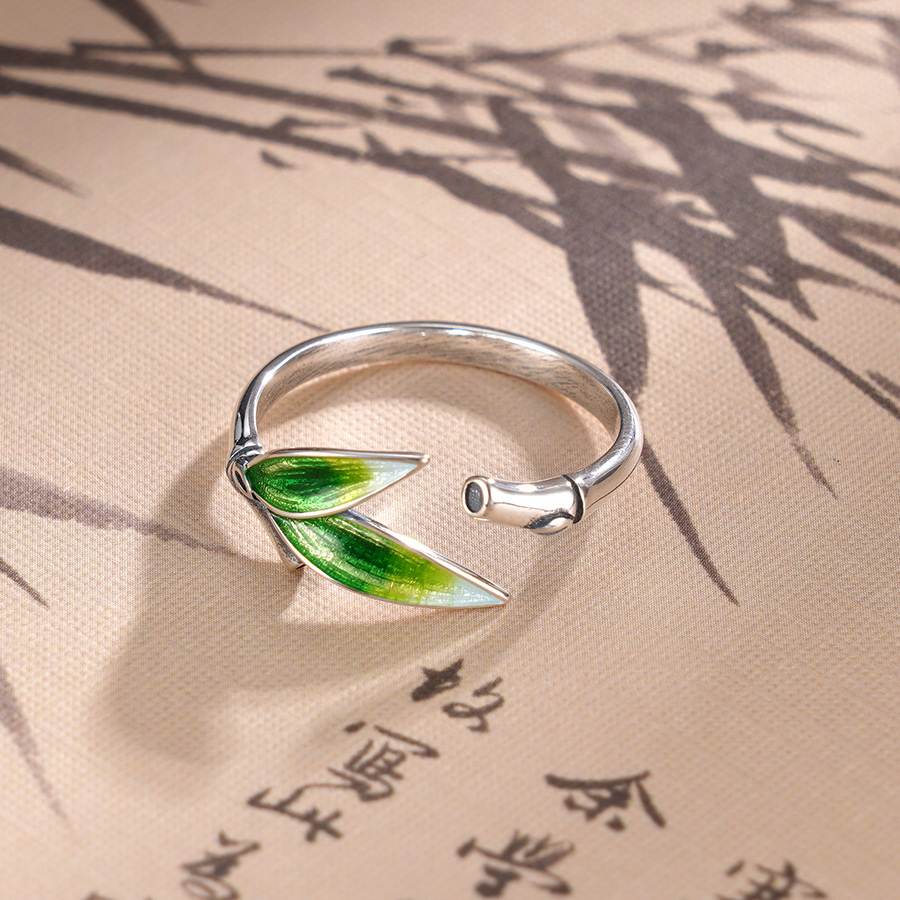 子佩集S925银【竹影清幽】戒指【JZ00772】纯银竹叶珐琅彩2412