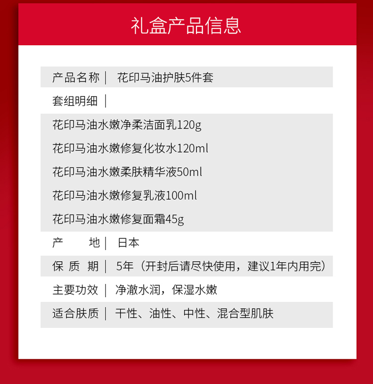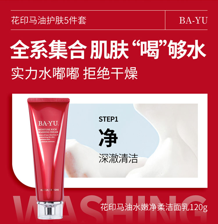 马油护肤5件套线下款(洁面120g+化妆水120ml+精华液50ml+乳液100ml+面霜45g)效期26年9月左右