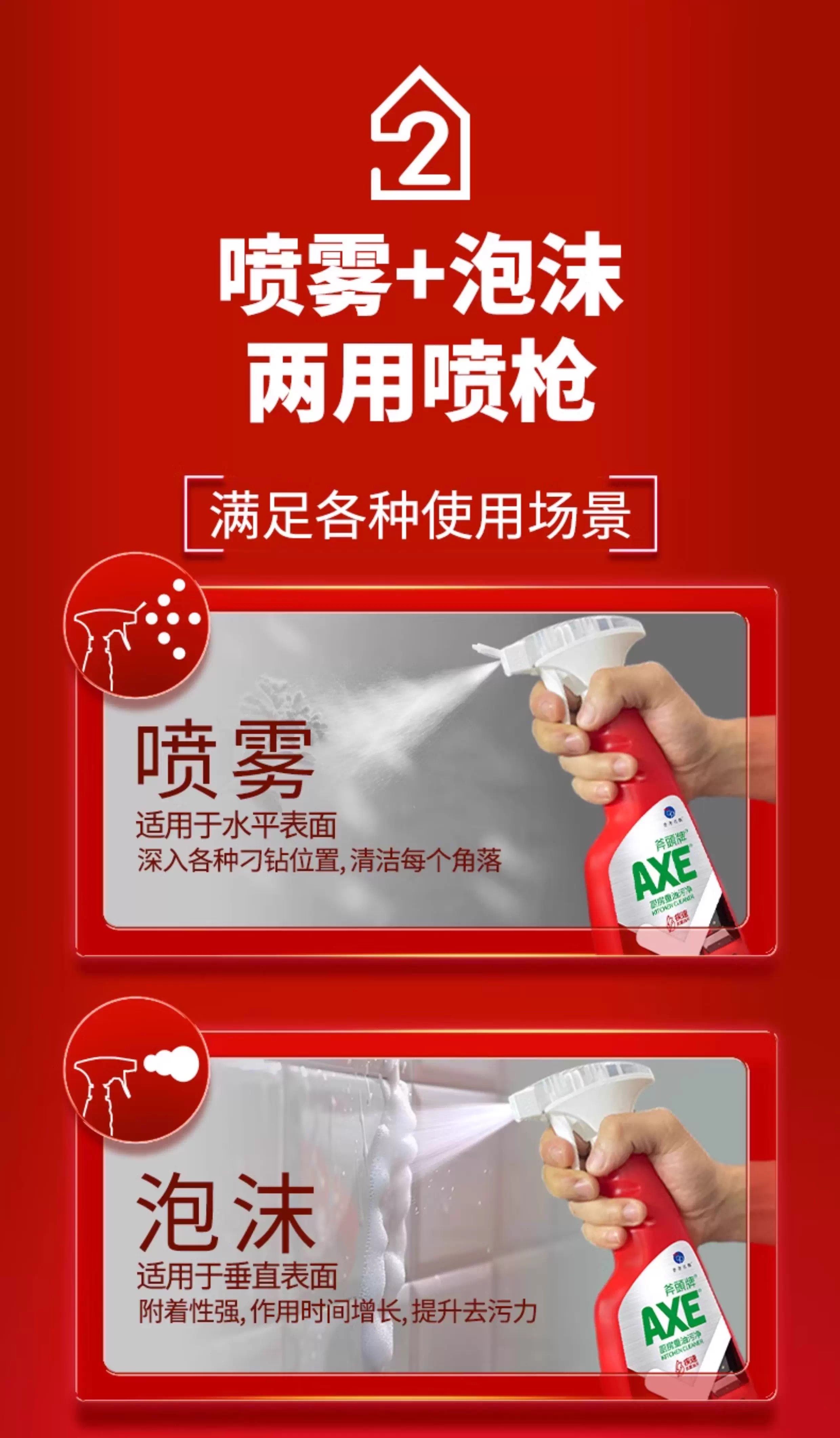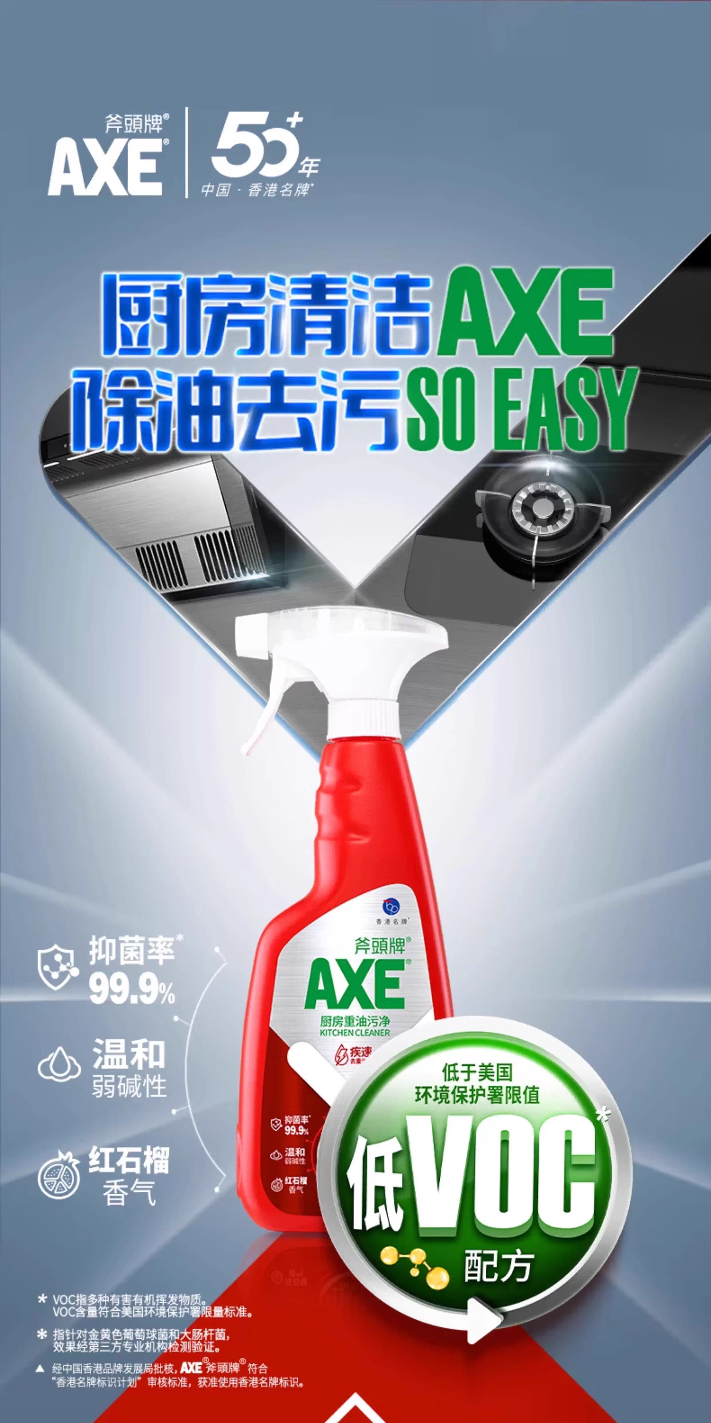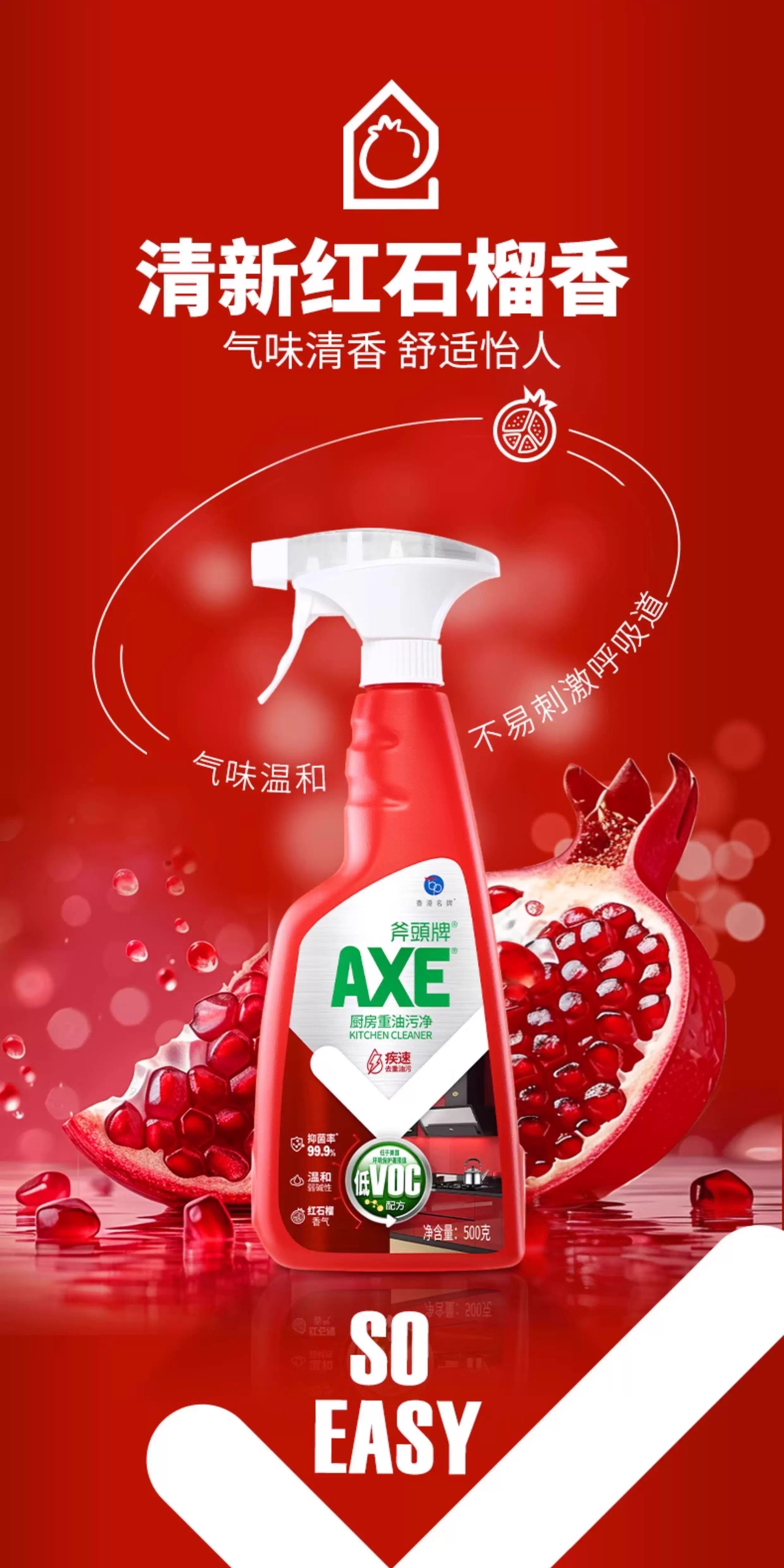 【秒杀】斧头AXE晶怡厨房重油污净(红石榴)500g*2(泵+补)