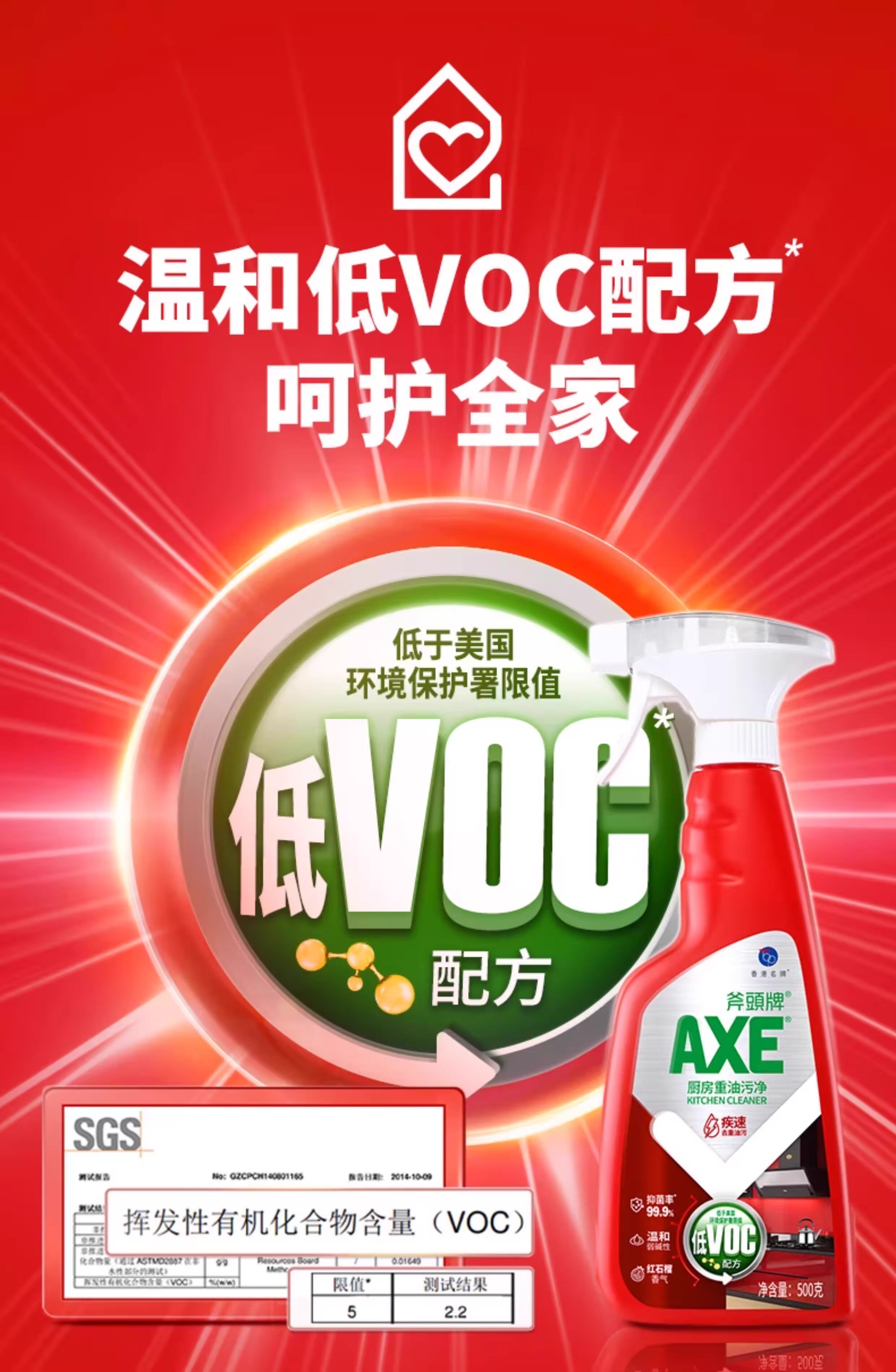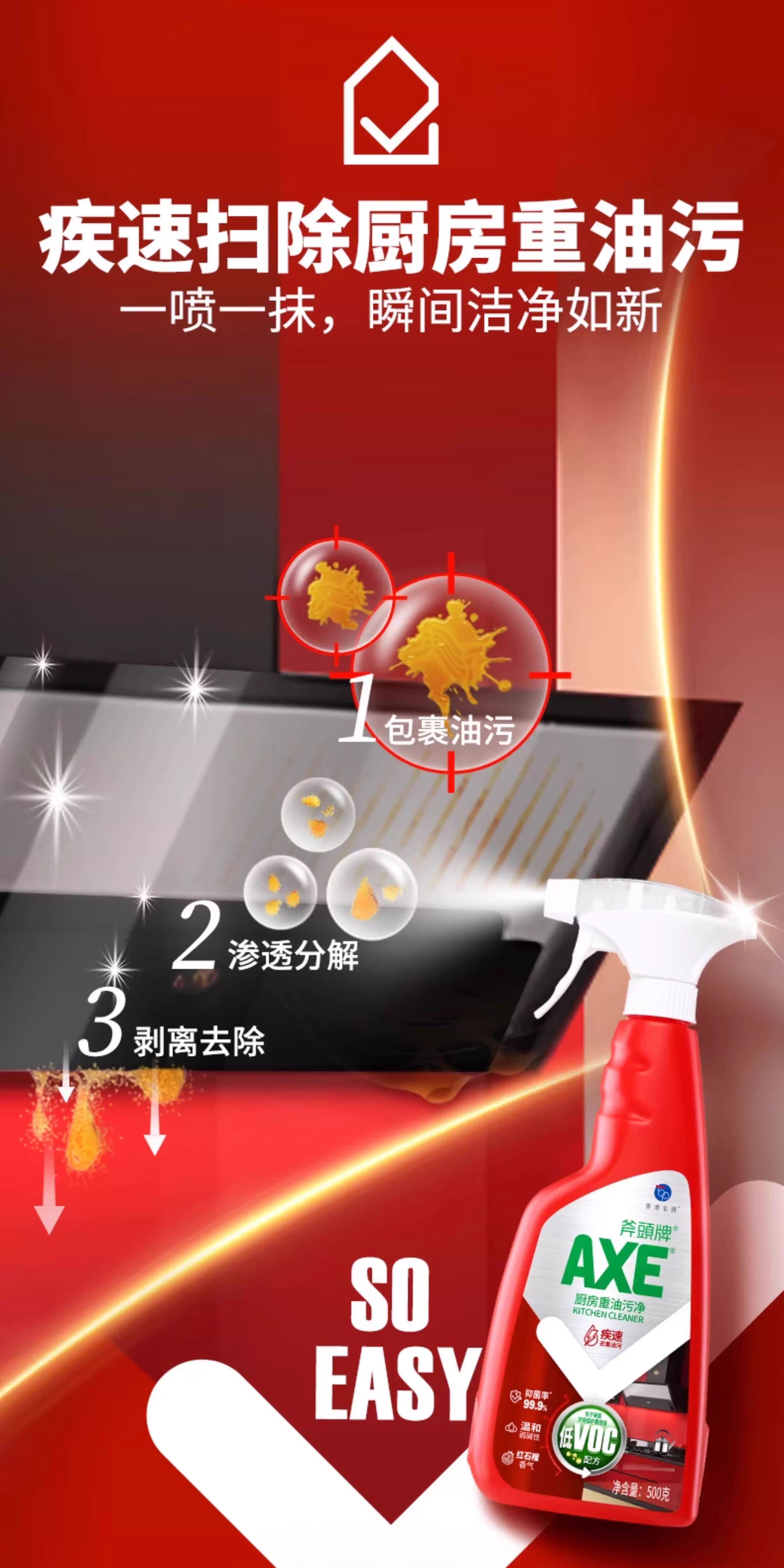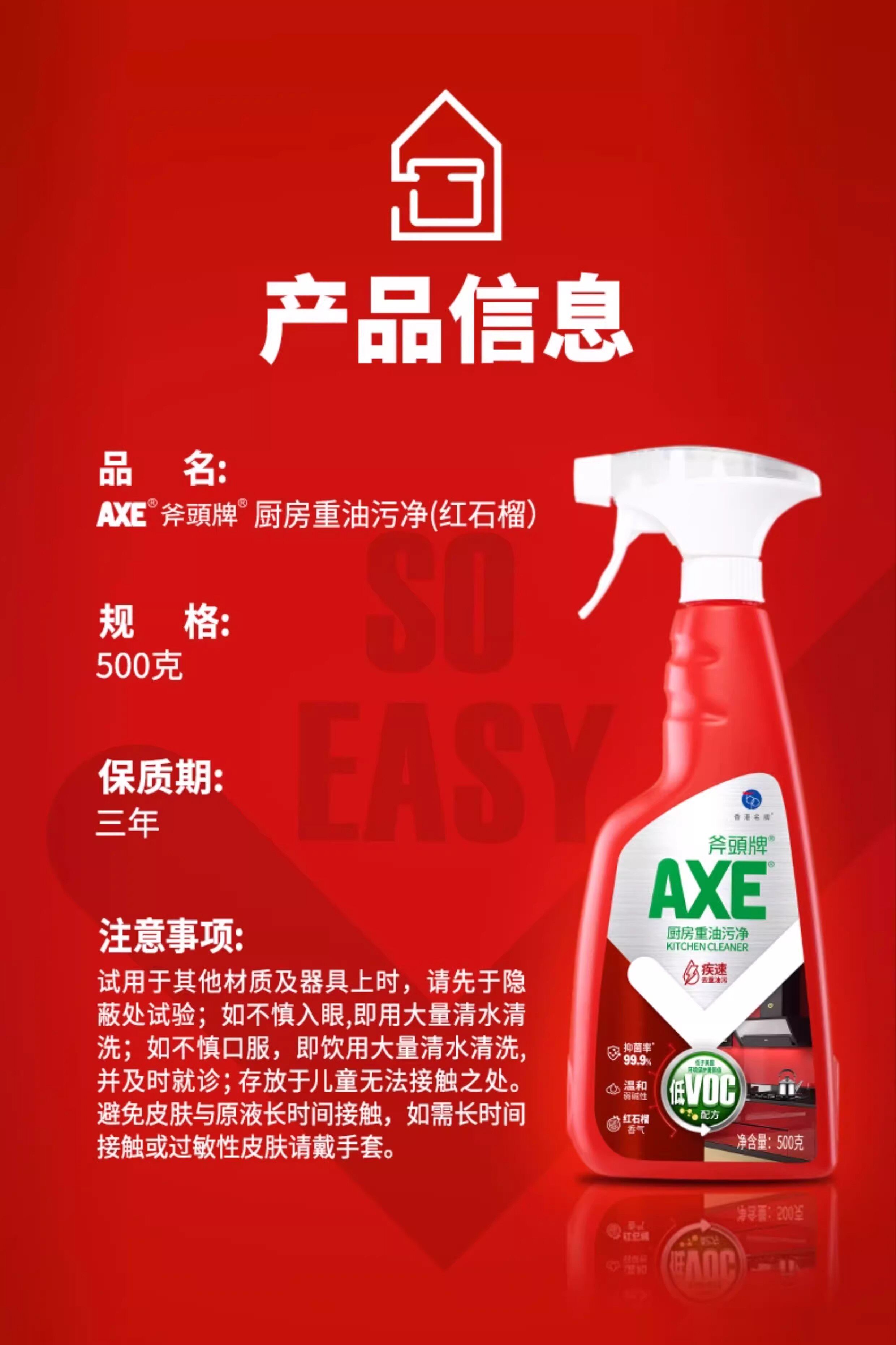 【秒杀】斧头AXE晶怡厨房重油污净(红石榴)500g*2(泵+补)