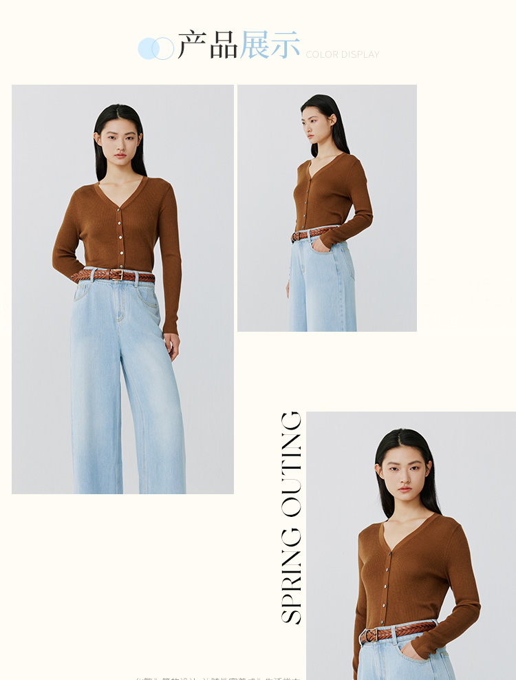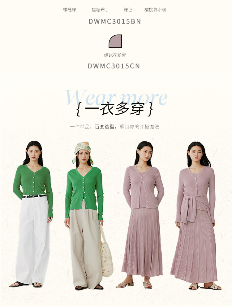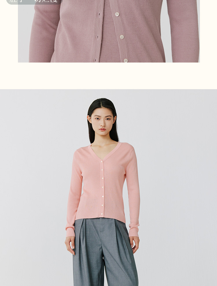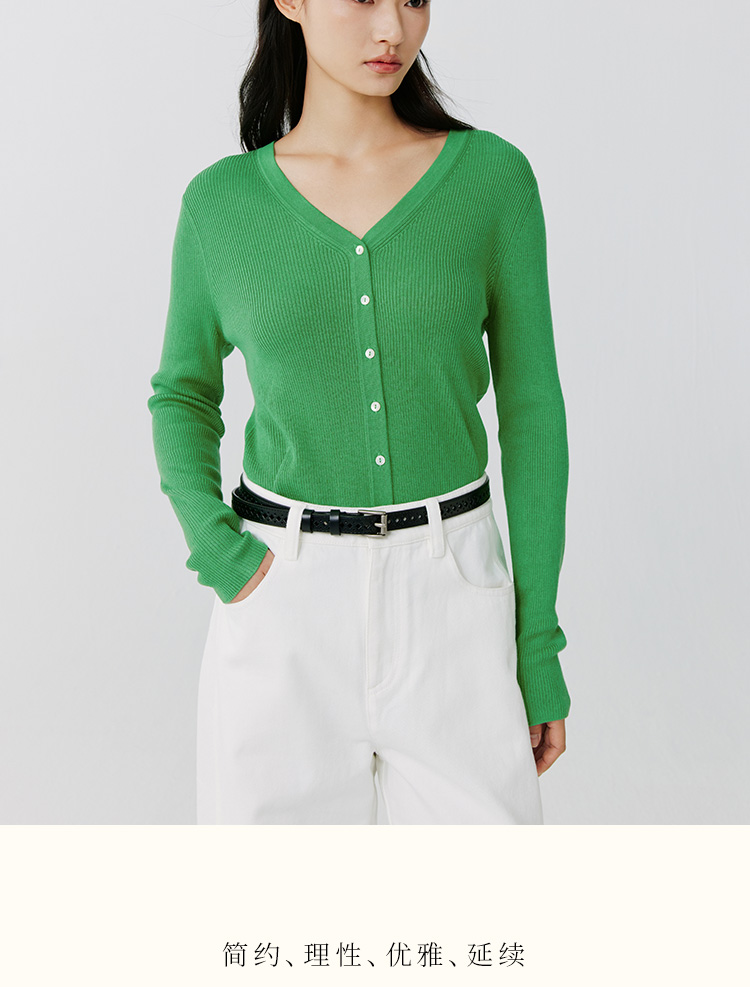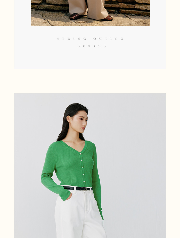 东黎 • 岛屿假日—生机勃勃 桑蚕丝山羊绒女士春夏抽条V开 3015