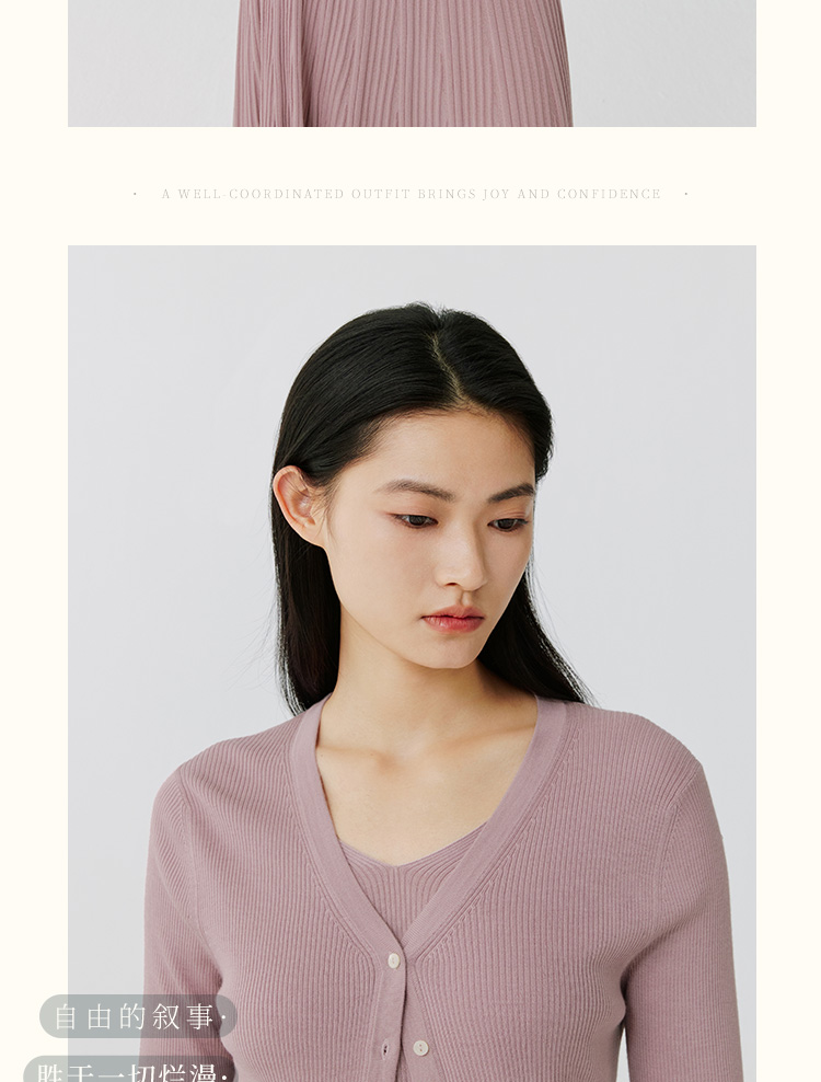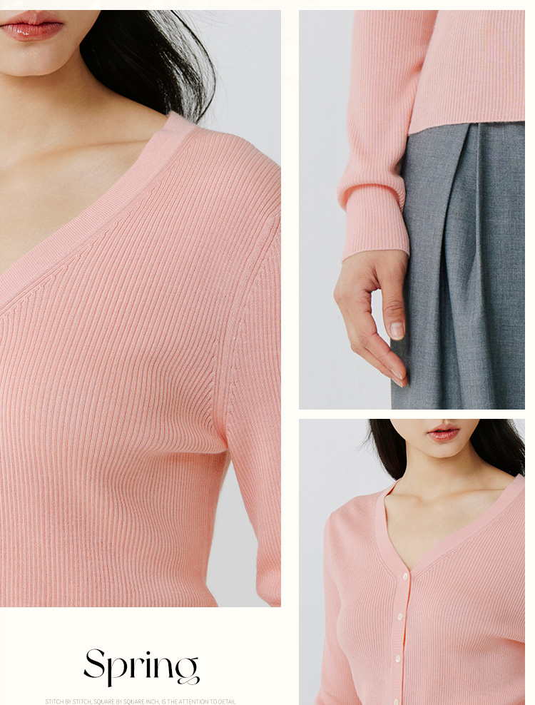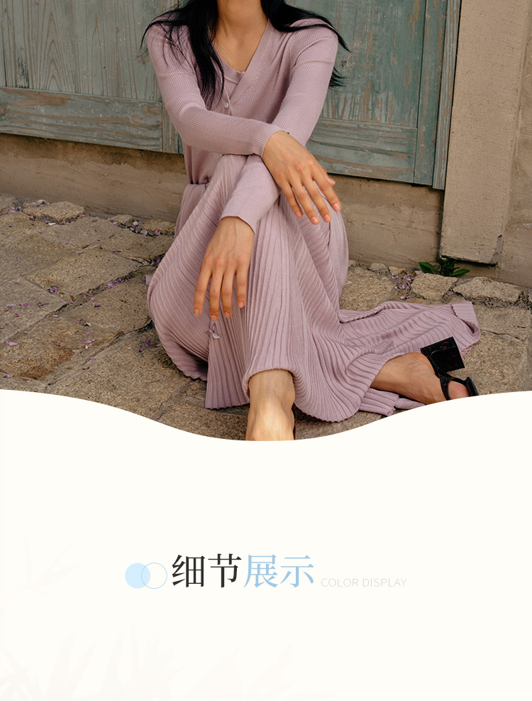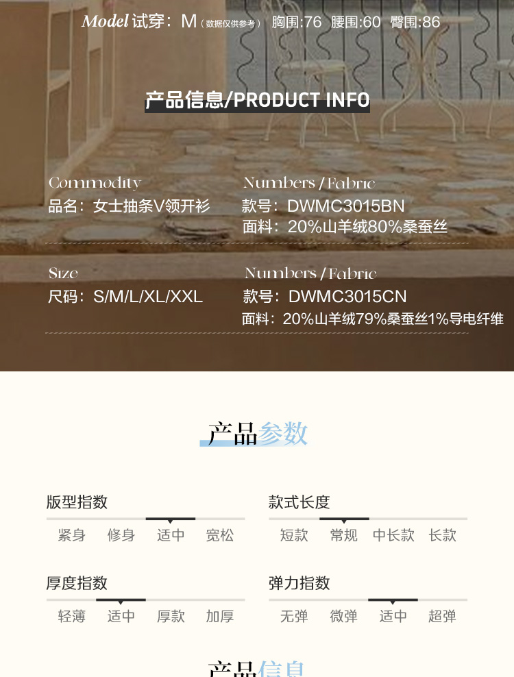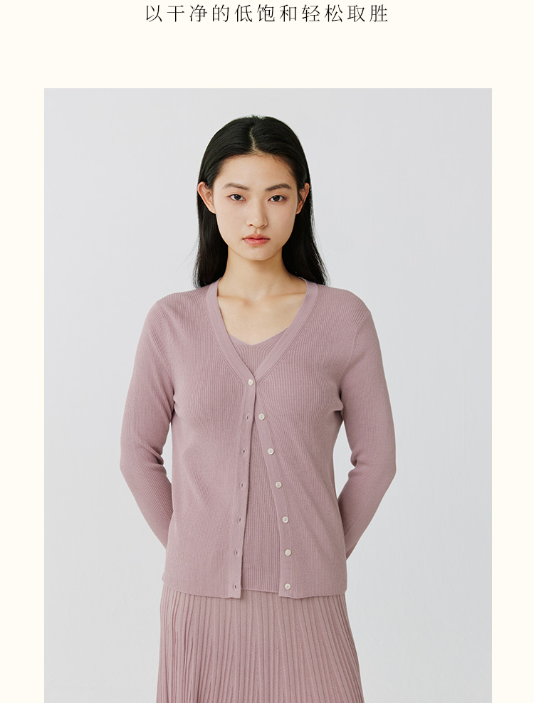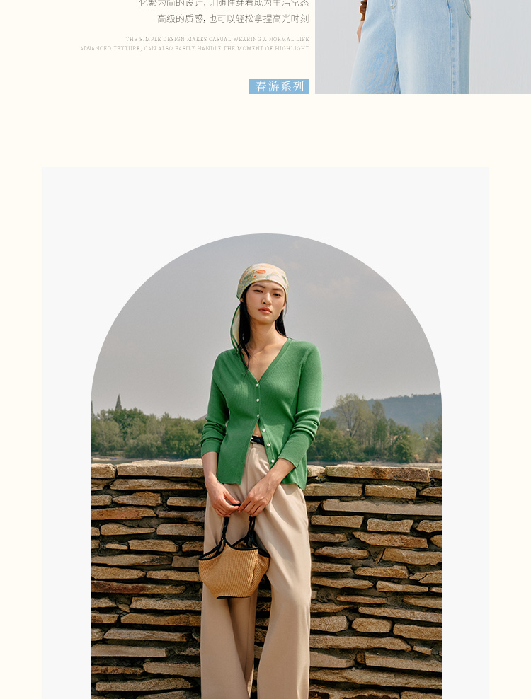 东黎 • 岛屿假日—生机勃勃 桑蚕丝山羊绒女士春夏抽条V开 3015