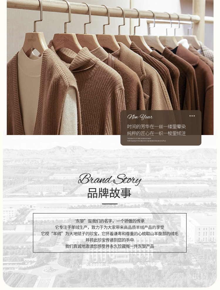 东黎羊绒是赤峰东荣集团自主品牌,自有牧场/羊绒制品全产业链优势,实现了羊绒从“牧场”到“商场”的华丽转变。
