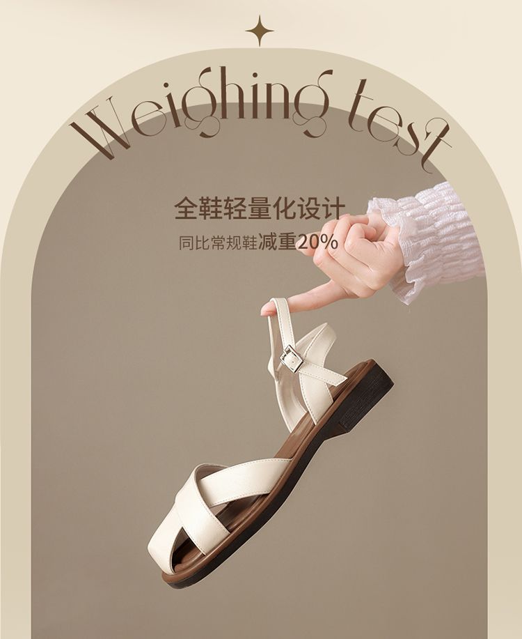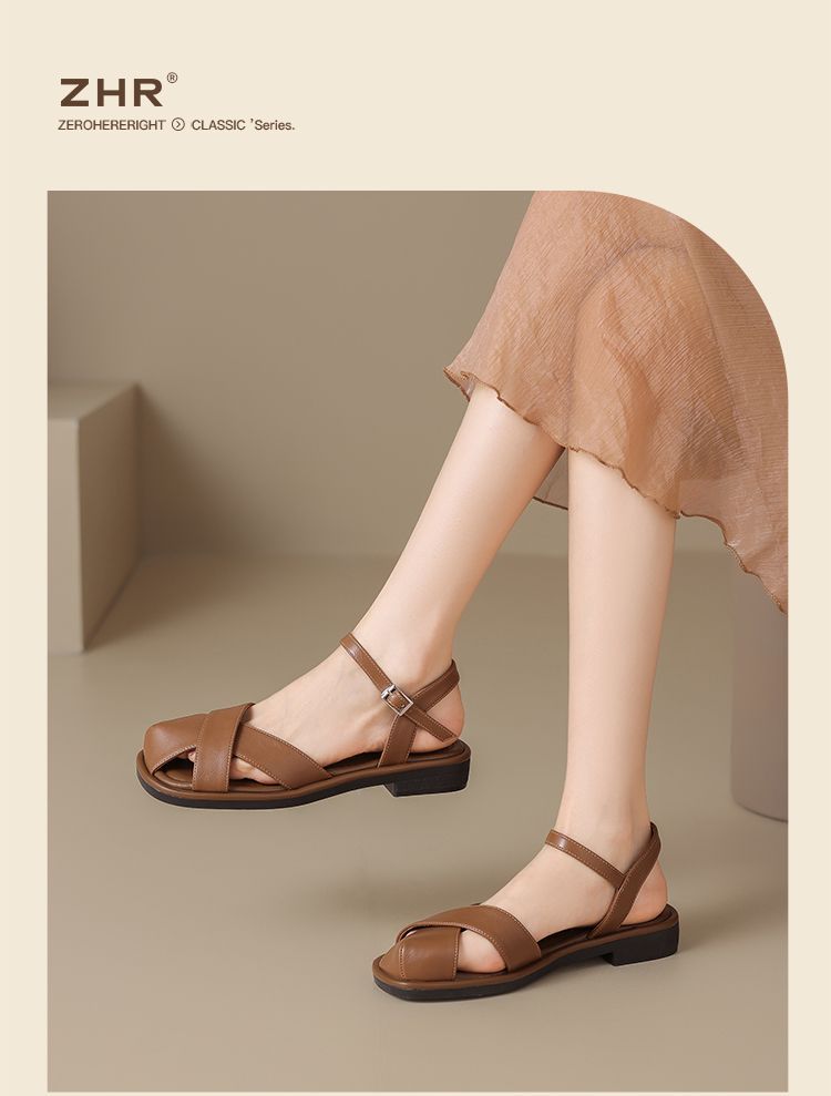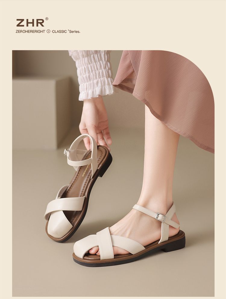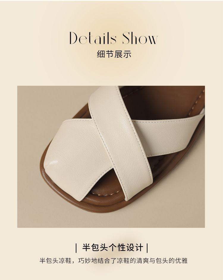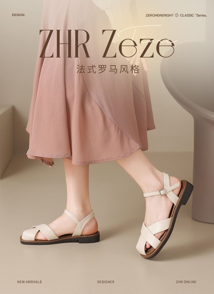 ZHR则则法式罗马风猪笼凉鞋女2025夏新款舒适透气平底半包头凉鞋