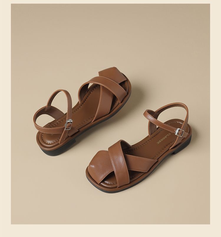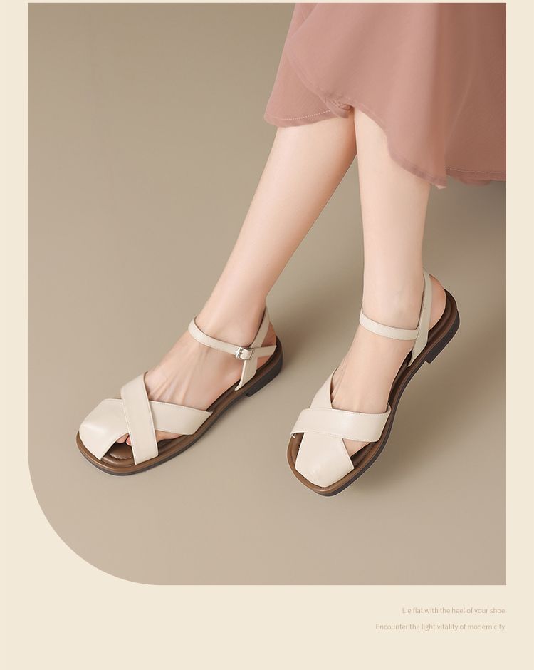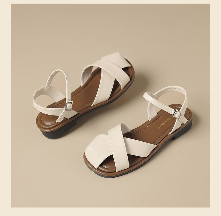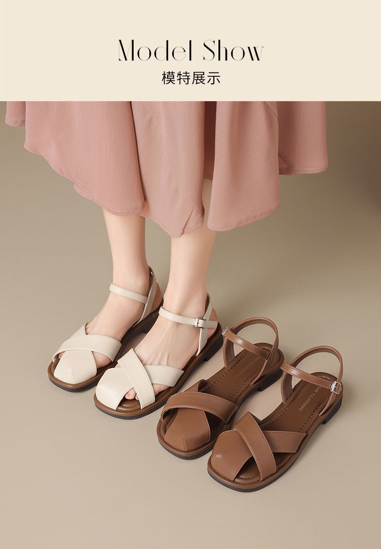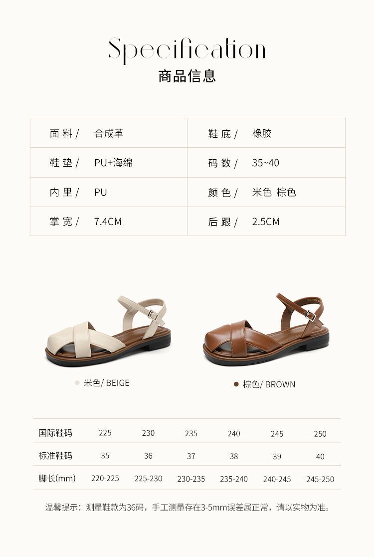 ZHR则则法式罗马风猪笼凉鞋女2025夏新款舒适透气平底半包头凉鞋