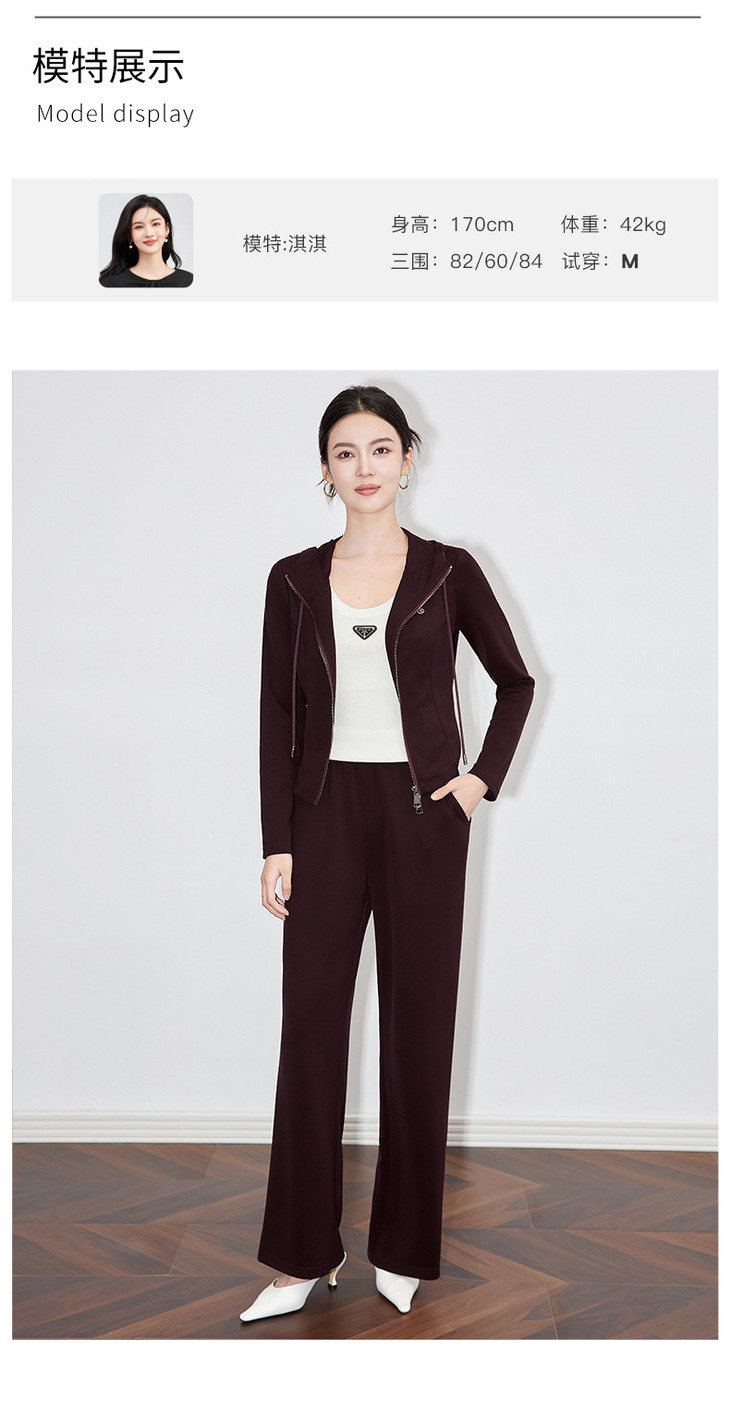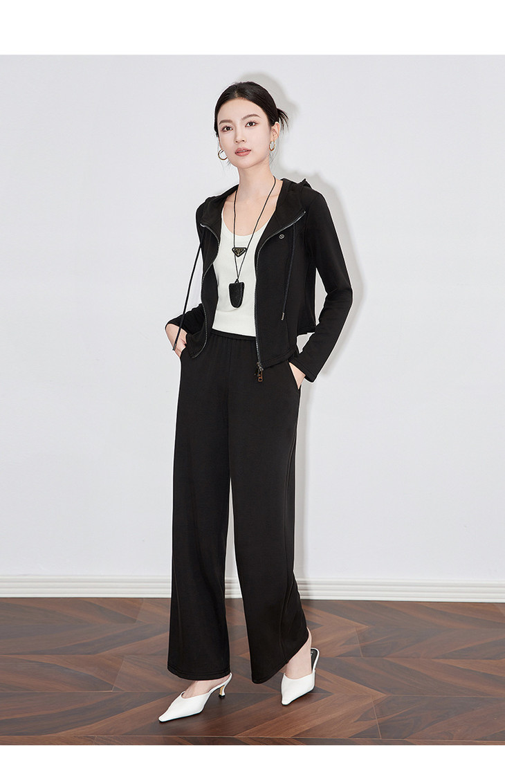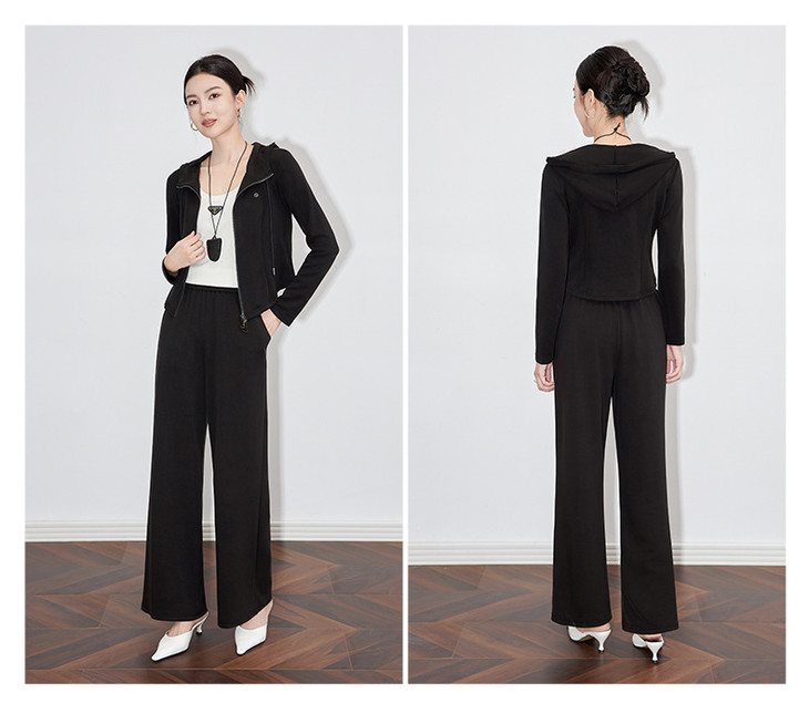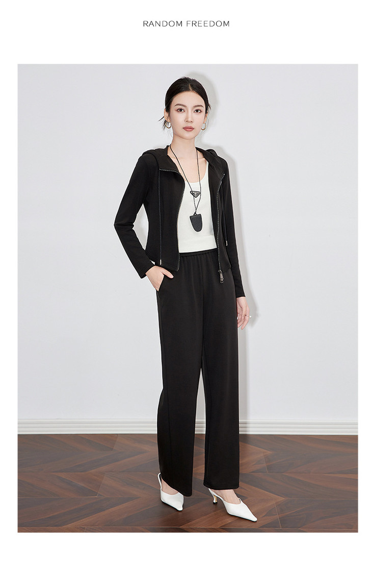 休闲运动套装时尚洋气开衫连帽拉链上衣两件套WLZD2430303
