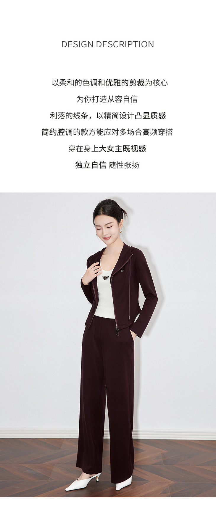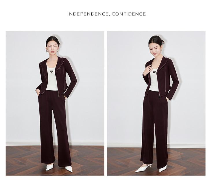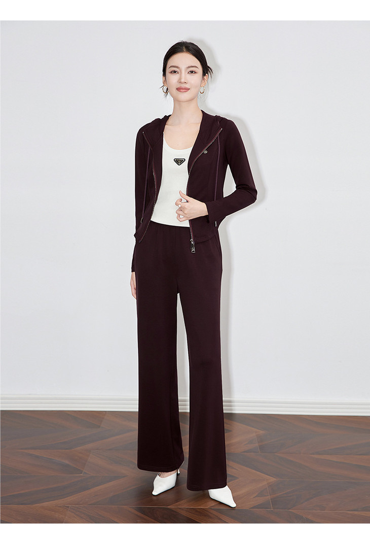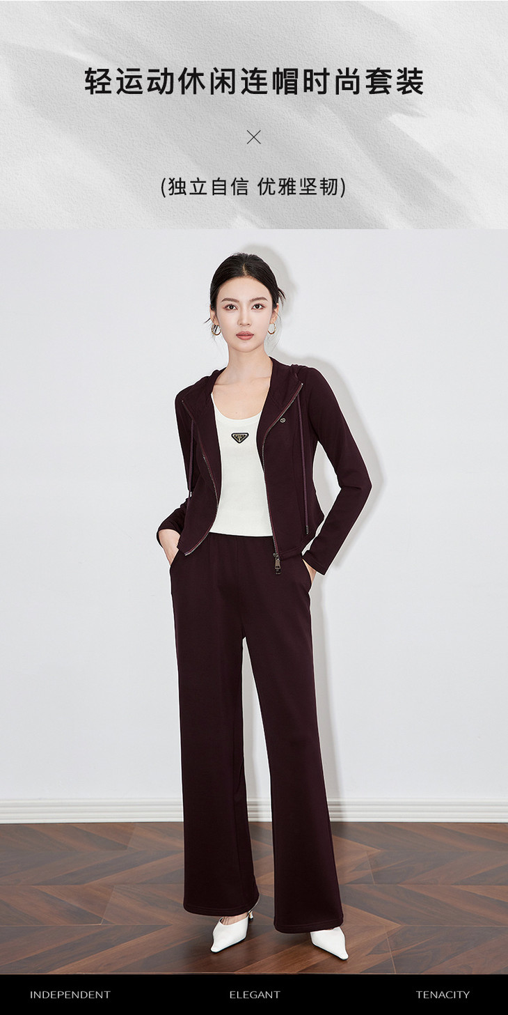 休闲运动套装时尚洋气开衫连帽拉链上衣两件套WLZD2430303