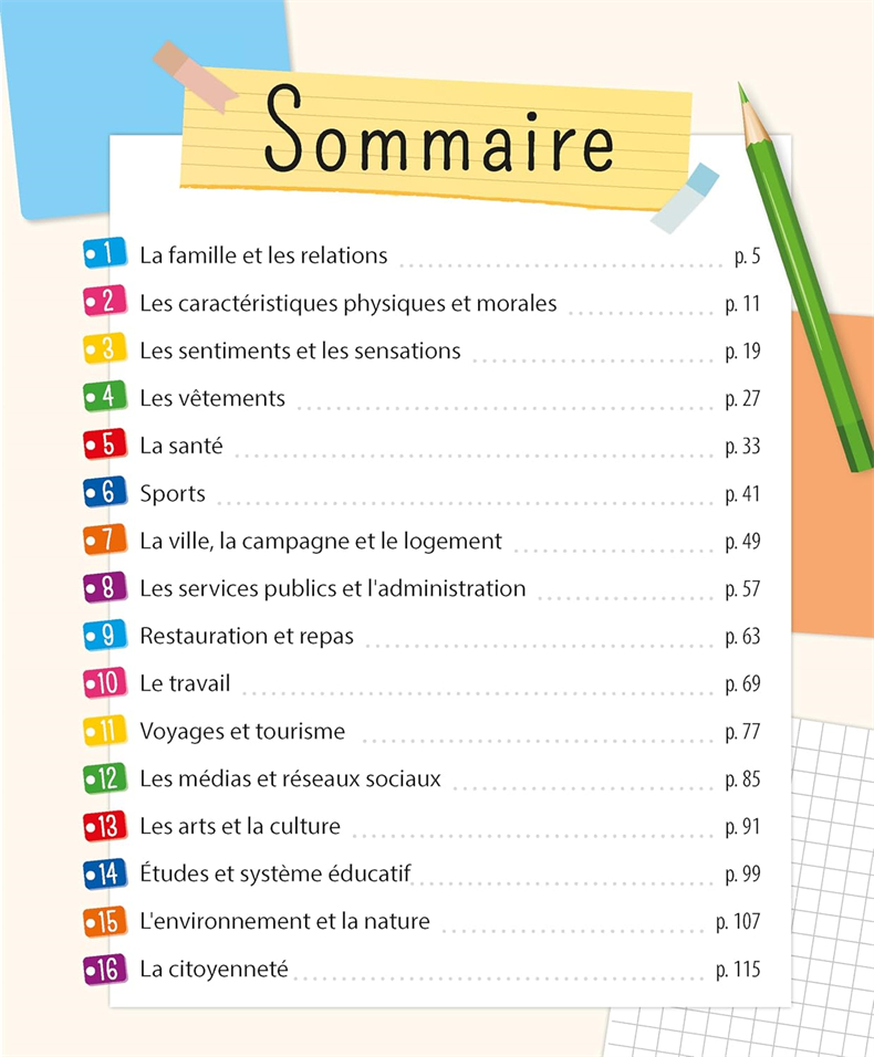 - Revoir le lexique de 16 thématiques pour chaque niveau.