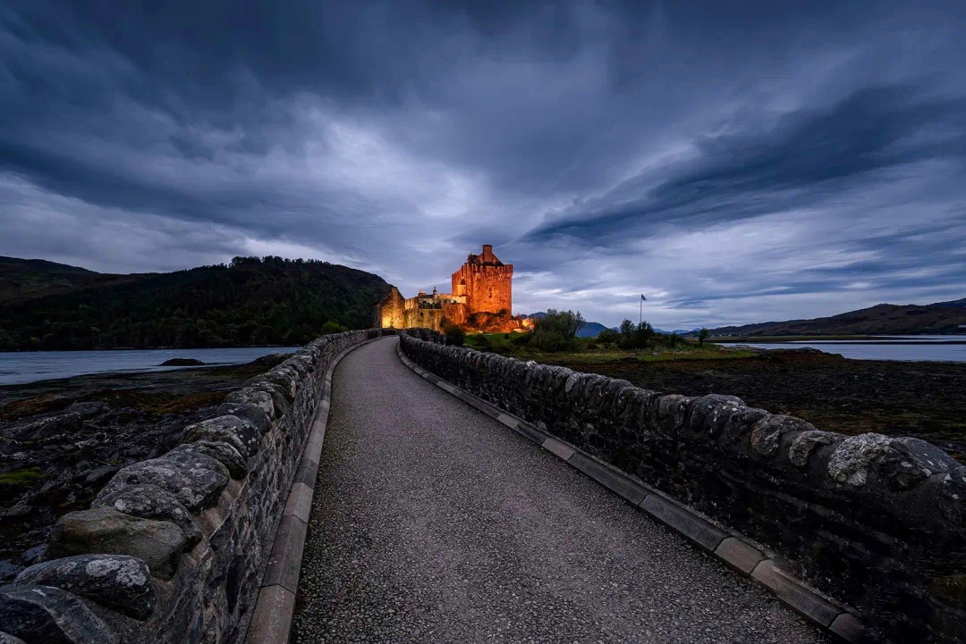 早晨可以自由扫街拍摄市区晨景。后前往天空岛,沿途欣赏苏格兰高地旷野的壮美景色。途经格伦科峡谷,可欣赏三姐妹峰,库帕尔河瀑布、格伦科黑岩小屋等。继而前往天空岛附近的-爱莲朵娜城堡(Eilean Donan Castle),被誉为苏格兰最上镜的城堡之一,已经有700多年的历史,充满了神秘浪漫的气息。后入住酒店休息。