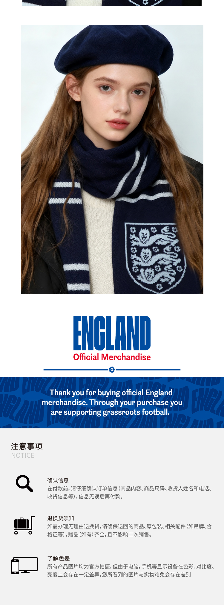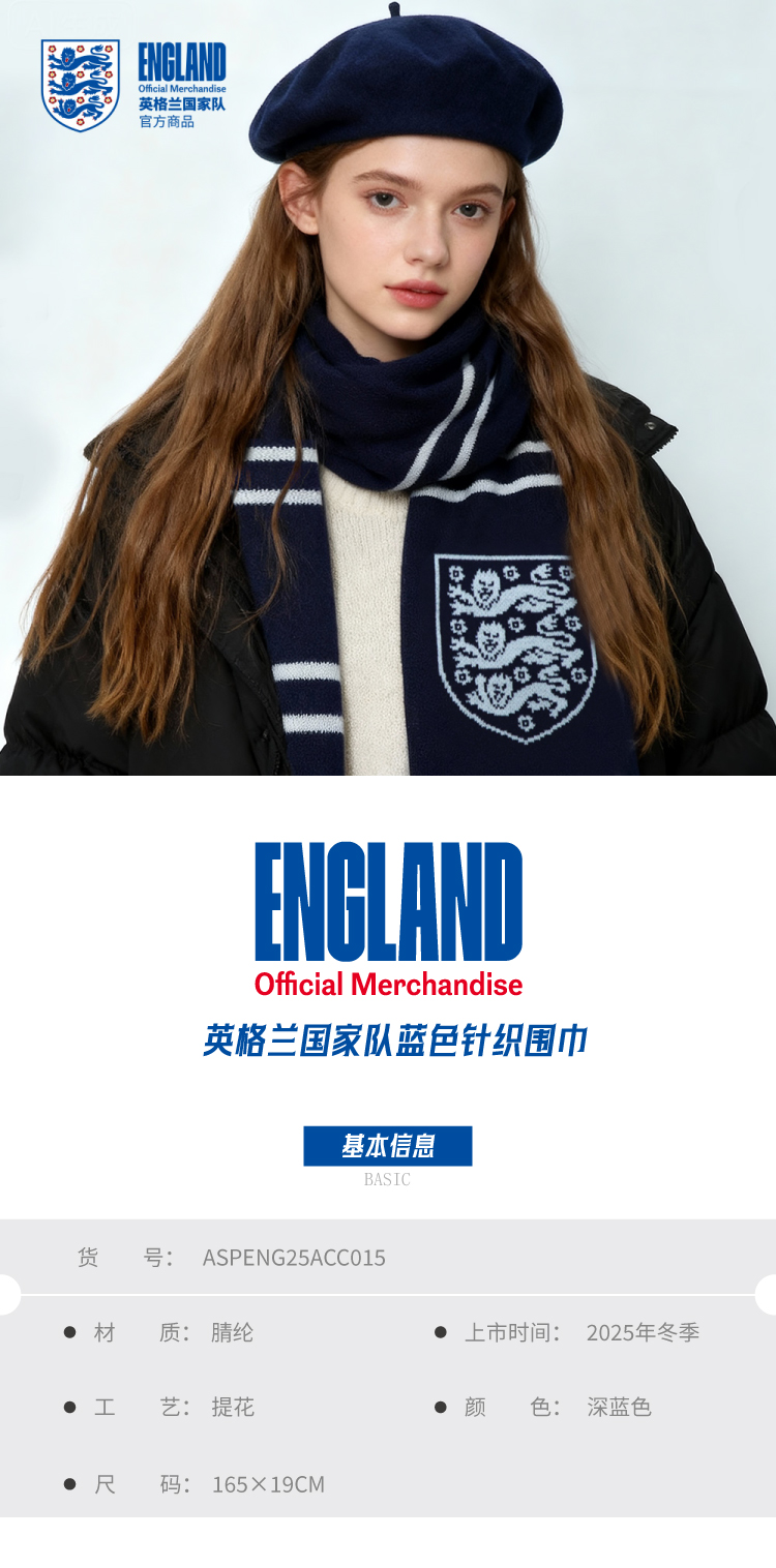 【官方正版】英格兰国家队 | 秋冬蓝色针织围巾保暖周边英伦