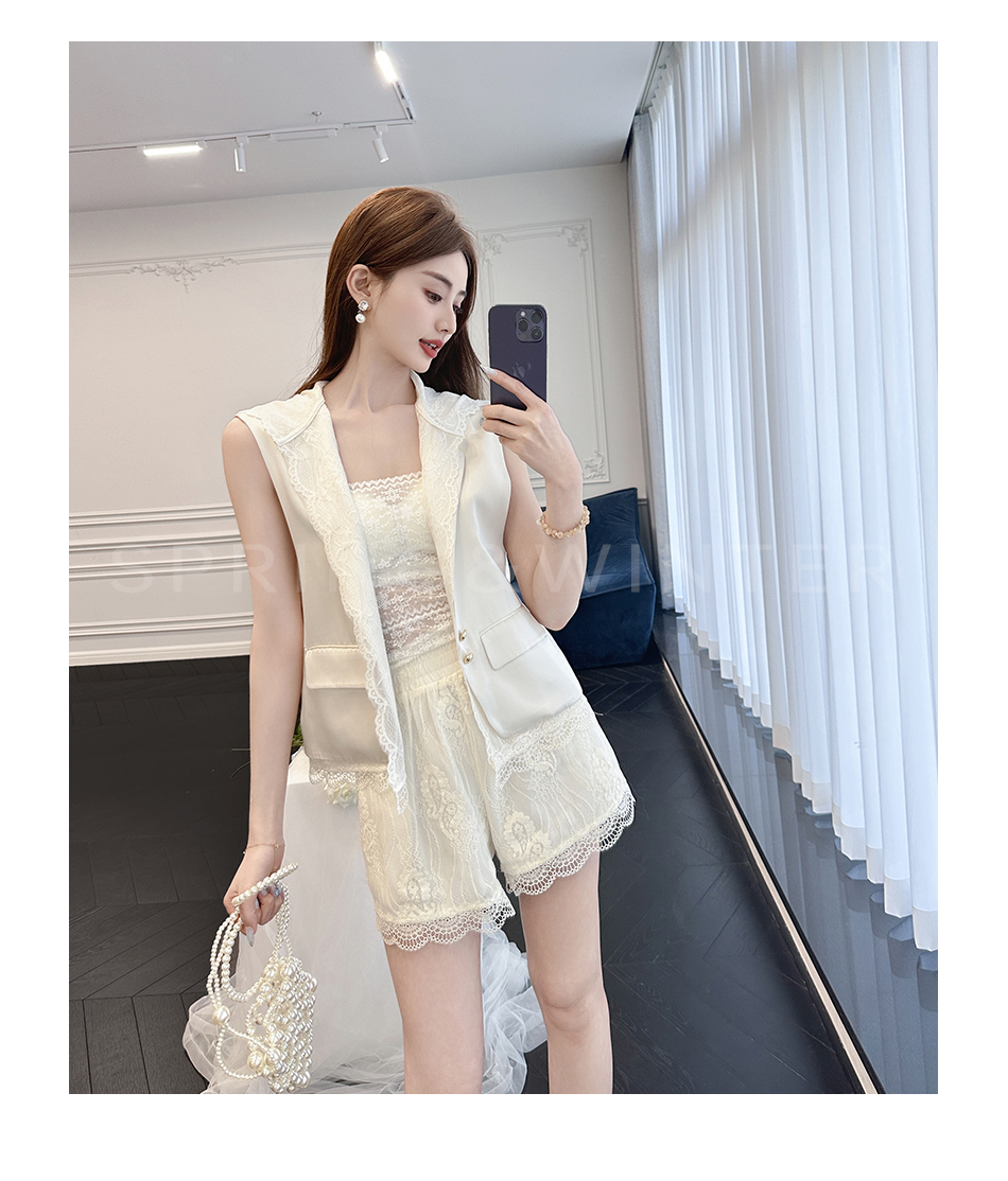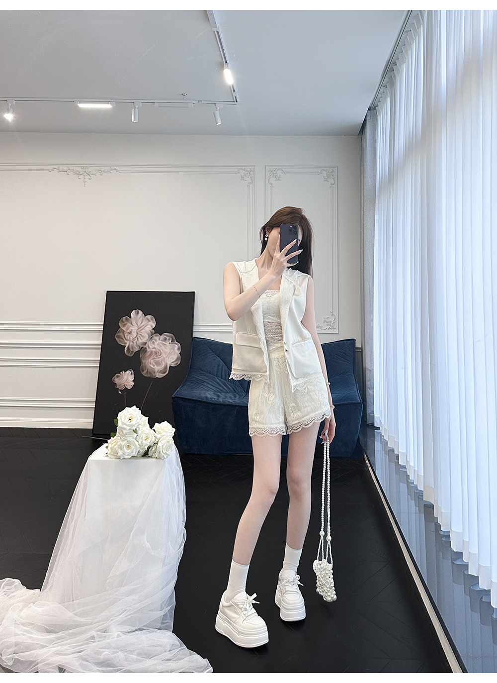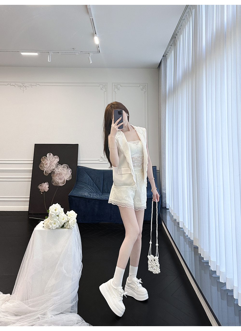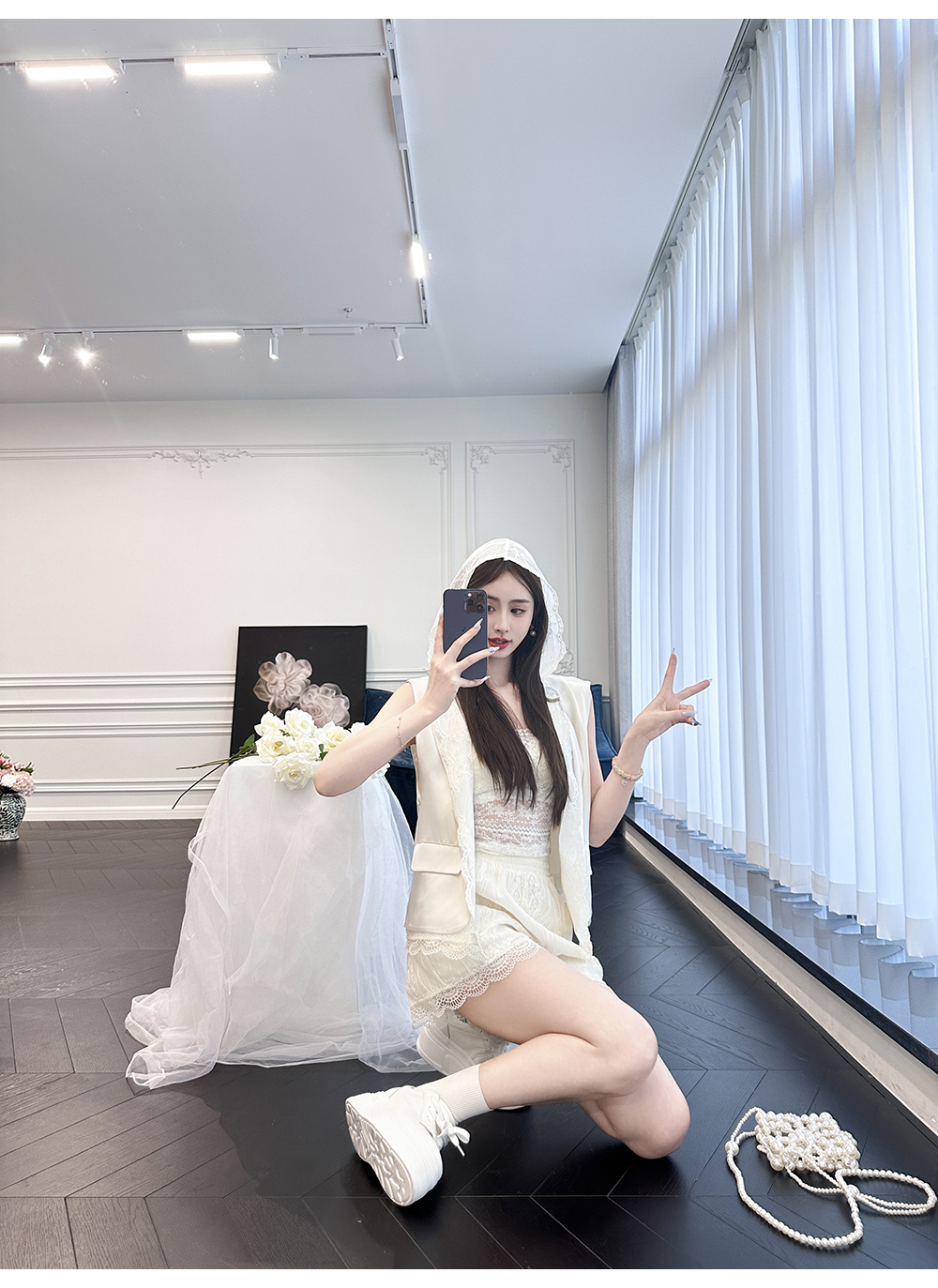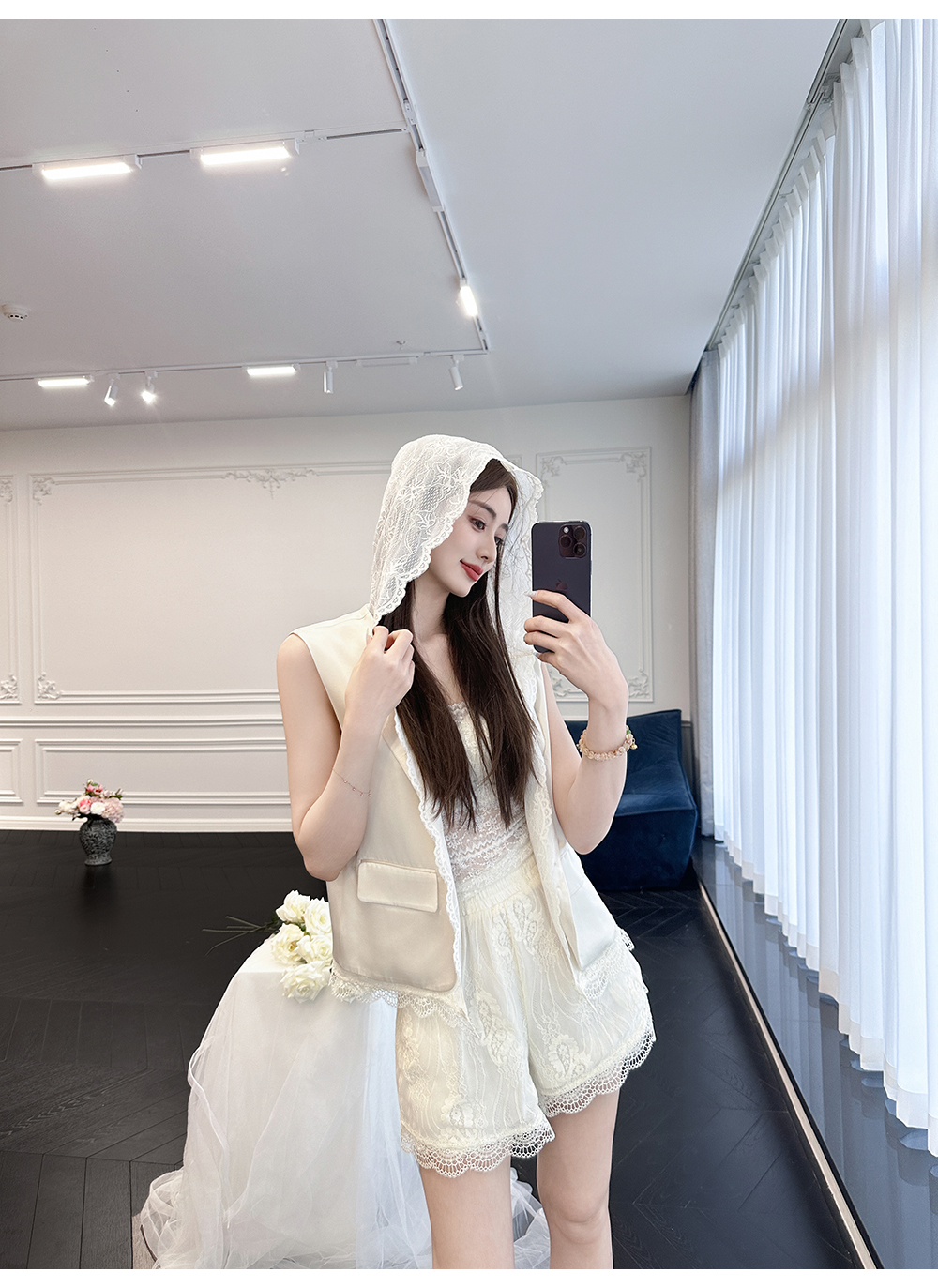 BeQueenStory【梦境回廊】时髦气质设计感拼接蕾丝假两件连帽马甲