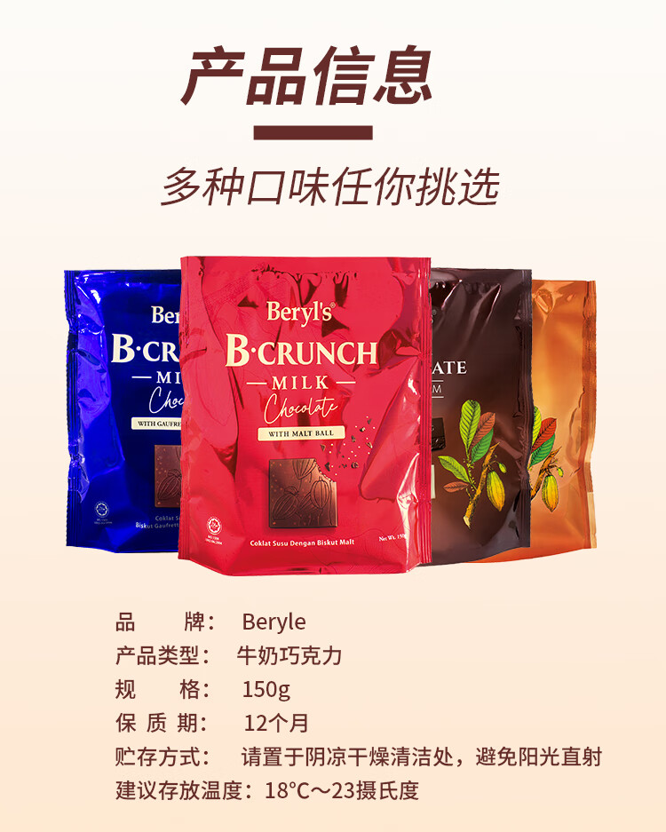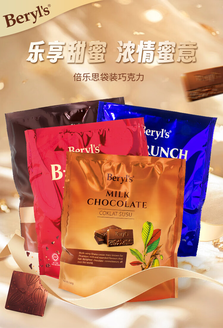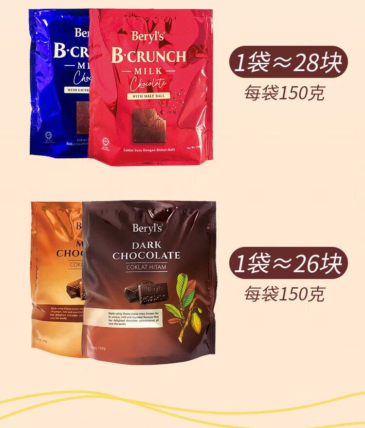 马来西亚倍乐思袋装牛奶巧克力系列150g 精巧块装可可醇厚独立包装 045399/045400