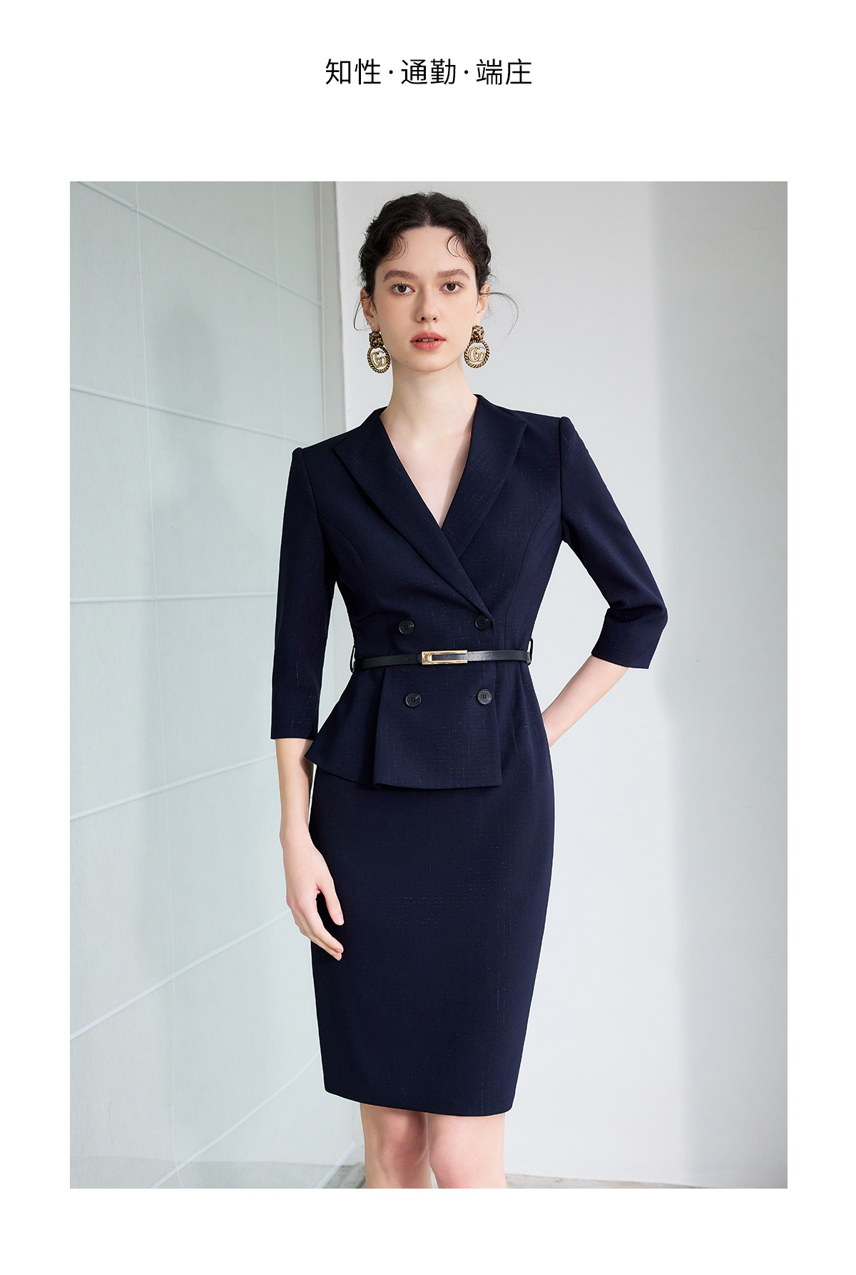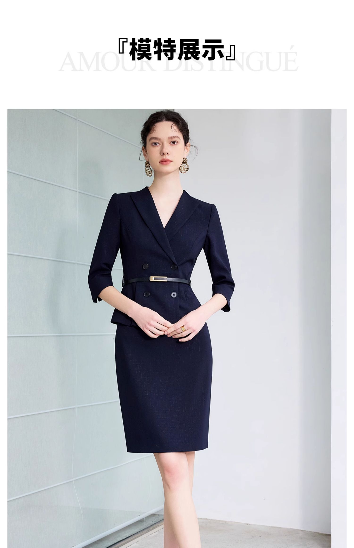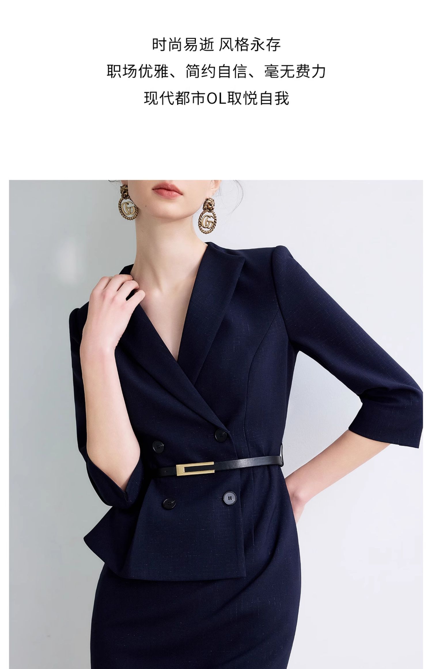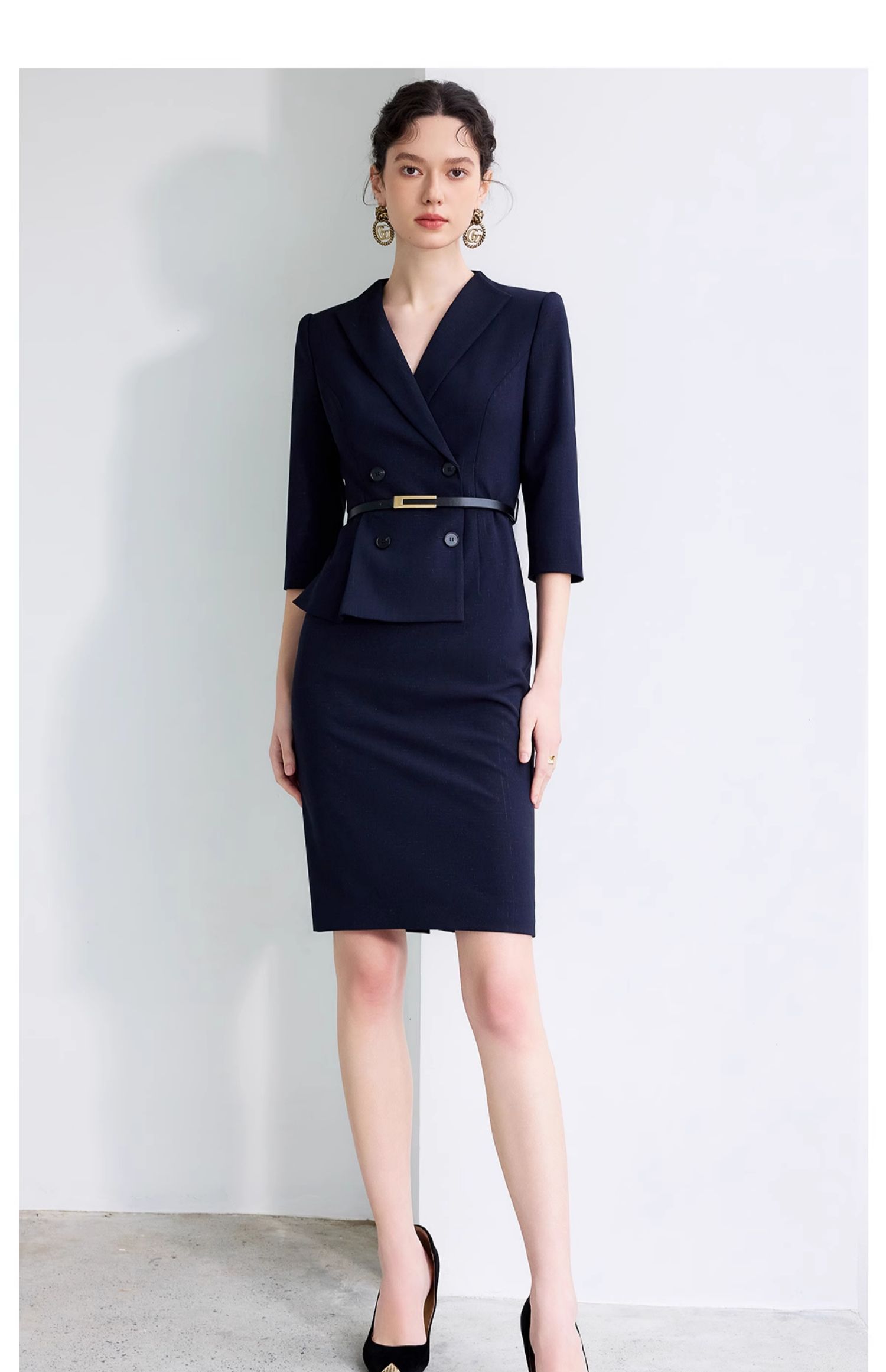 IWY/藏青色职业装西装七分袖连衣裙女新款春装气质女神范高端工作服Q1268