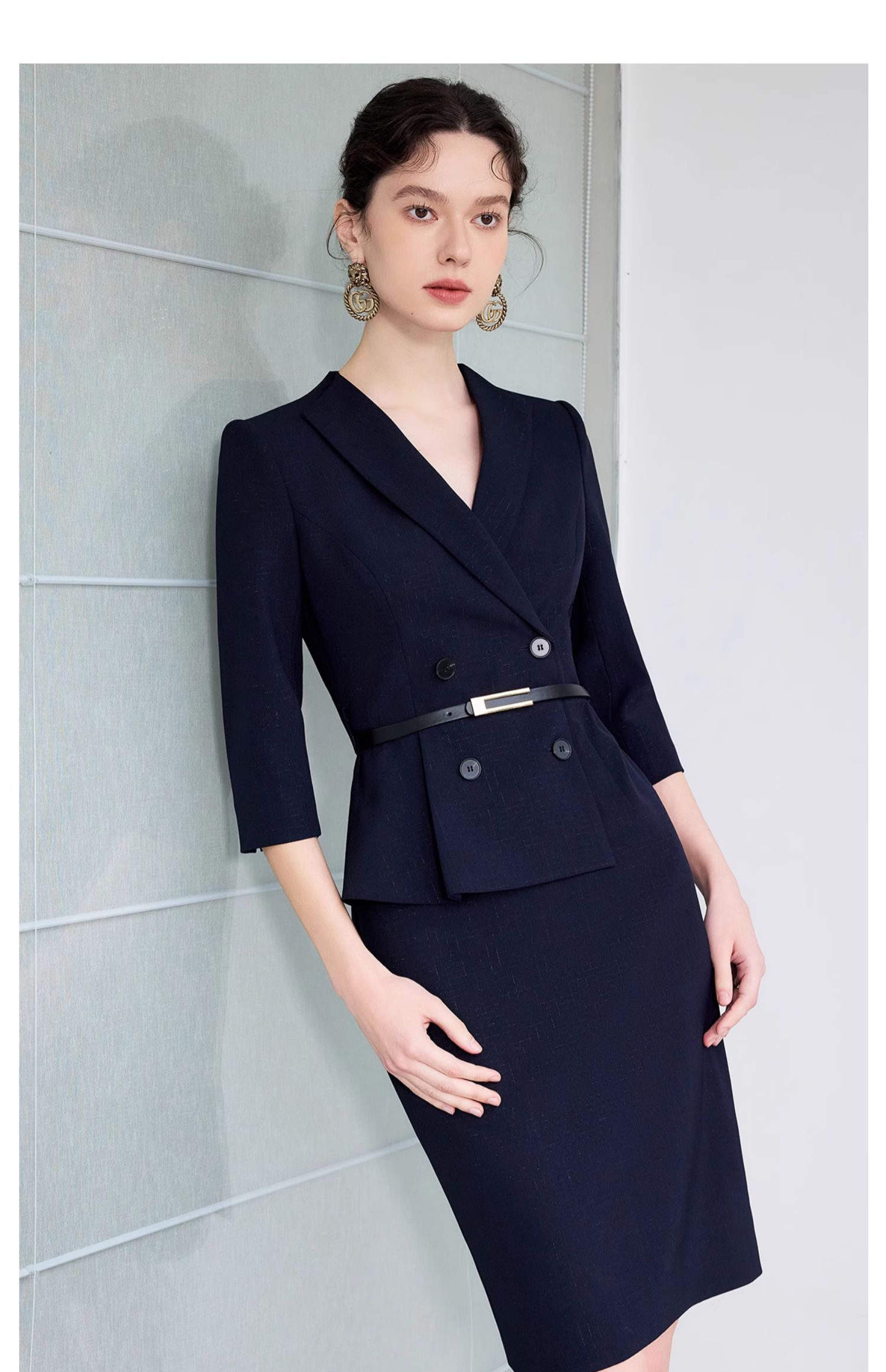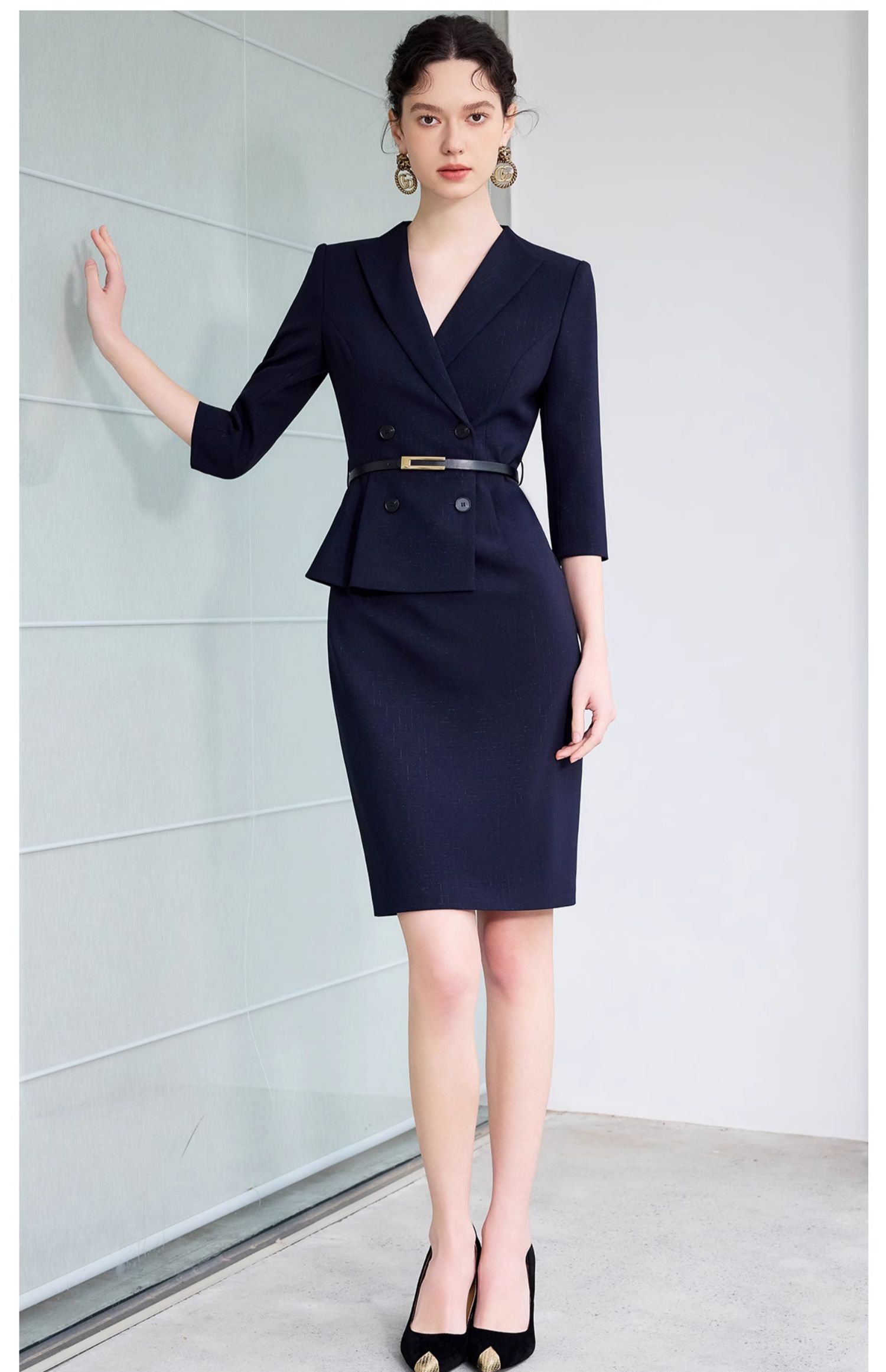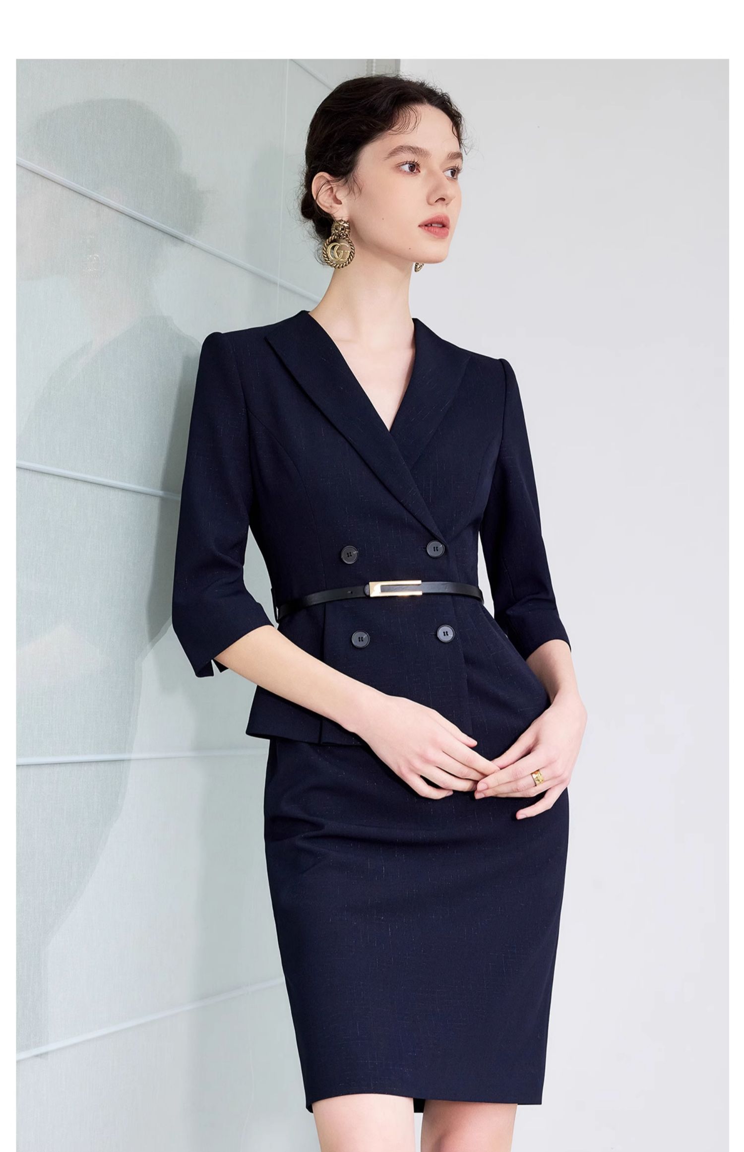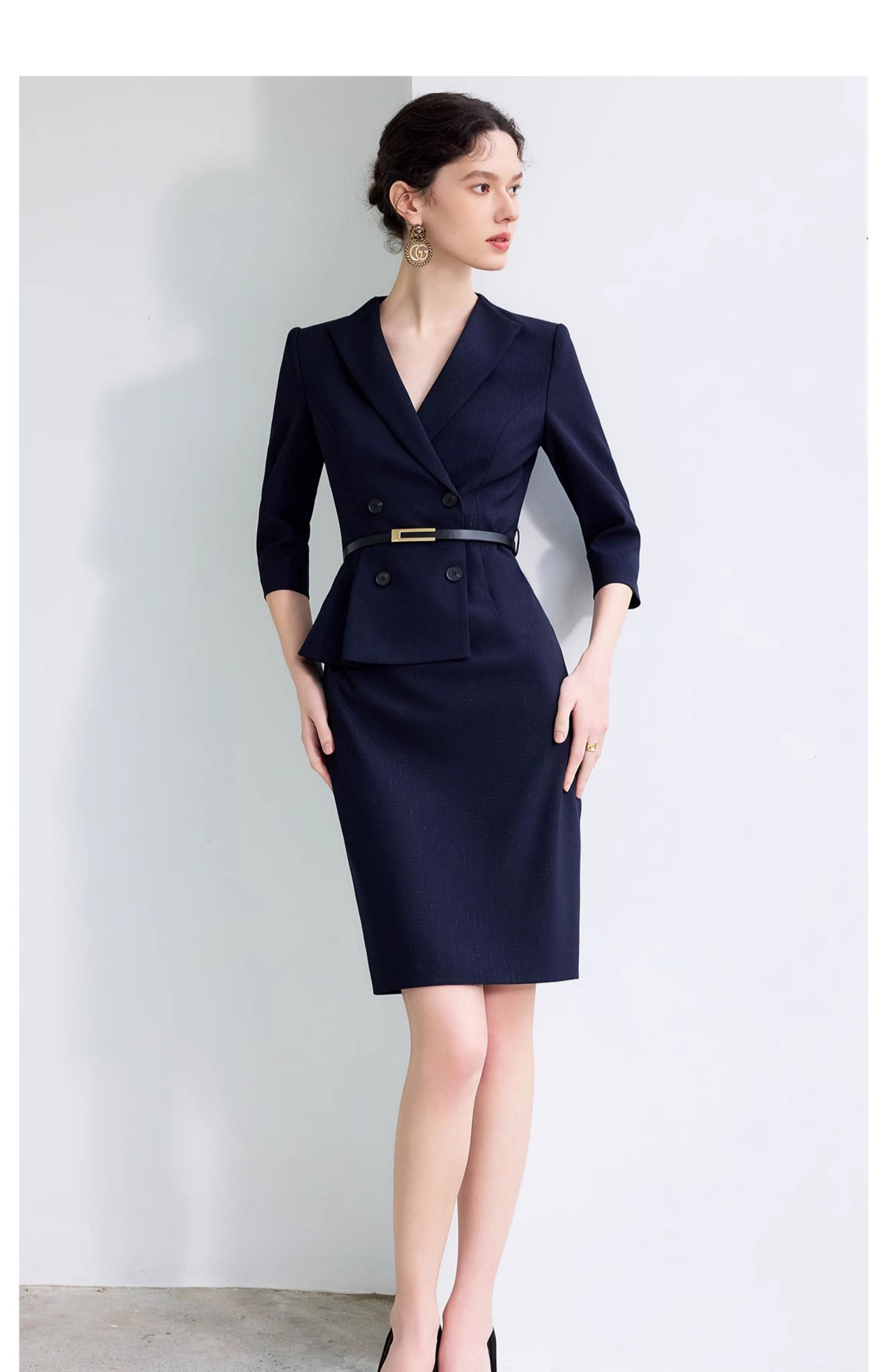 IWY/藏青色职业装西装七分袖连衣裙女新款春装气质女神范高端工作服Q1268