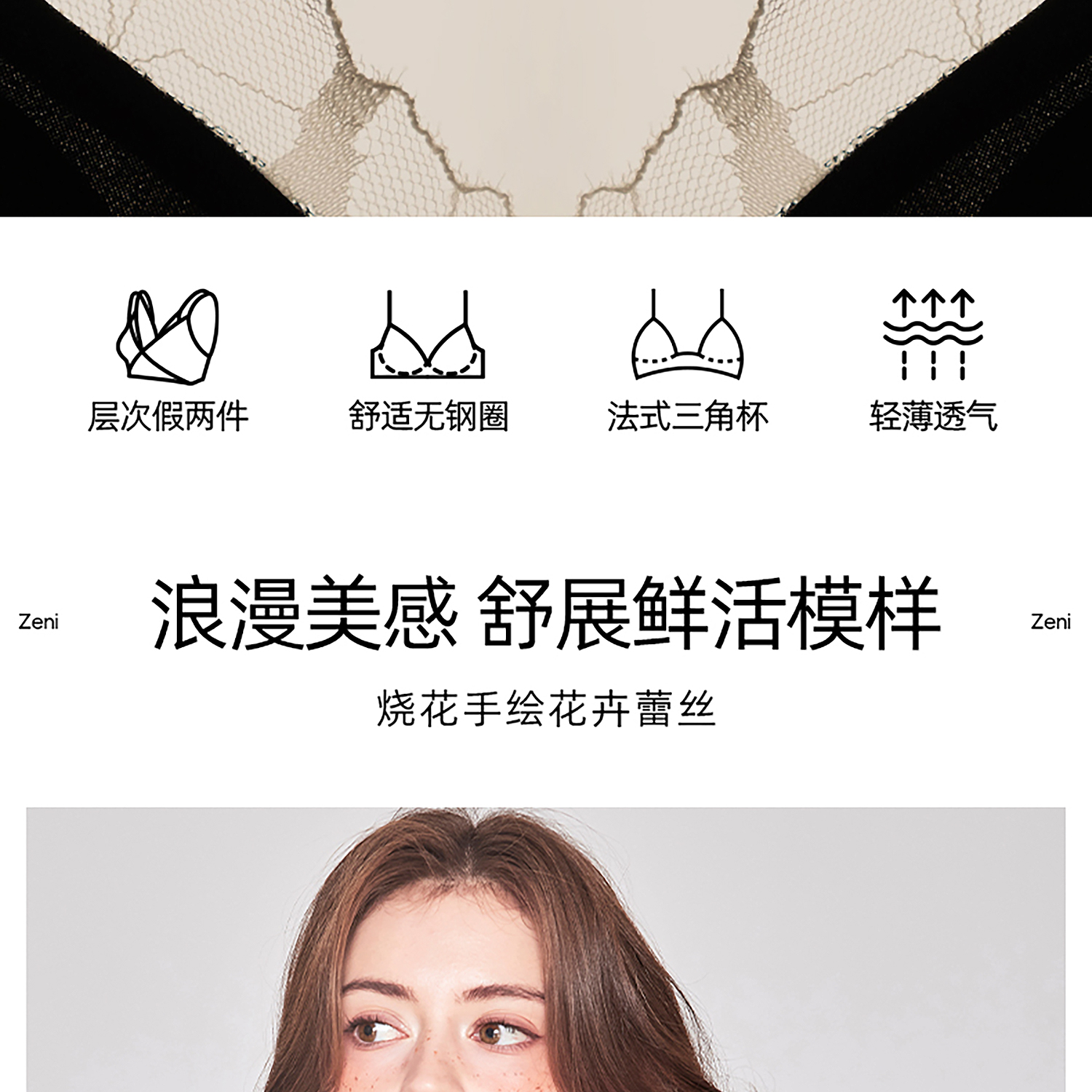 好奇蜜斯法式内衣女无钢圈三角杯可外穿文胸罩套装25夏薄小胸纯欲 泽妮