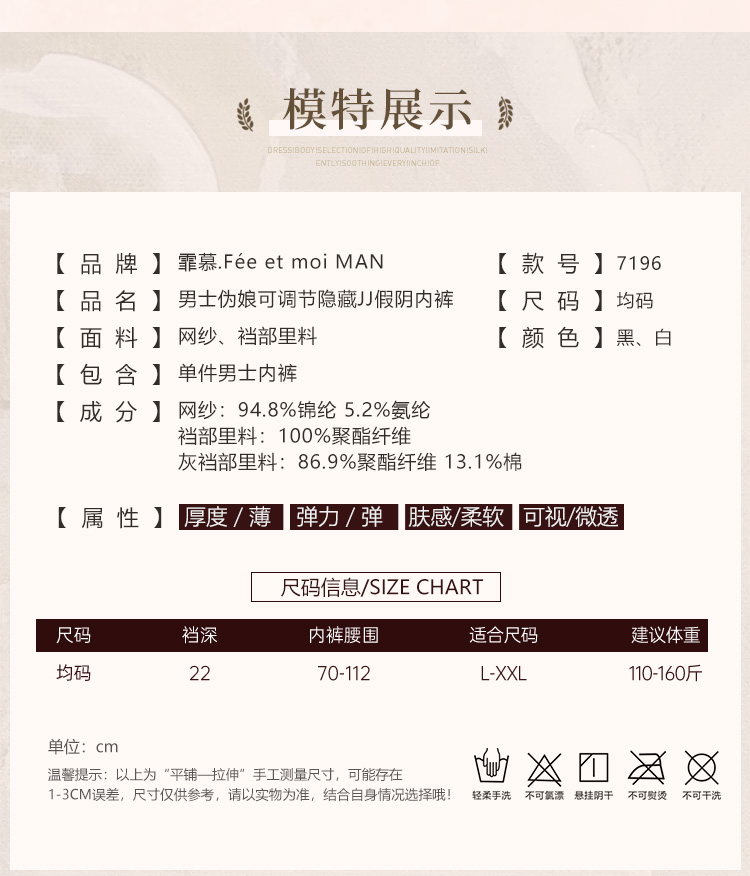 霏慕 男士伪娘可调节隐藏JJ假阴内裤7196 情趣内衣舒适透气