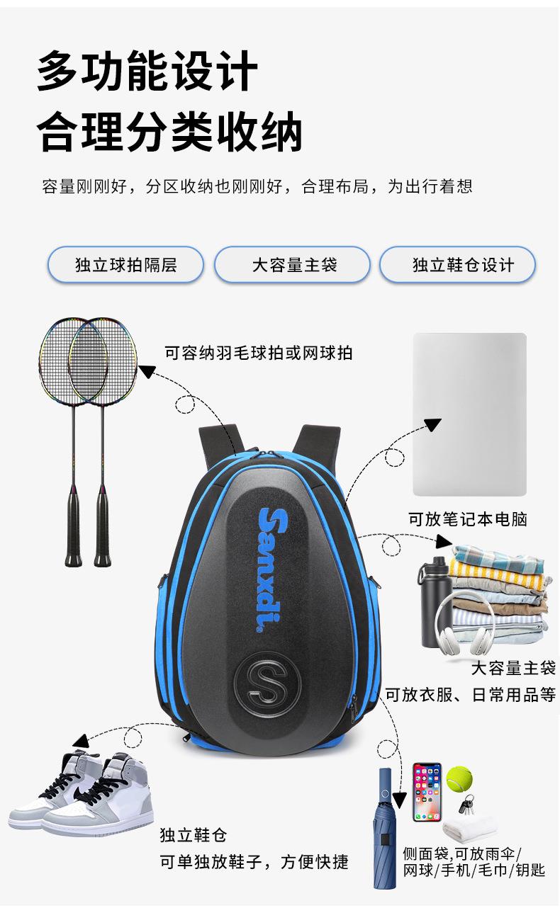 SANXDI网球拍包硬壳隔热仓羽毛球双肩包男女款大容量鞋仓运动背包