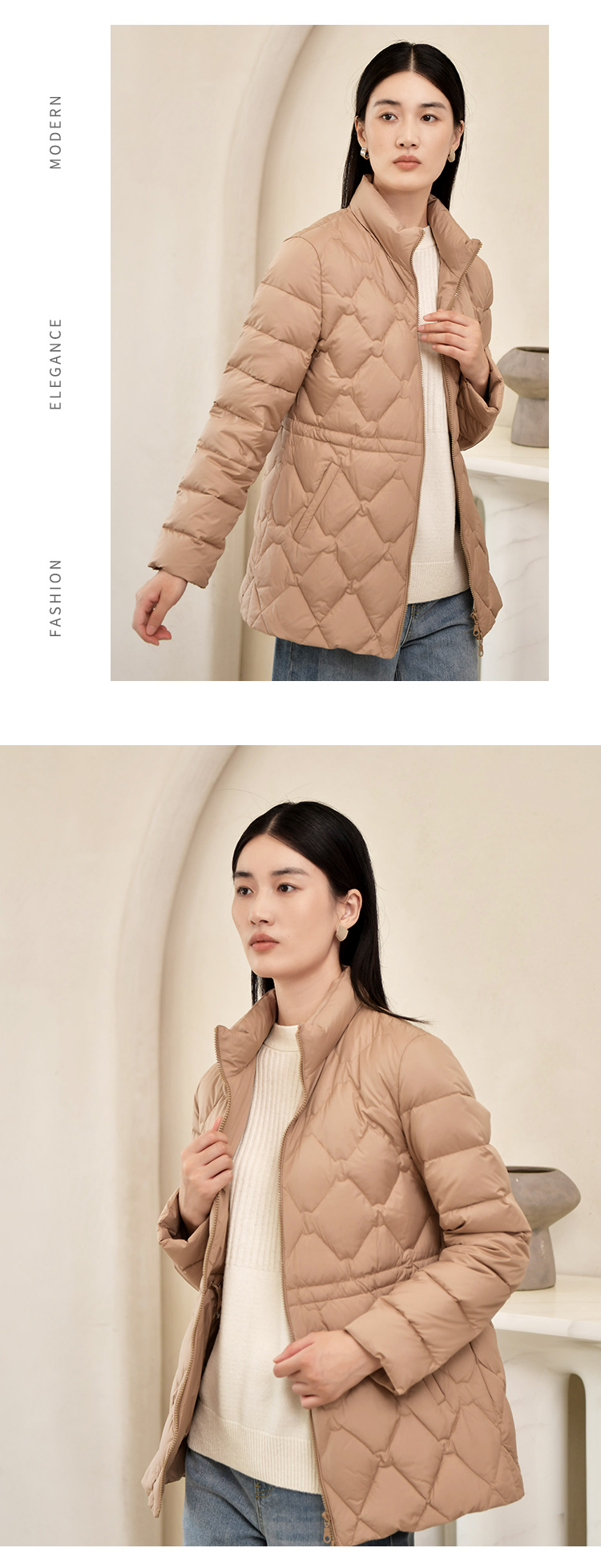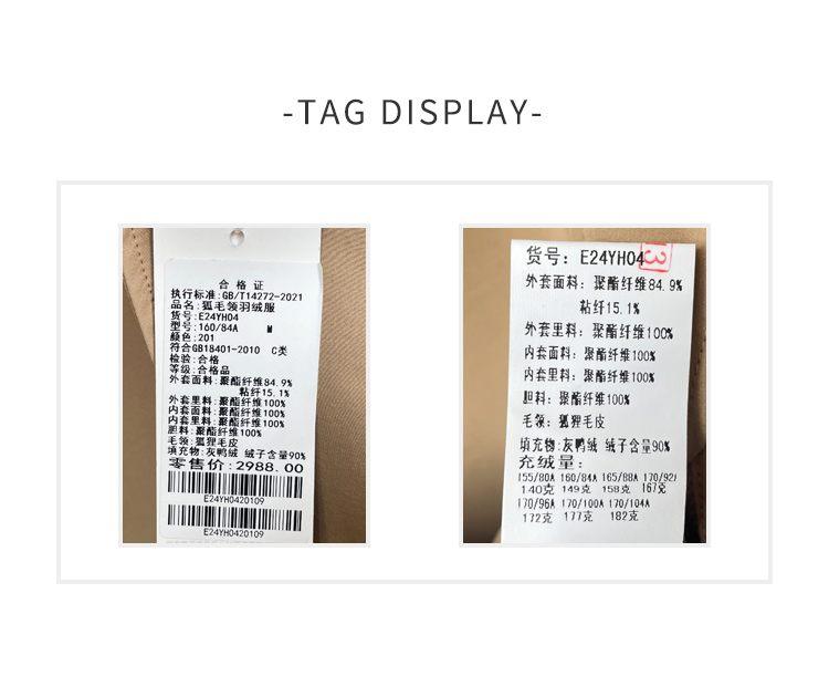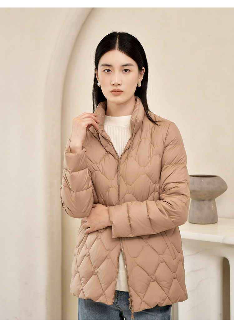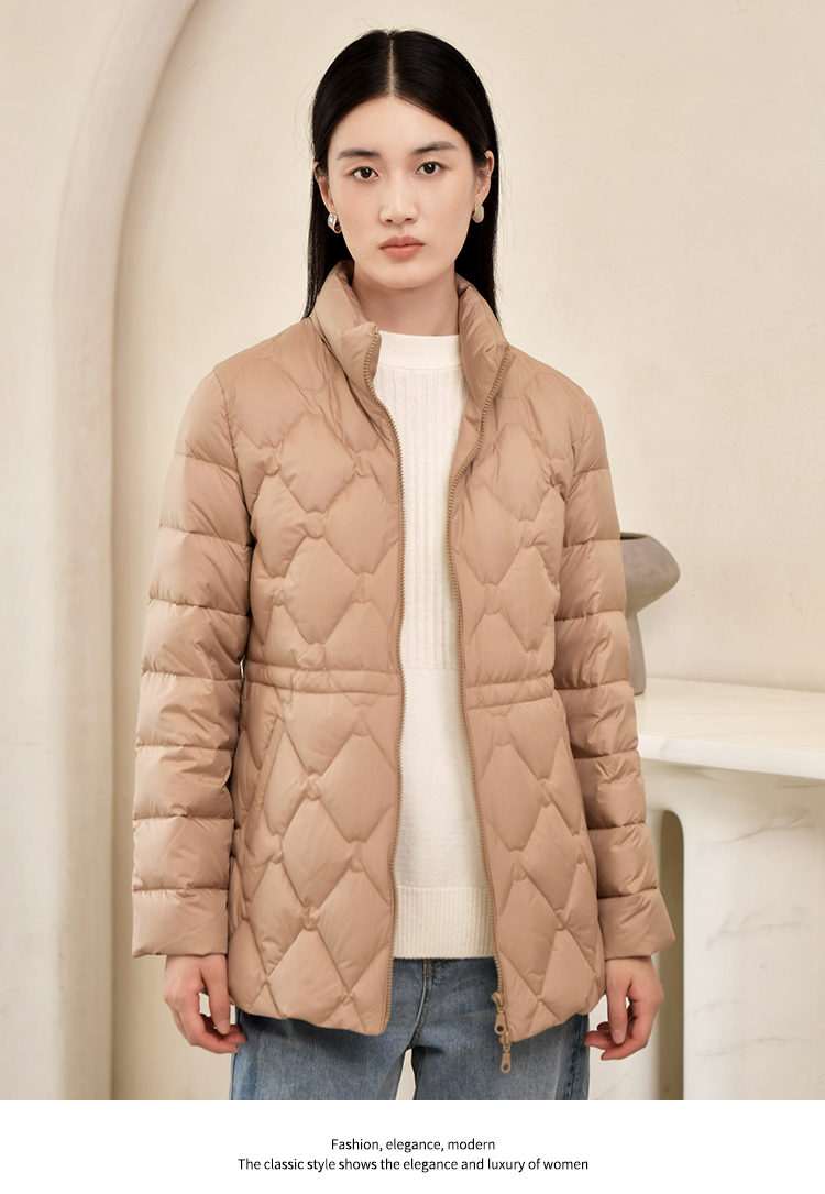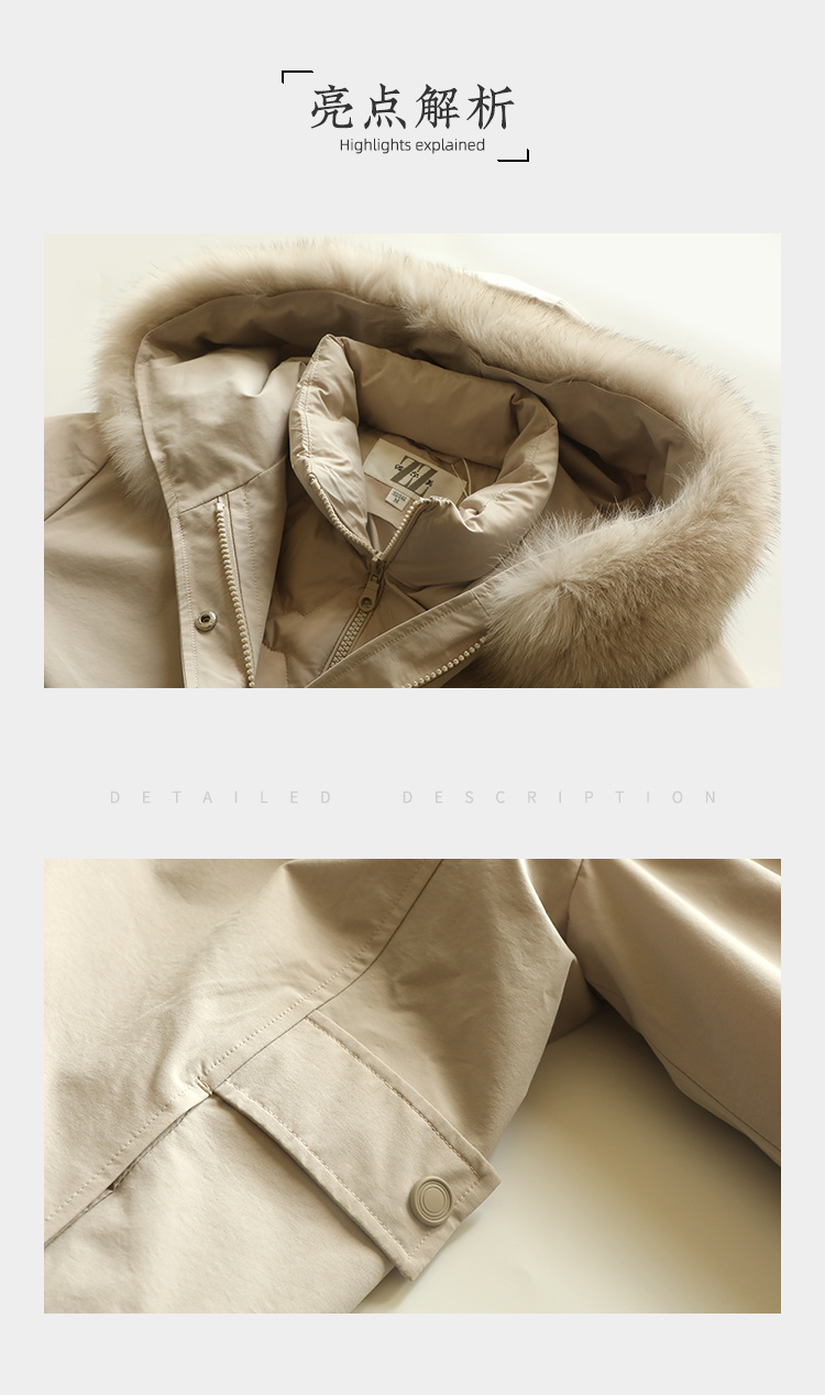 佐尔美2022冬季新款 英伦菱形走线内胆派克狐毛领羽绒服女E24YH04