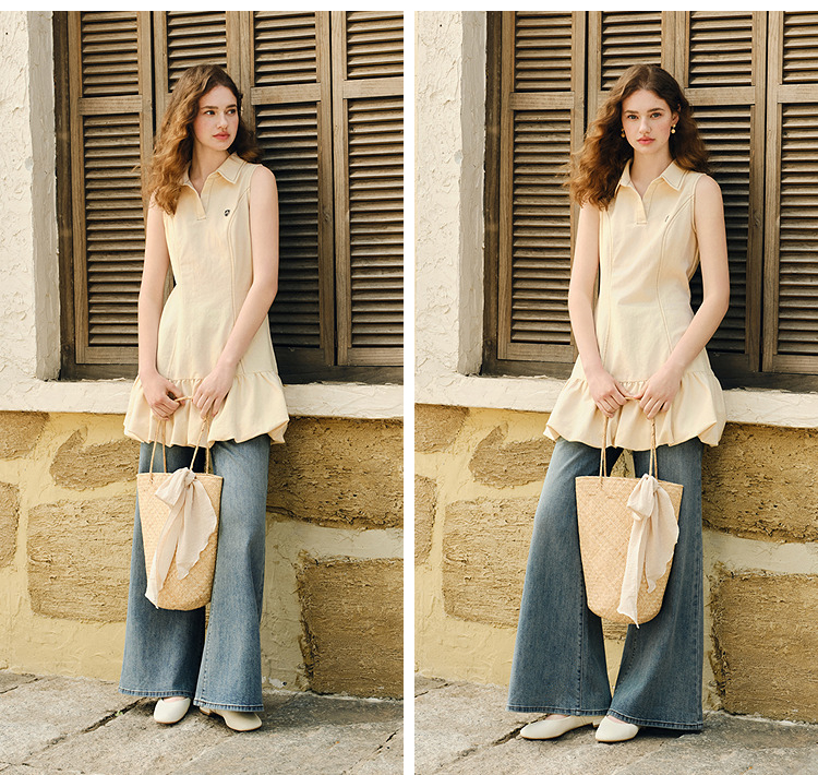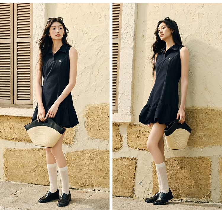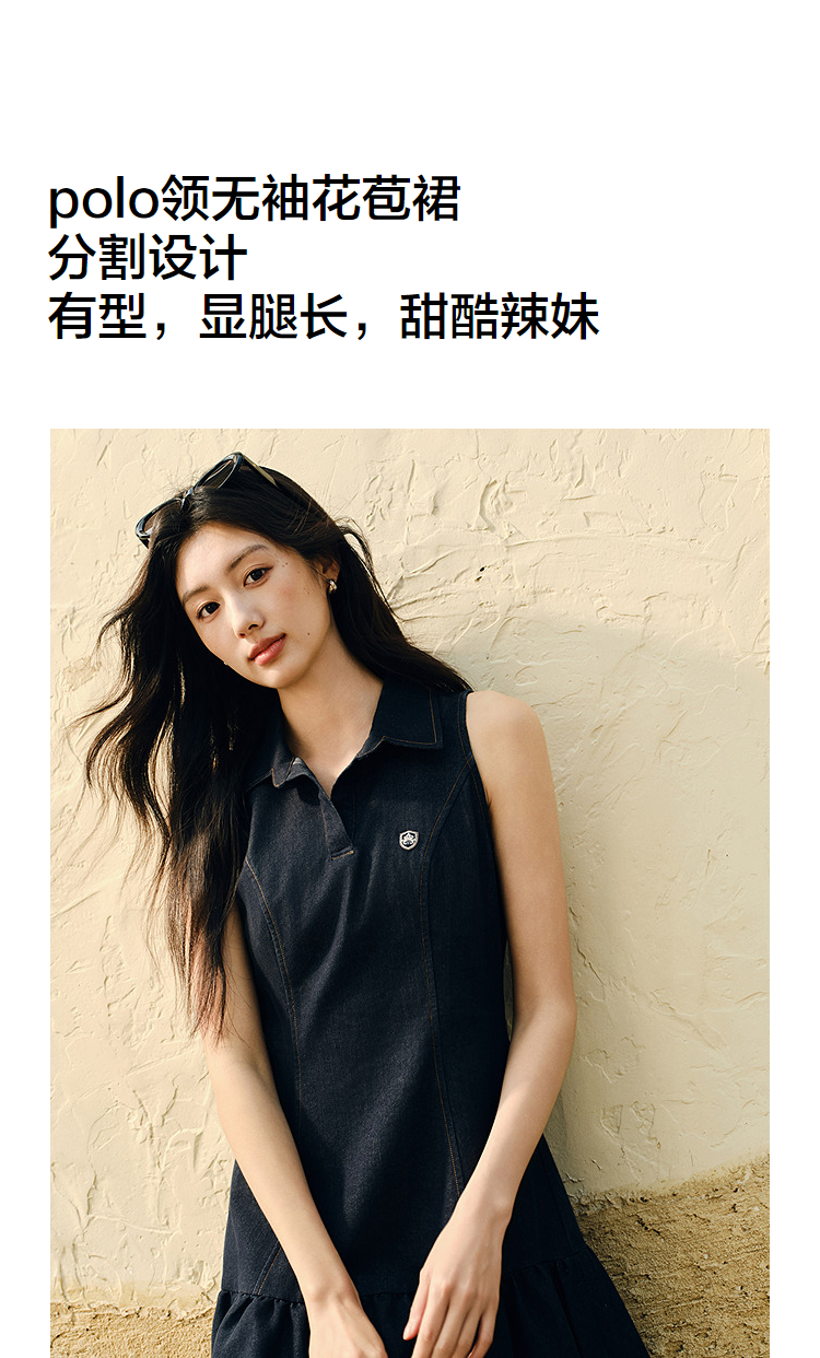 森马连衣裙女polo领无袖花苞裙甜酷2025夏新款辣妹分割短裙小个子